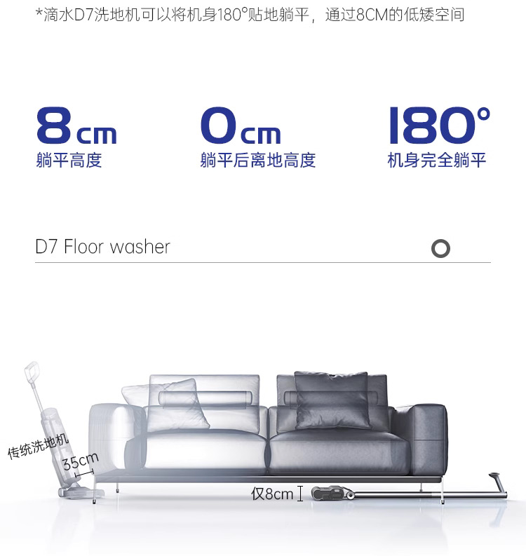 滴水D7洗地机拖洗擦地贴边清洁智能无线手持式轻巧扫拖洗一体机