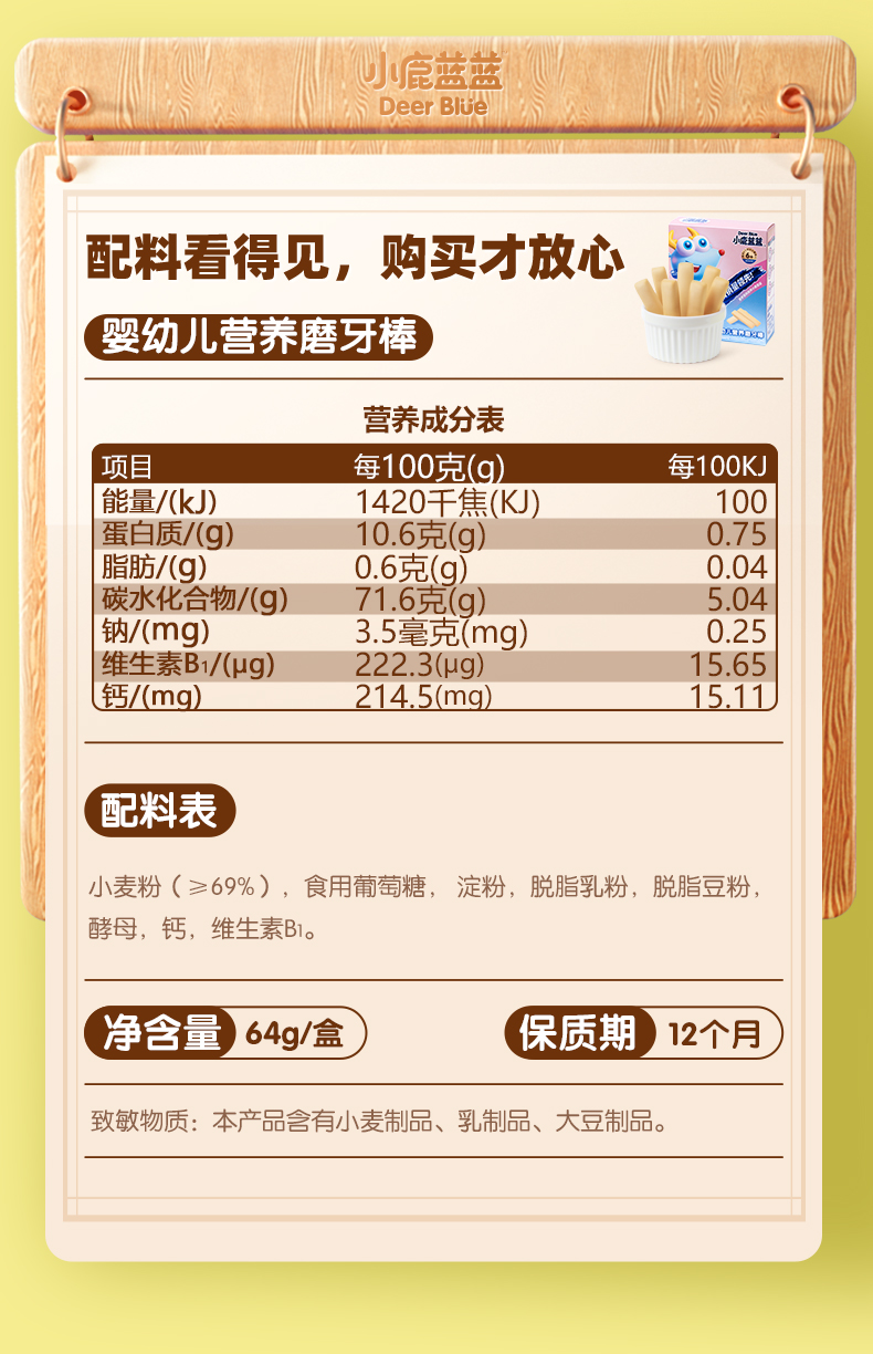 【任选专区】【6月+】小鹿蓝蓝_婴幼儿营养磨牙棒/原味/64g