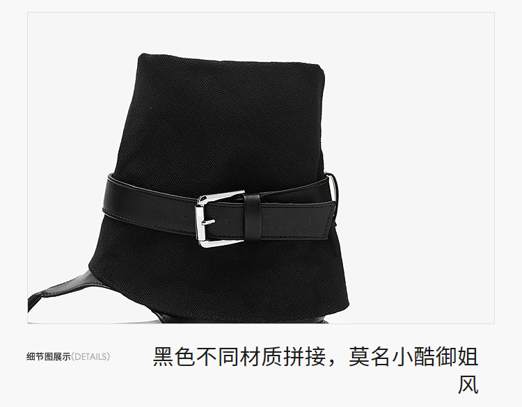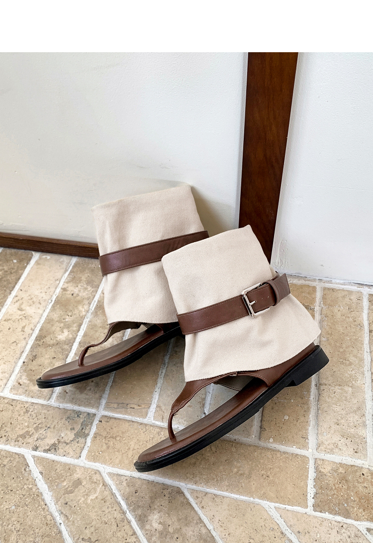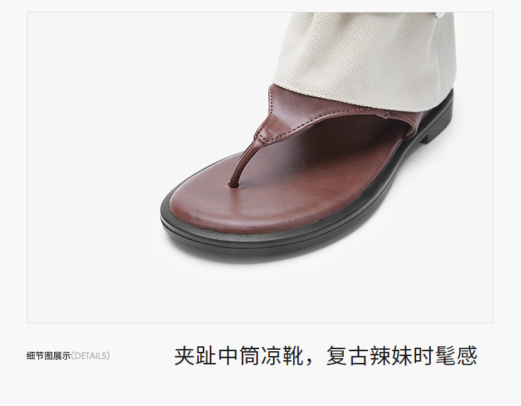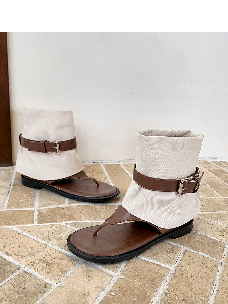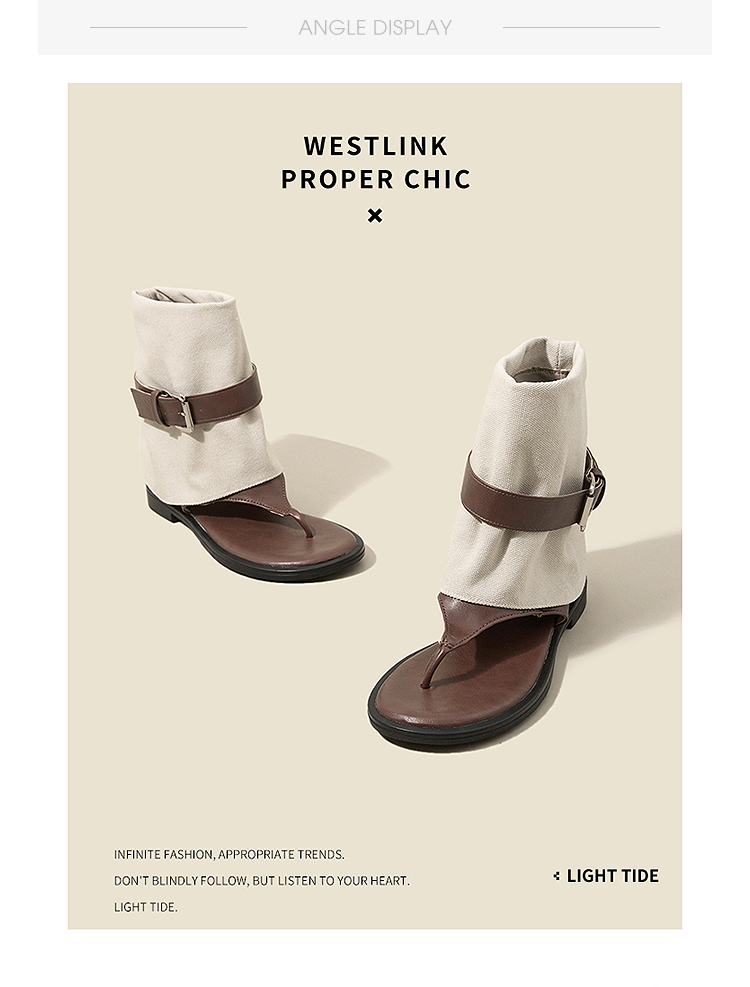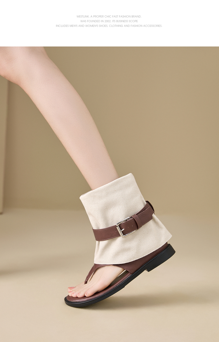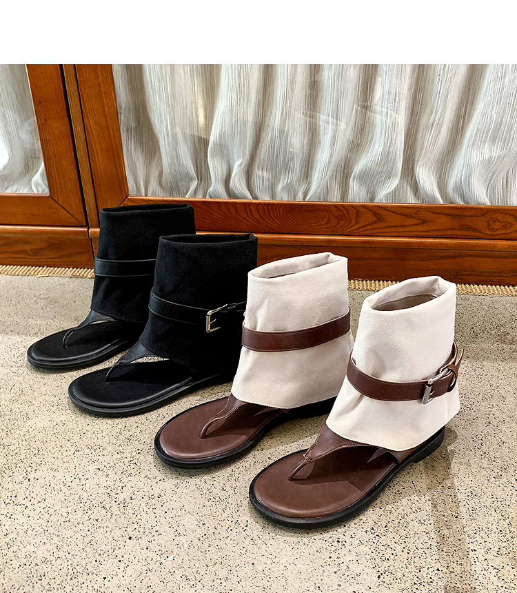 西遇平底凉靴女新款夏季复古辣妹皮带扣黑色中筒靴子夹趾凉鞋V0056890