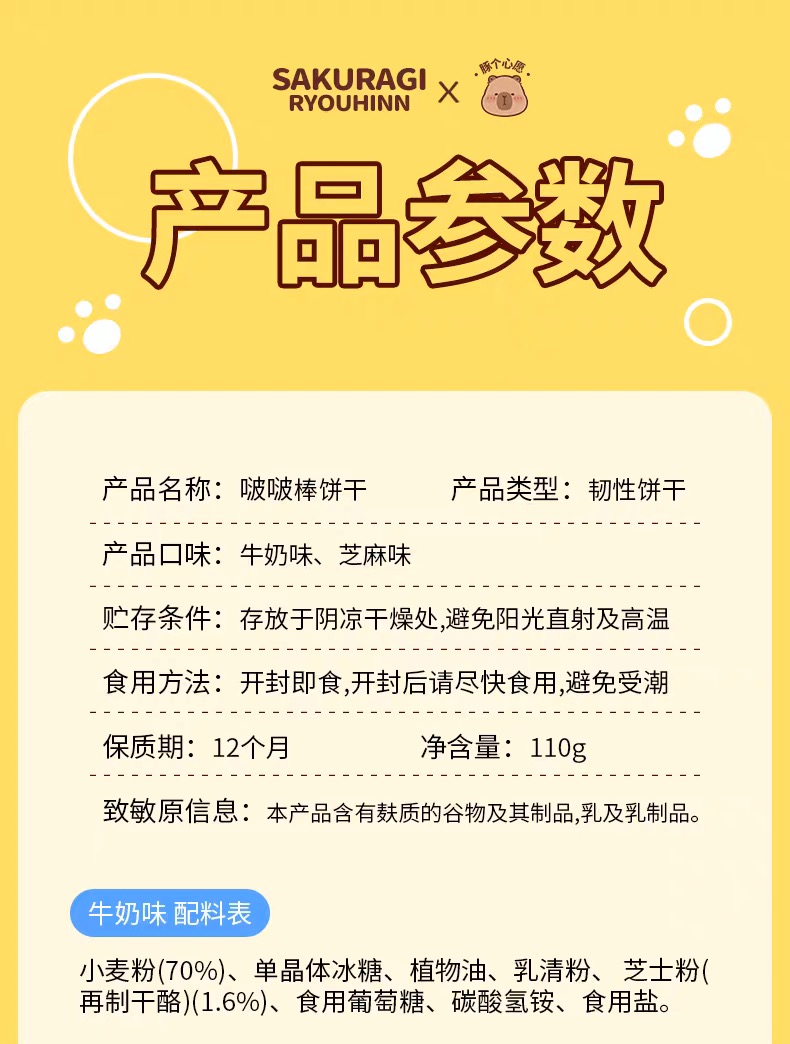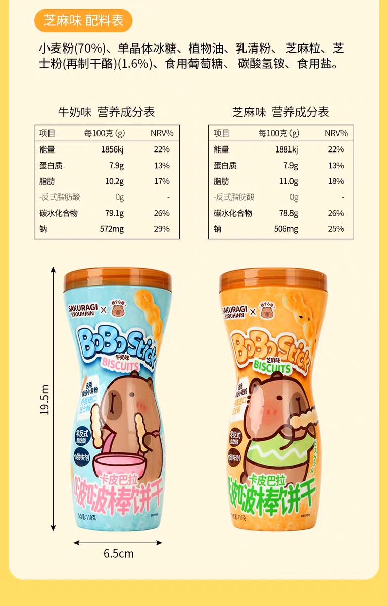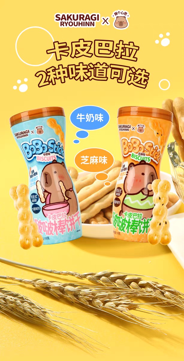 樱木良品 卡皮巴拉啵啵棒饼干(牛奶味)110g