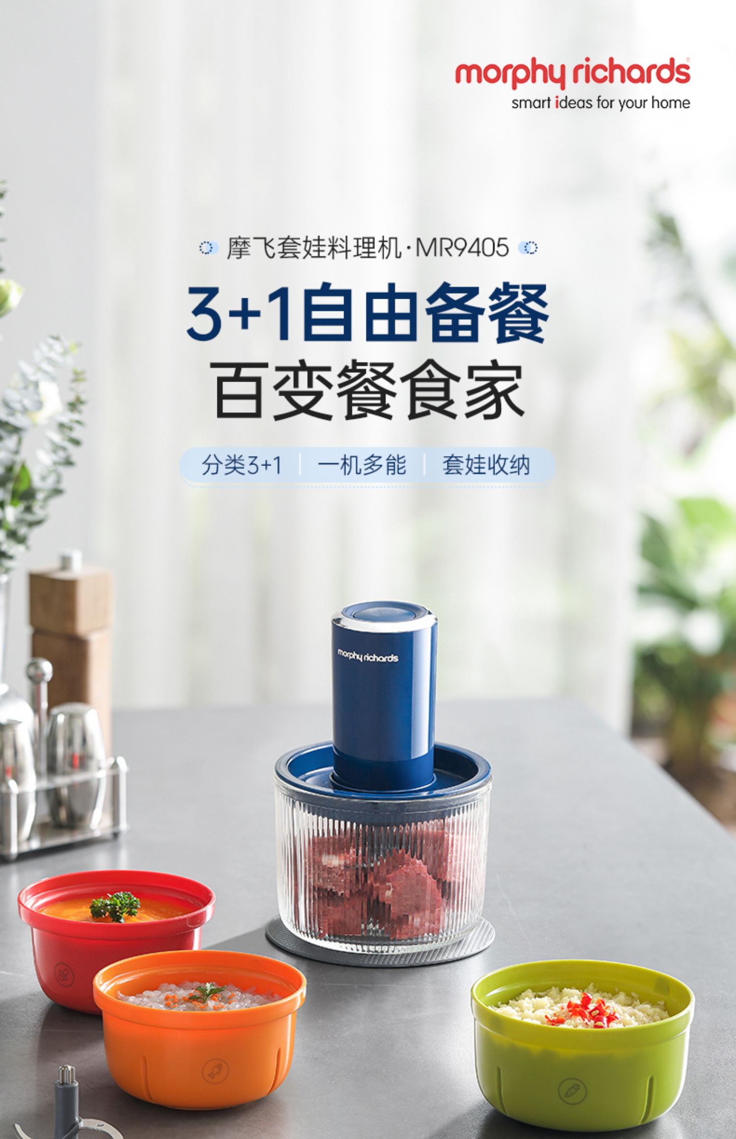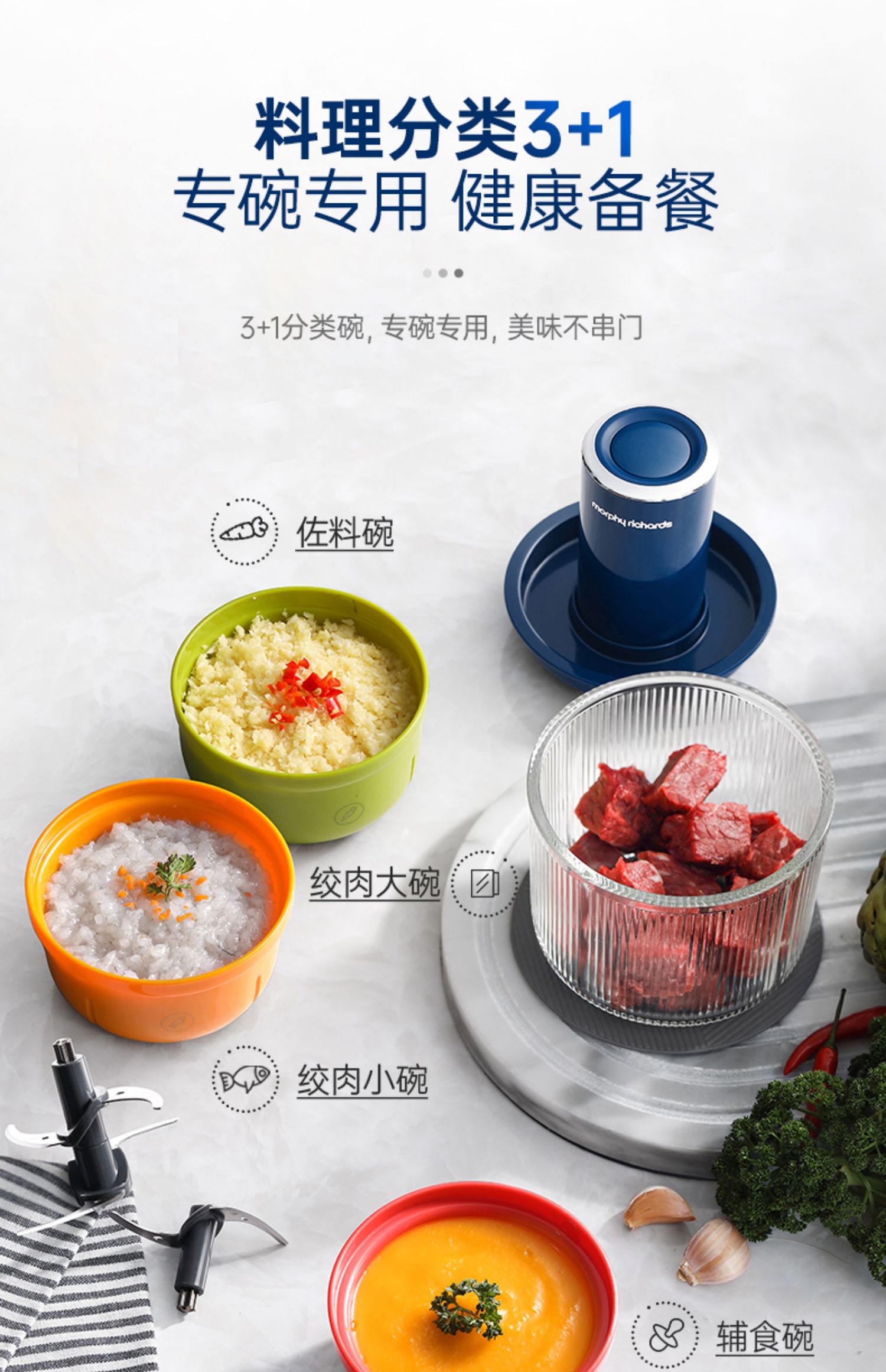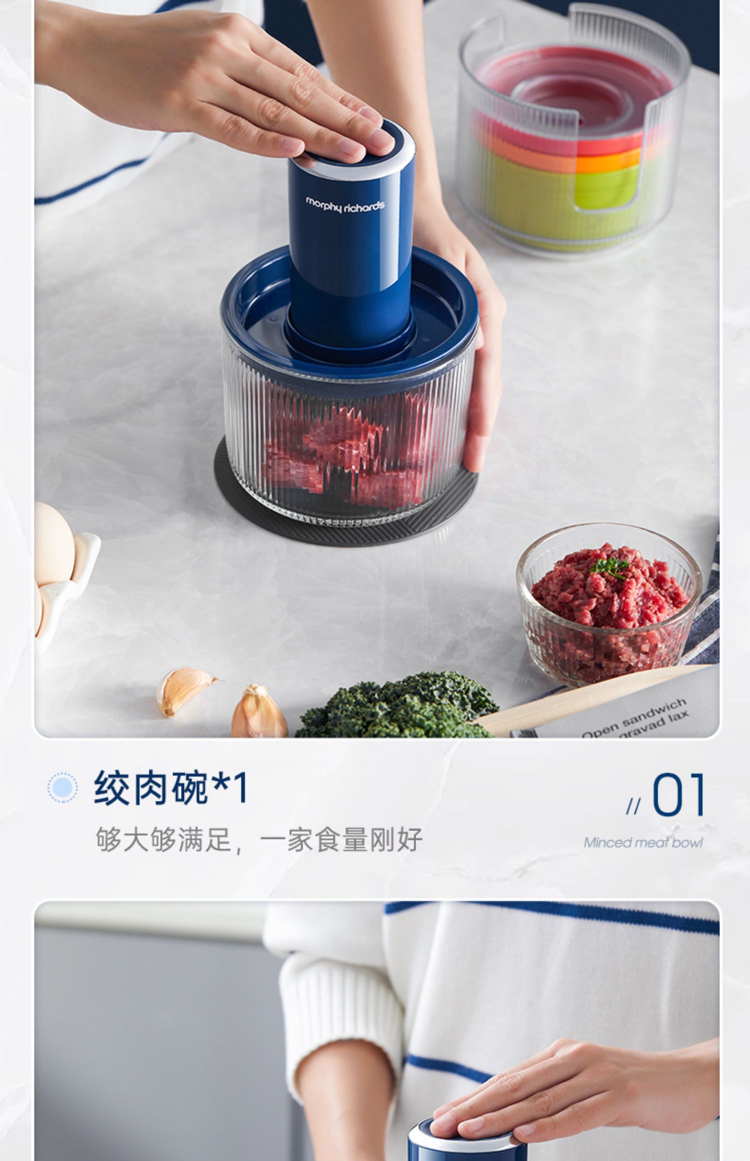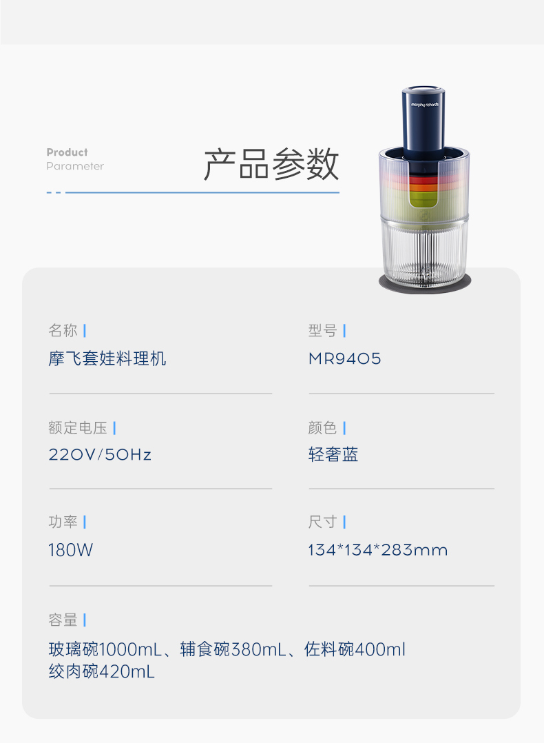 【摩飞新款套娃绞肉机】家用全自动多功能料理机电动绞馅机小型辅食机碎肉馅机 蓝色