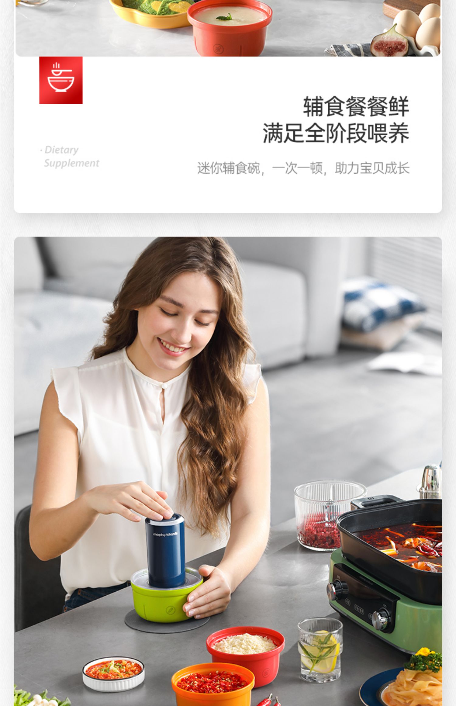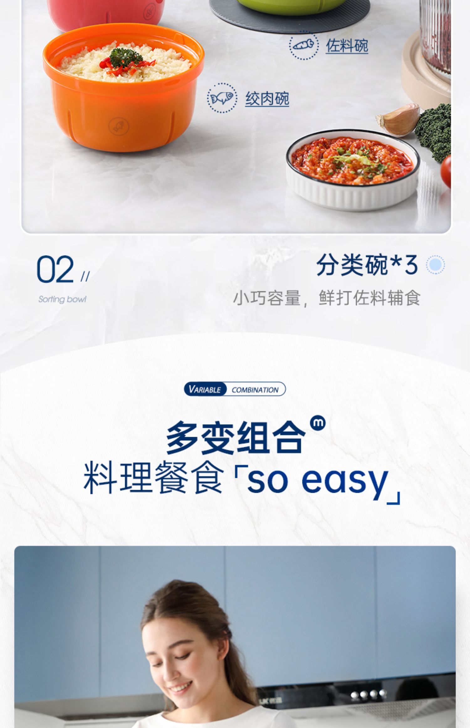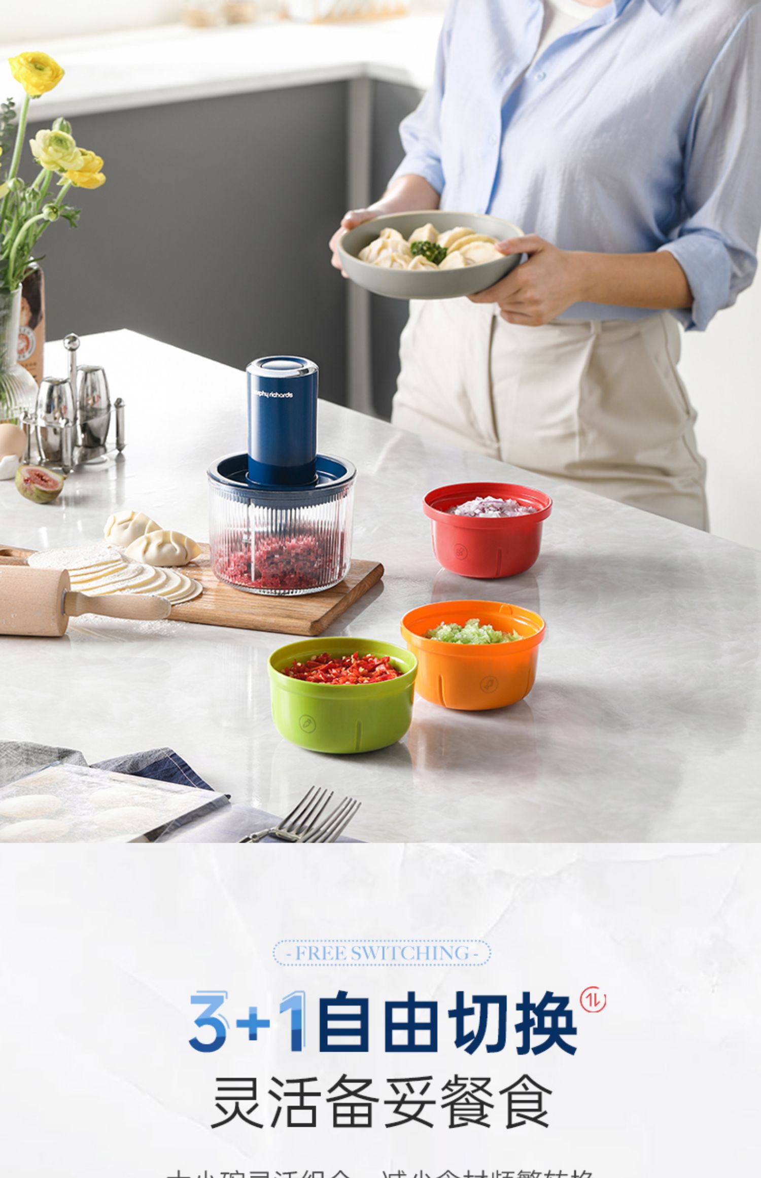 【摩飞新款套娃绞肉机】家用全自动多功能料理机电动绞馅机小型辅食机碎肉馅机 蓝色