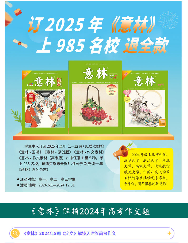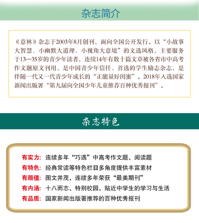 2024年1-12月意林杂志主刊01-24期24本(AY)