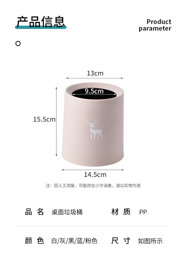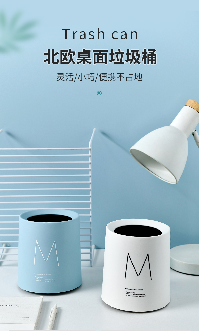 依朴 桌面垃圾桶 北欧圆形迷你无盖垃圾桶 茶几客厅办公室书房桌面使用双层日式简约创意小垃圾桶 白中号 100016124849