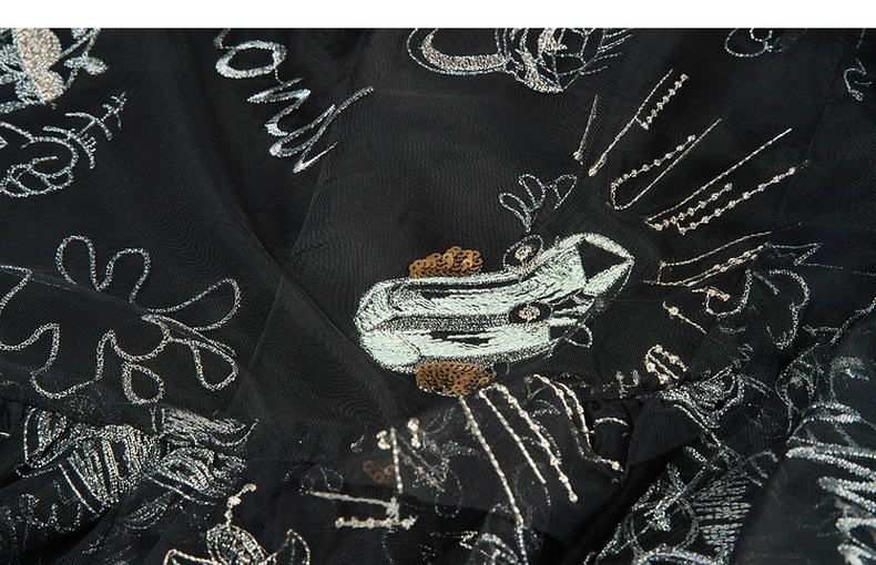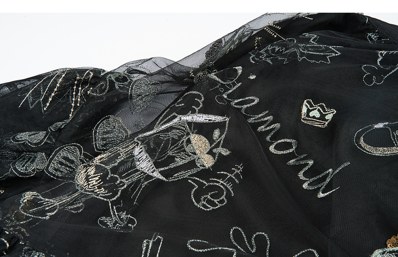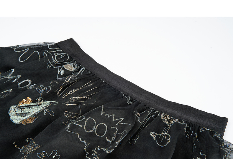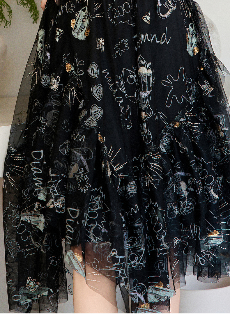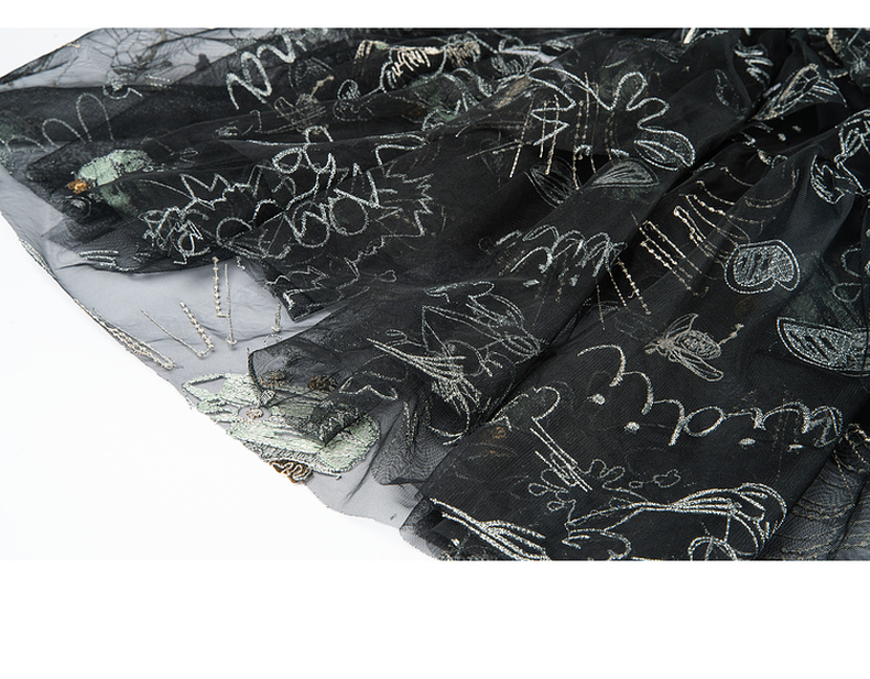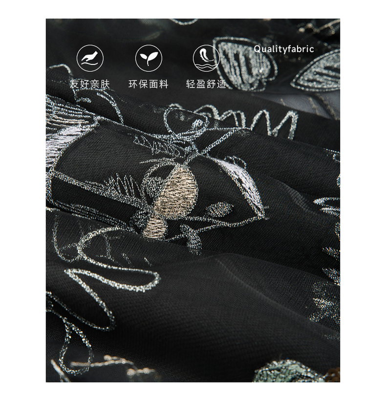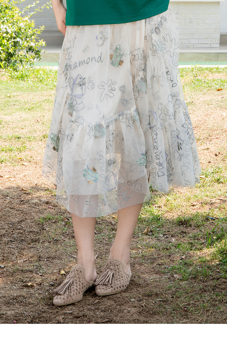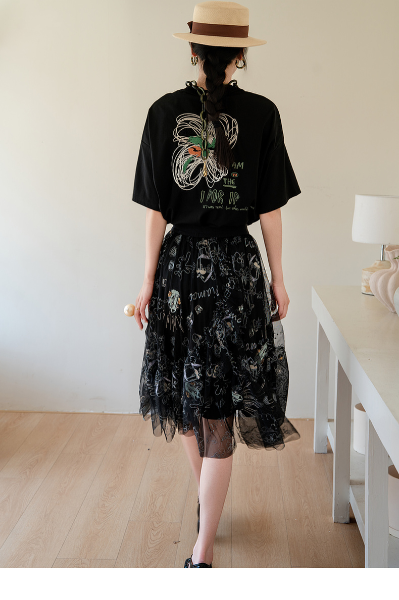 谜底提花半身裙2025夏季新品复古风松紧腰A型中长网纱裙25BMB5003