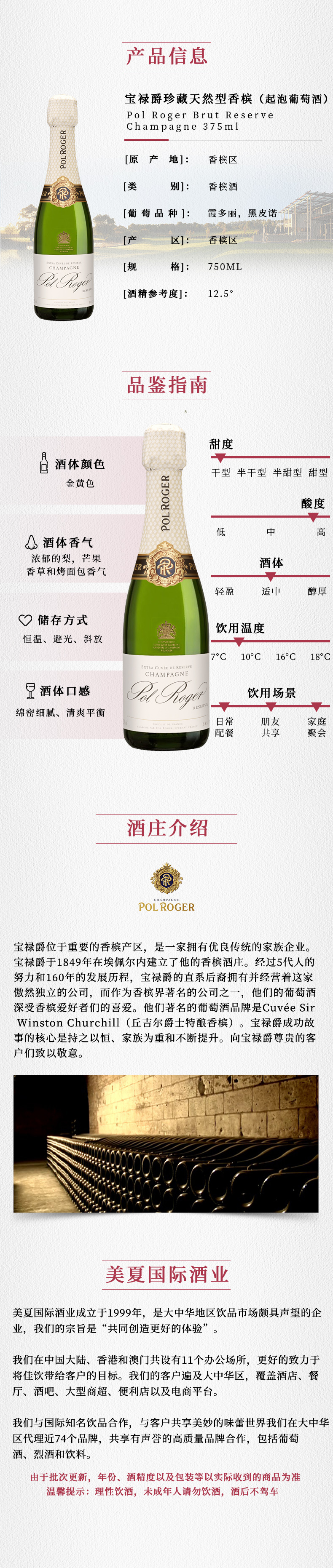 进口法国宝禄爵珍藏天然型香槟(起泡葡萄酒)