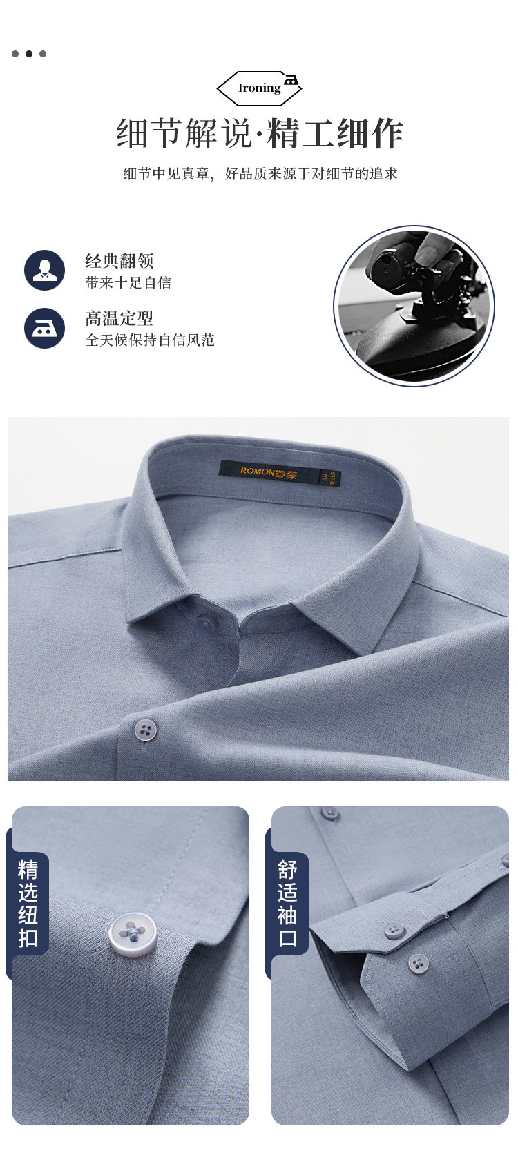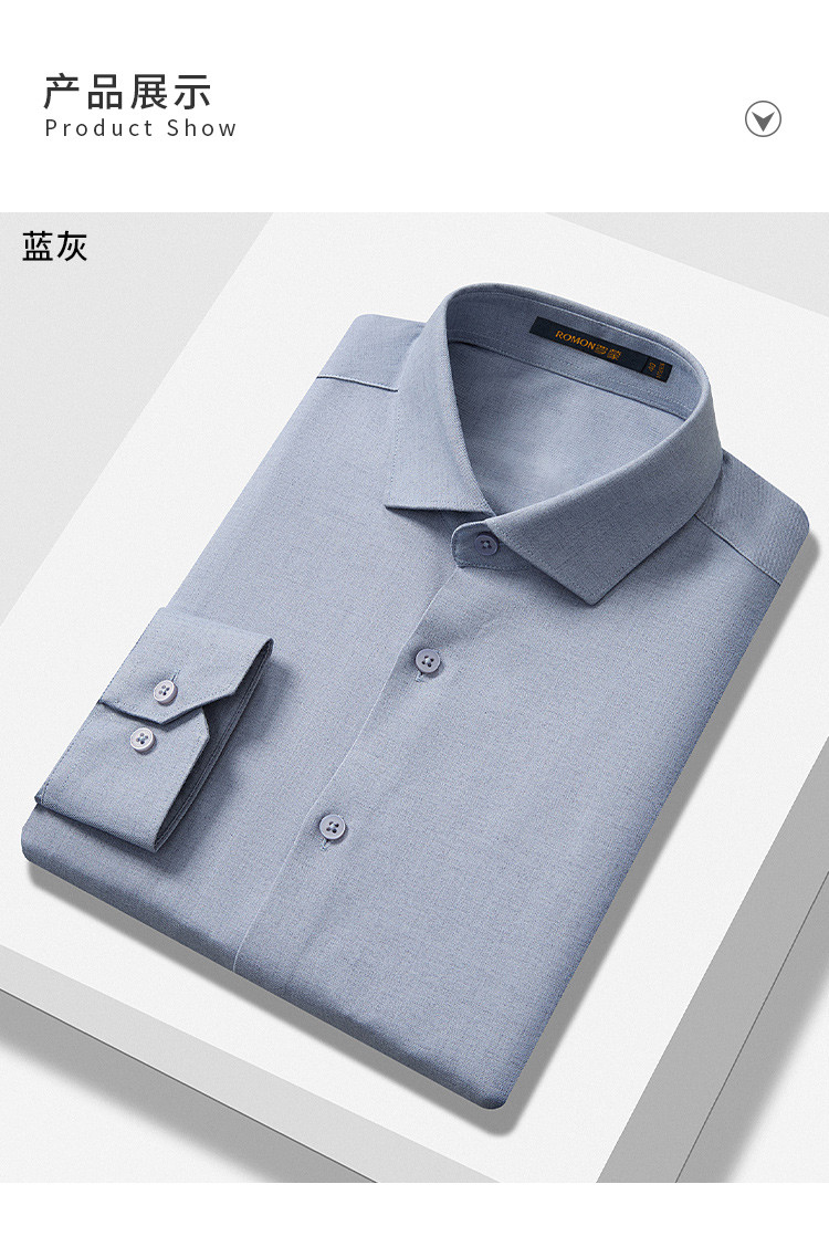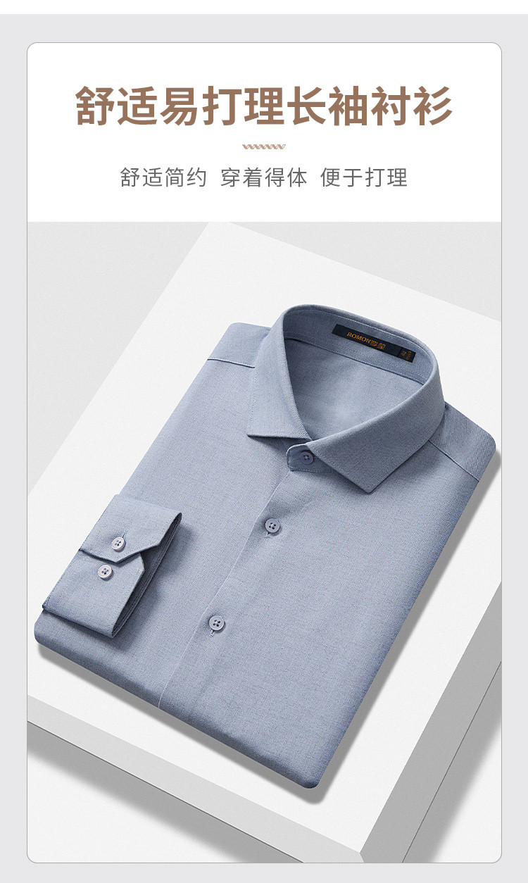 【莫代尔+羊毛】罗蒙春秋高品质长袖衬衫男士商务通勤职业正装微弹力高端衬衣