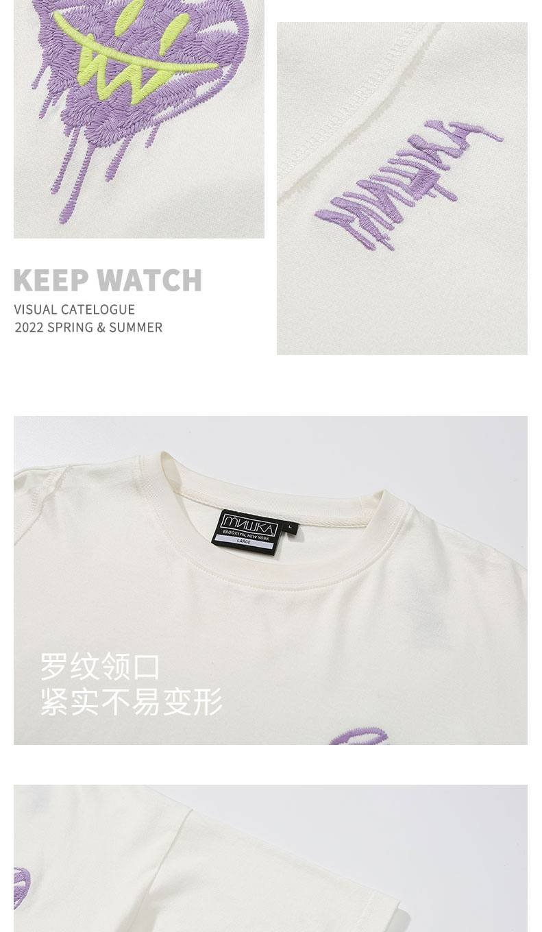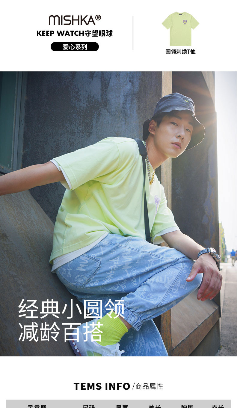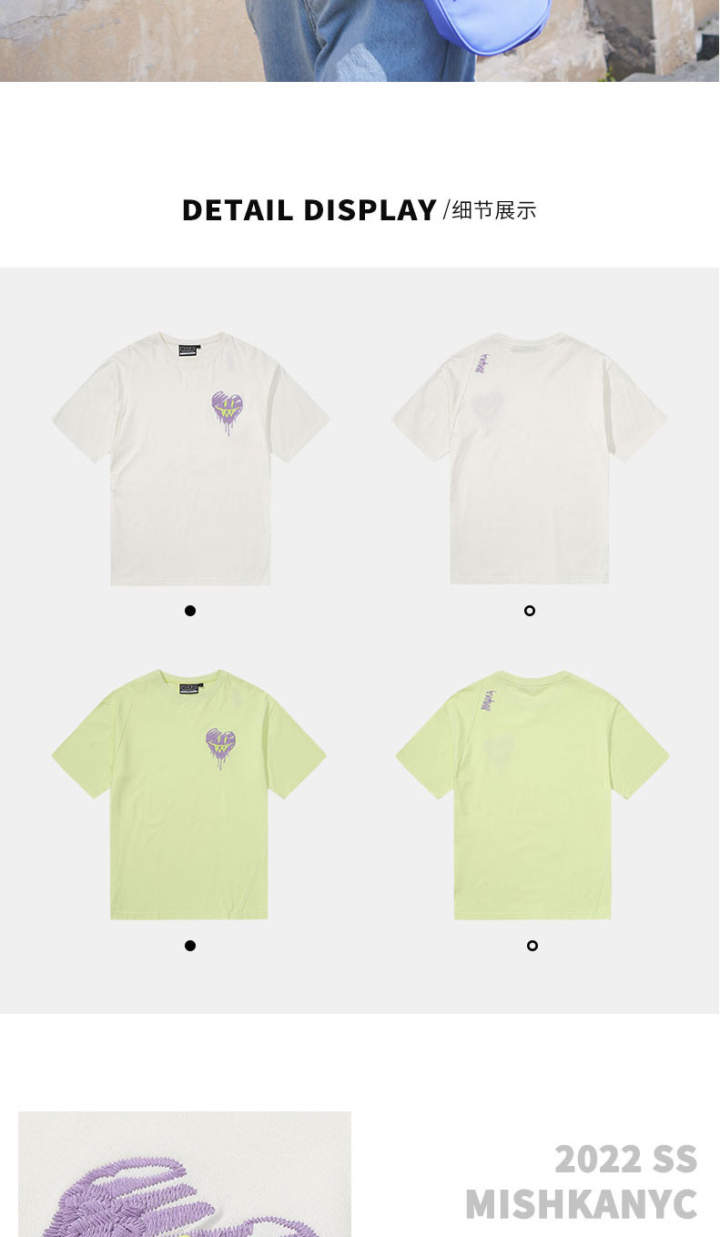 MISHKA大眼球潮牌2022春夏新品爱心系列圆领刺绣T恤男女同款M21100032M