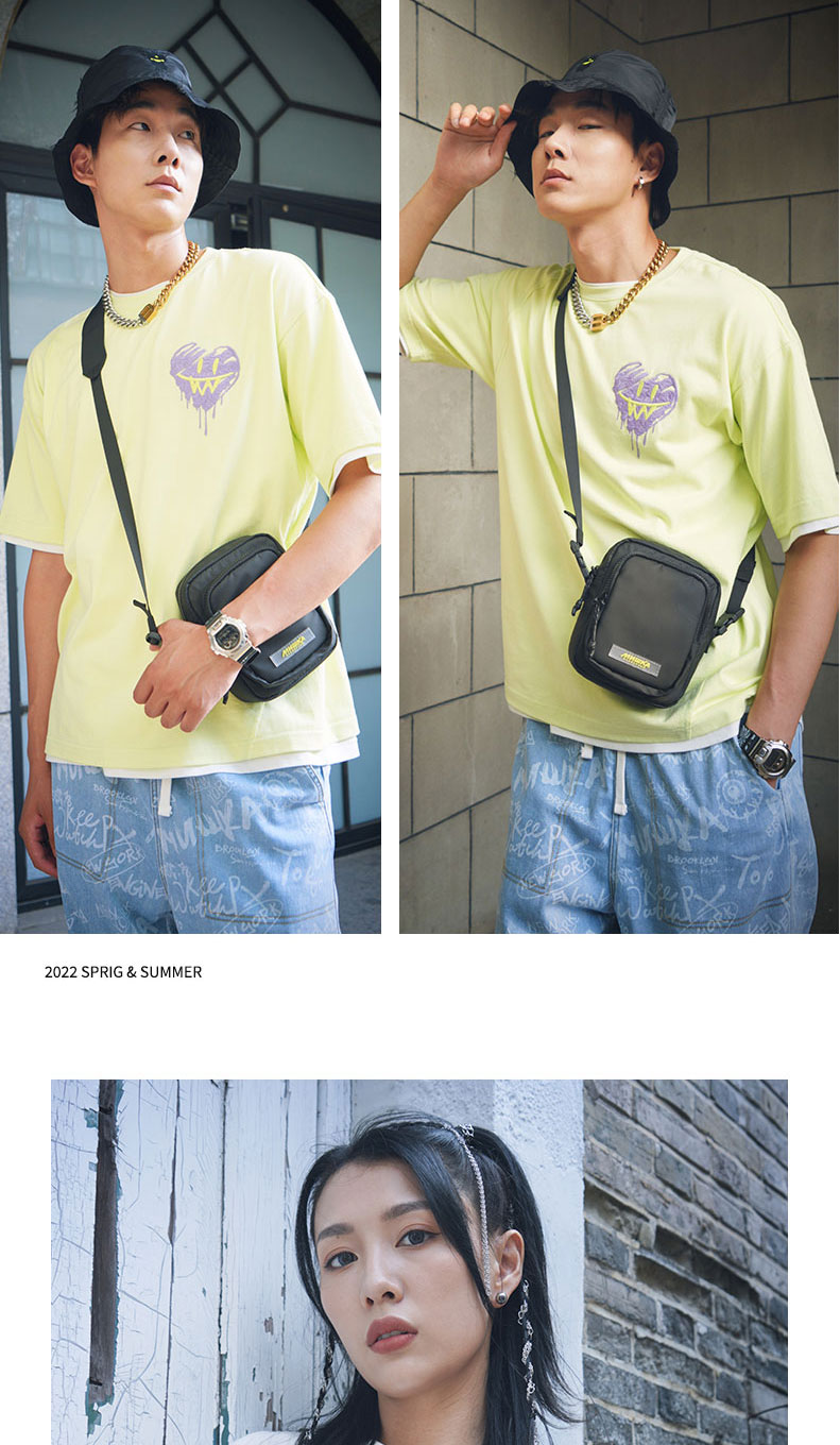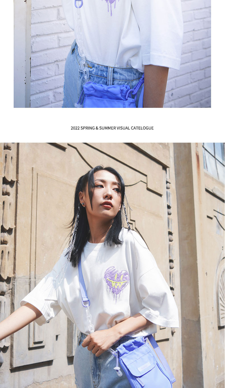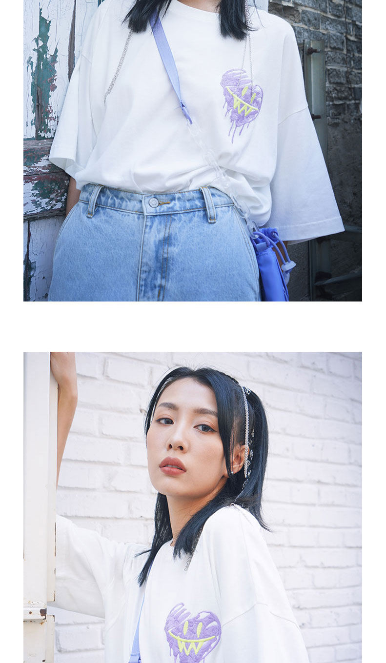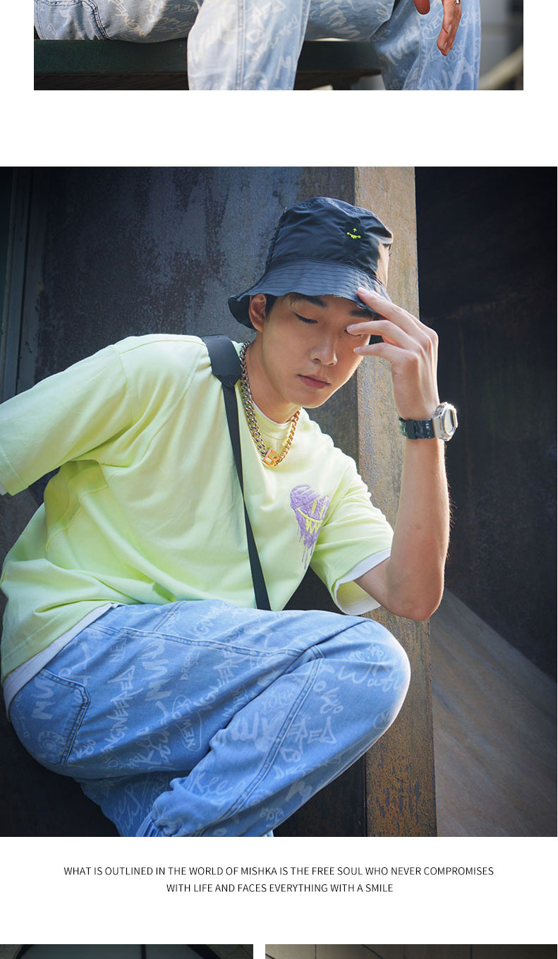 MISHKA大眼球潮牌2022春夏新品爱心系列圆领刺绣T恤男女同款M21100032M