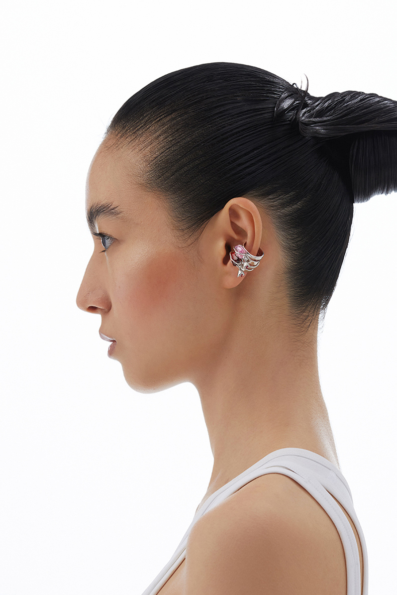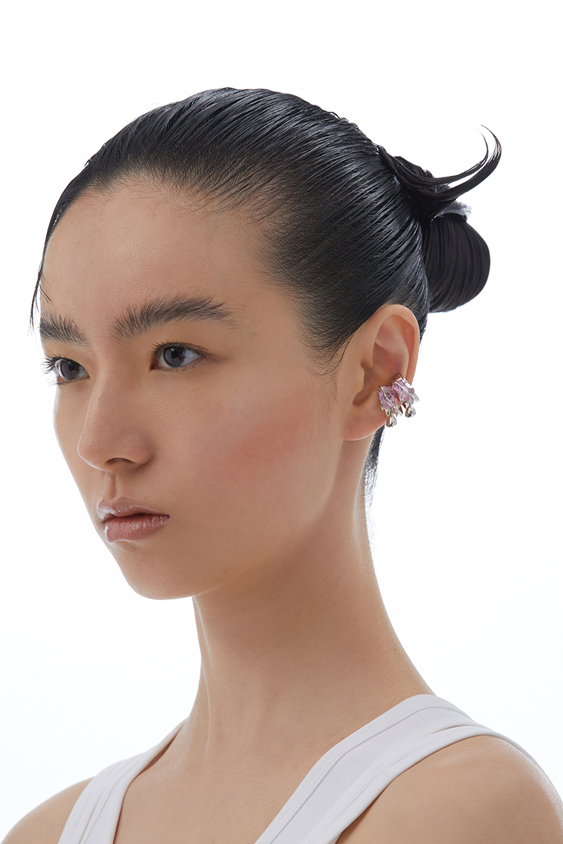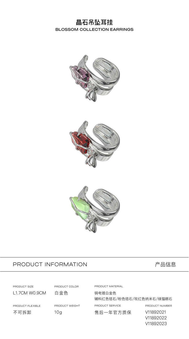 KVK2021新款耳环耳夹无耳洞女桃花晶石耳夹小众设计感耳饰女饰品