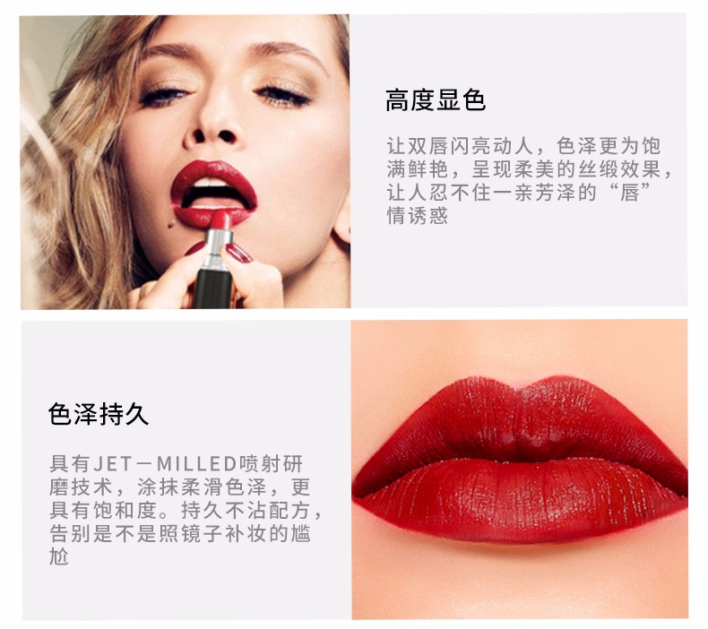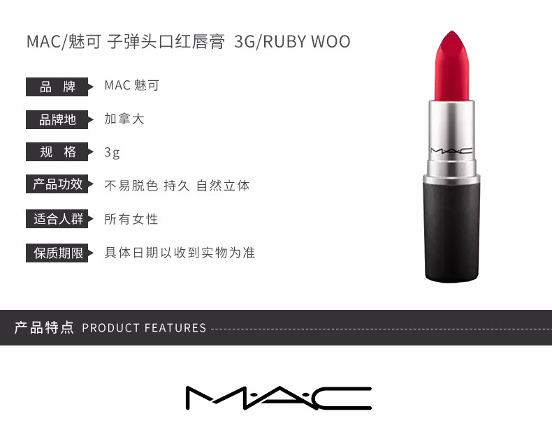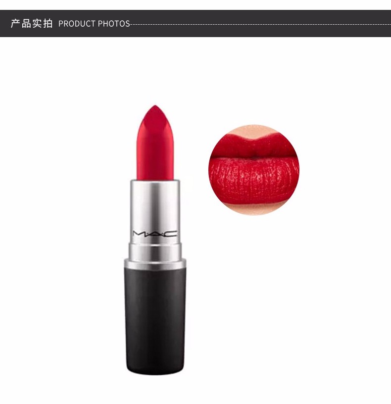 说到正红不得不说M.A.C的Ruby Woo,官网描述为蓝调大红色。上脸显白,白皮黄皮都可以hold住!属于Matte哑光质地,显色度很高,遮盖力也好,深唇色也不用担心。