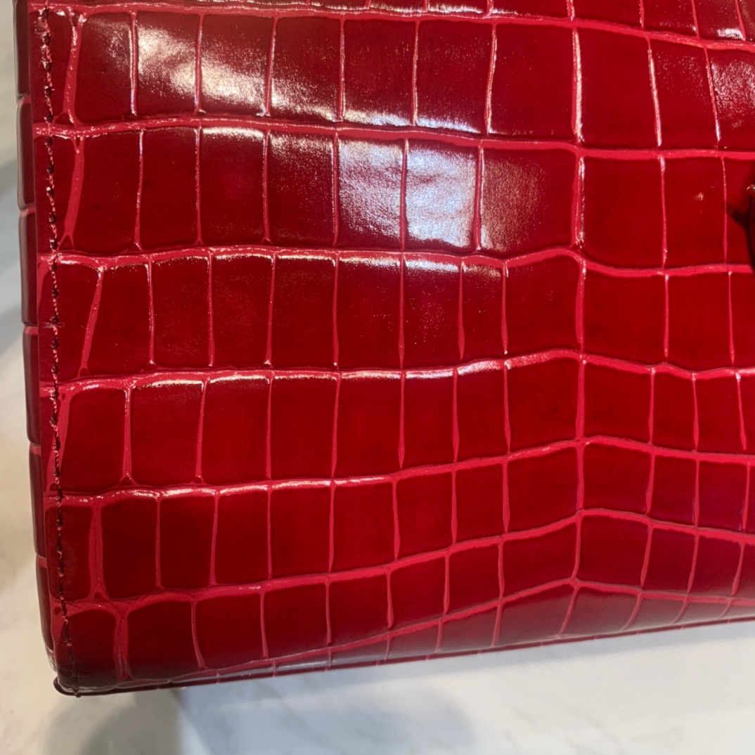 仿真度极高鳄鱼纹,正品开模,根本你都分不出是鳄鱼纹还是鳄鱼皮,这质感就得配这亮面的浅金五金,看清楚皮纹哦!这是专柜刚出的皮纹哦不同以前的皮纹,五金也是亮的,而且软来又不是硬邦邦的那种,好皮胚压出来的效果还是嗷嗷的。