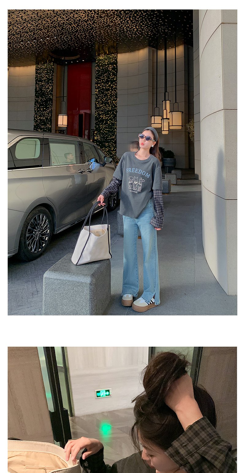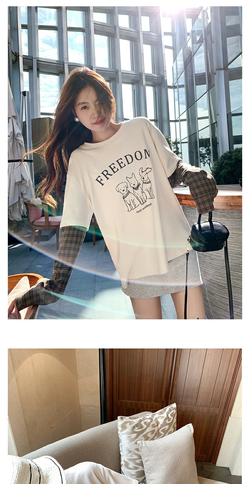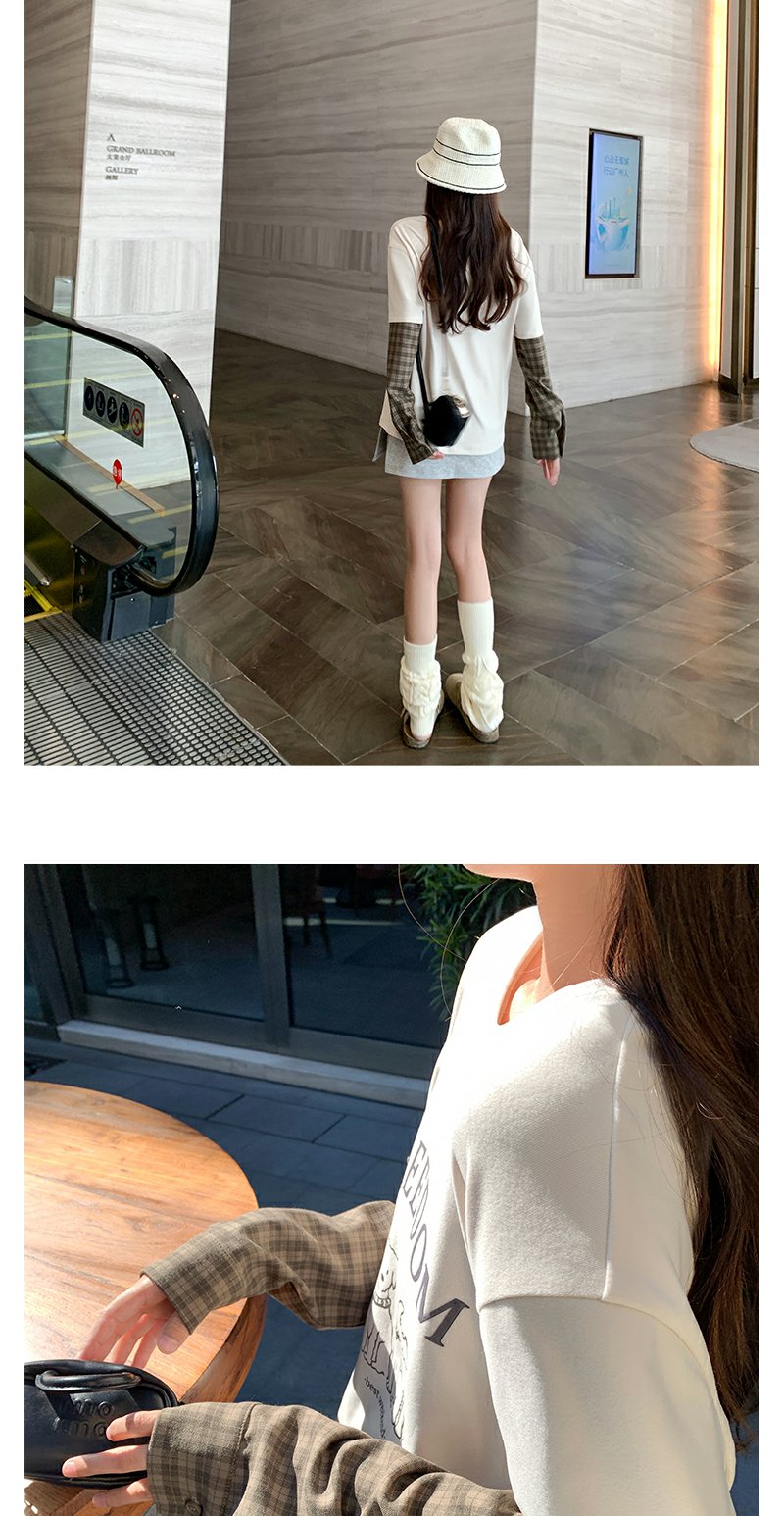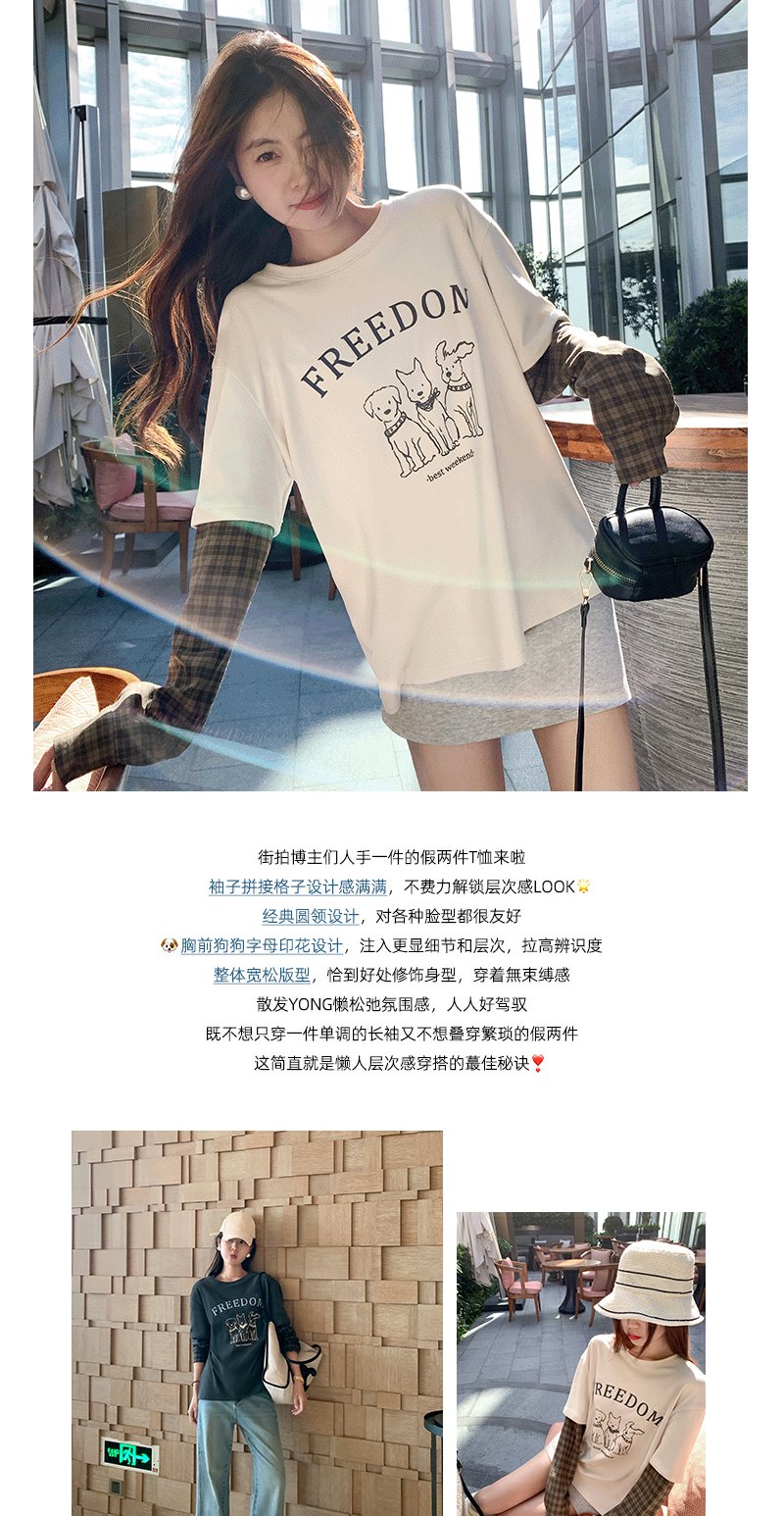<曾小咸推荐>设计感假两件2色袖子拼接宽松T恤