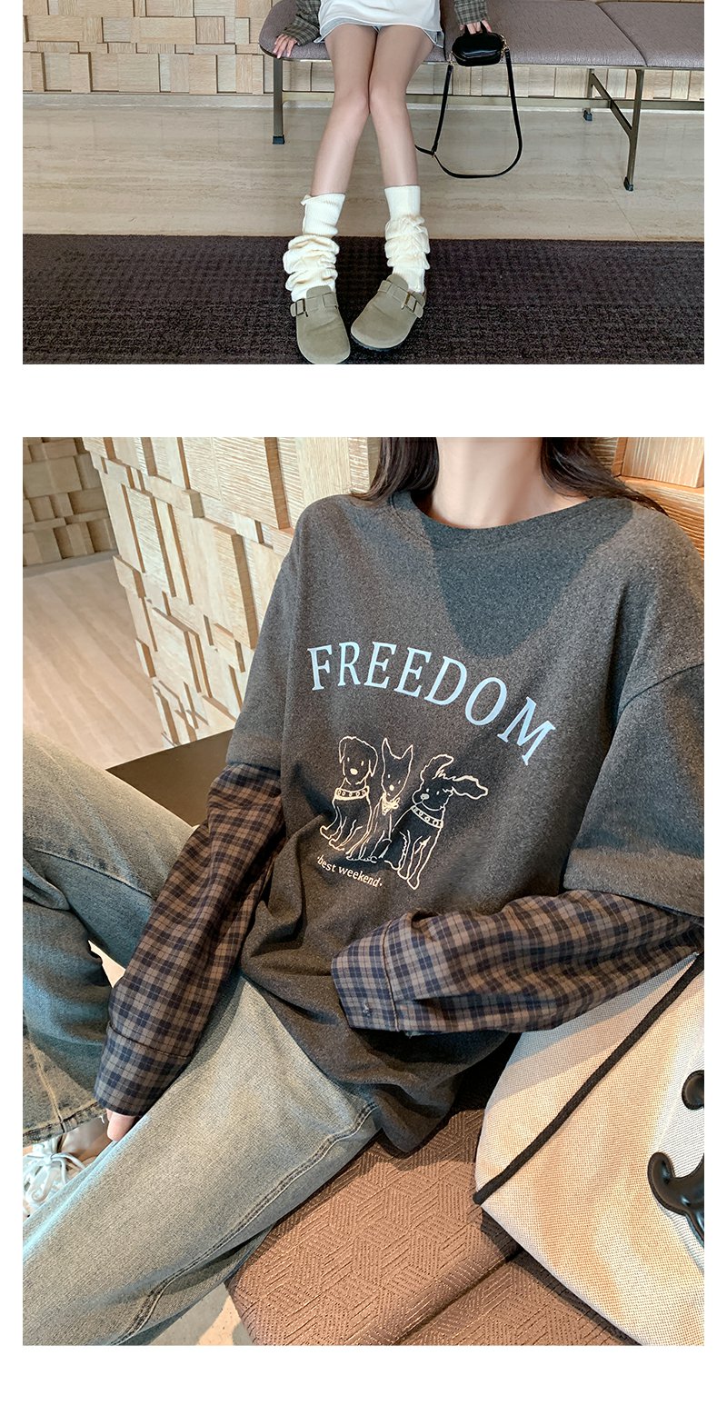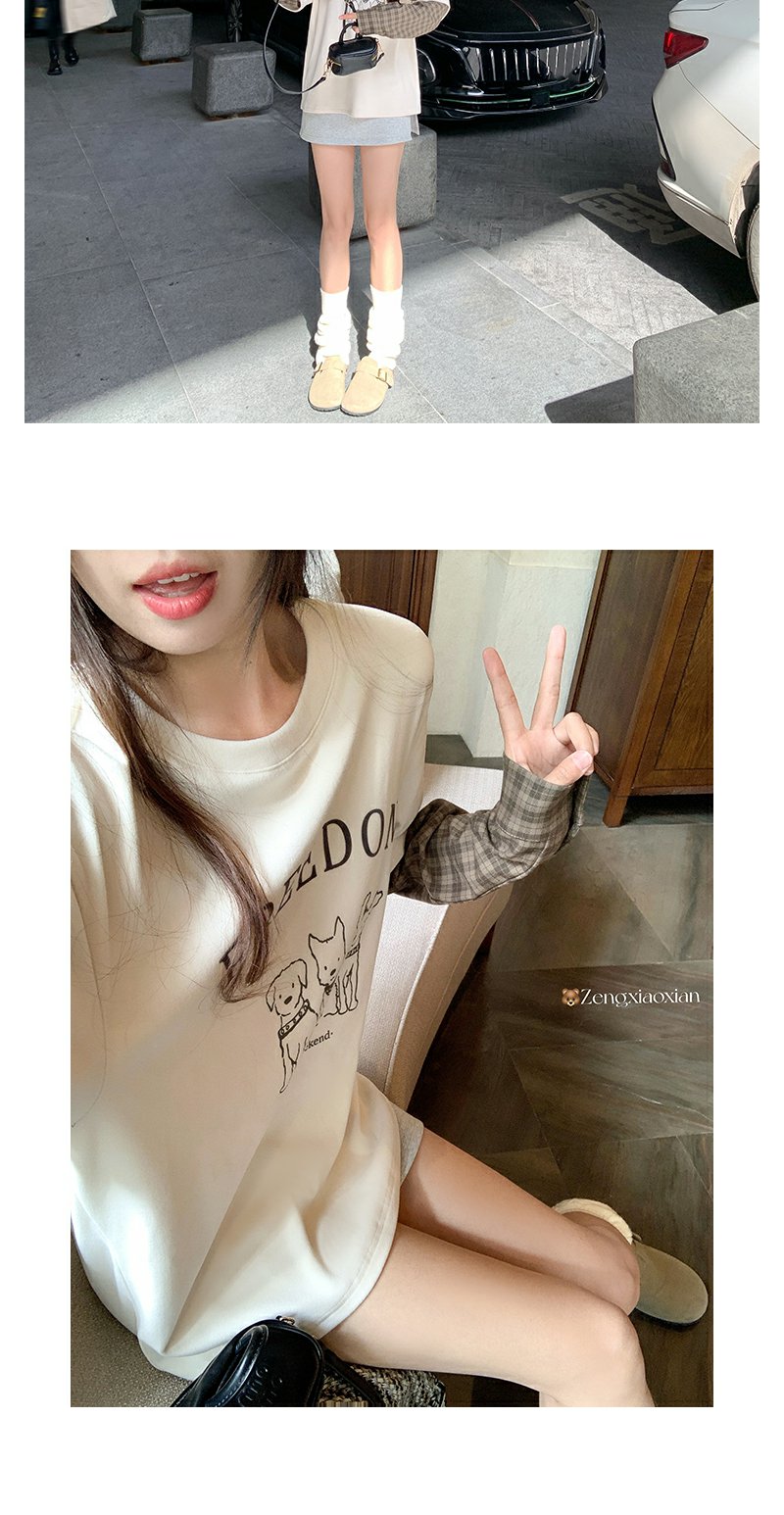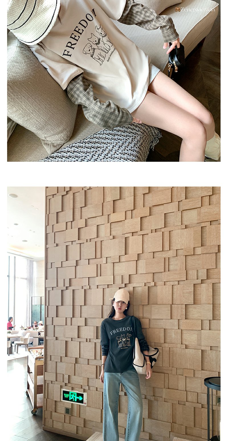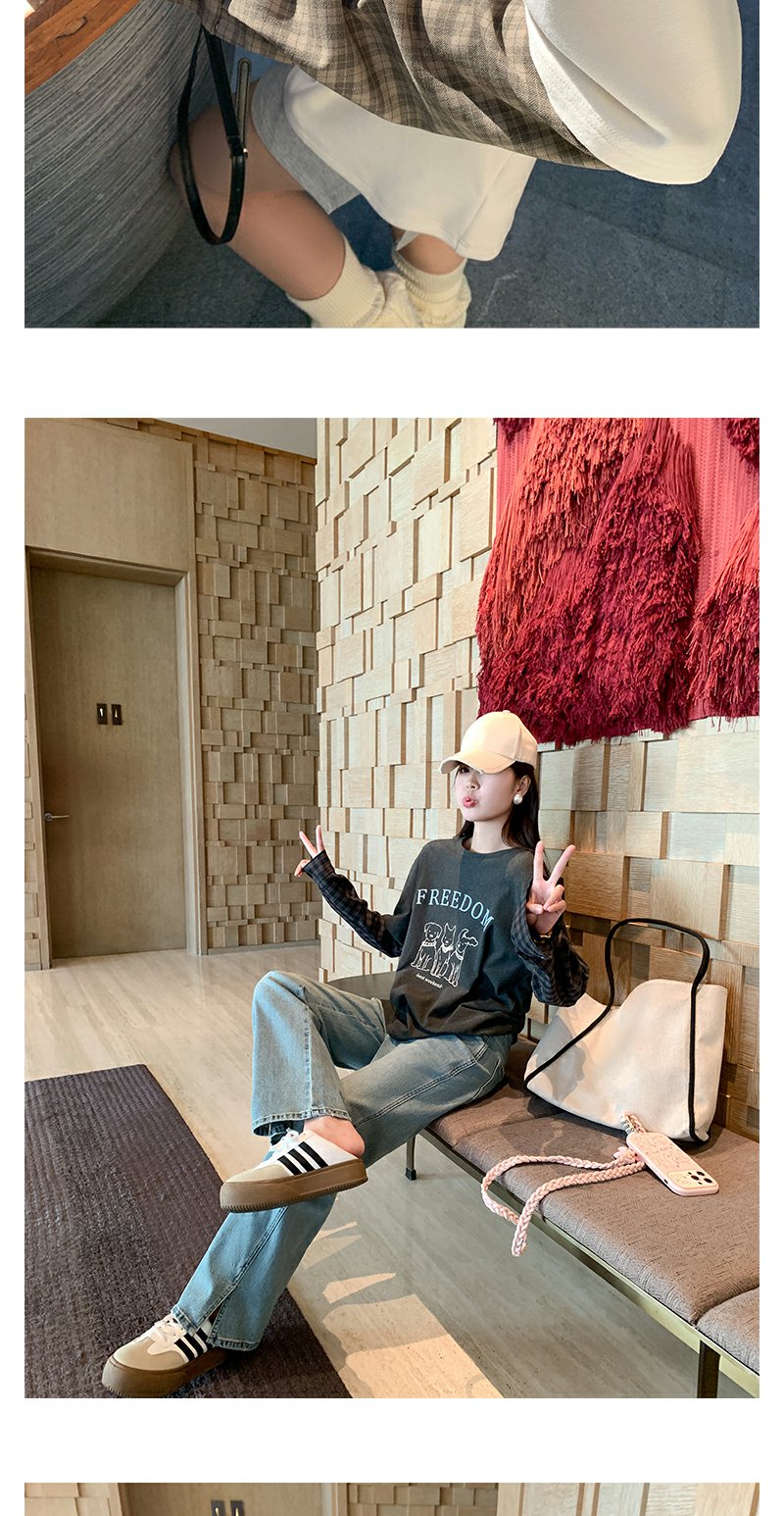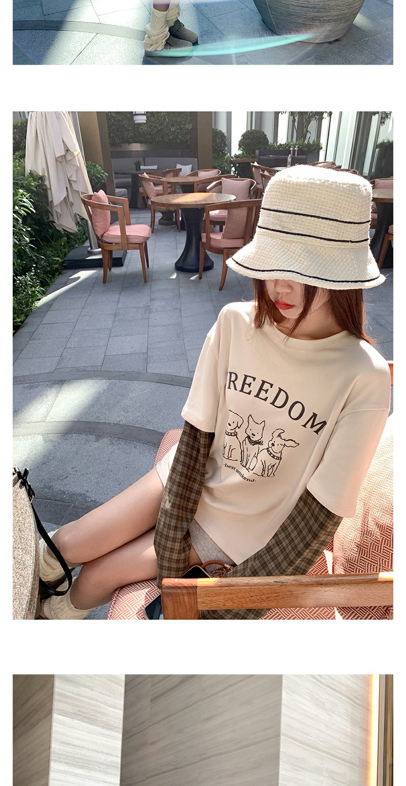 <曾小咸推荐>设计感假两件2色袖子拼接宽松T恤