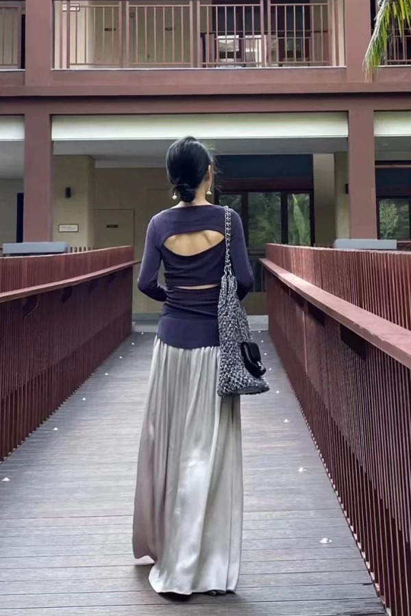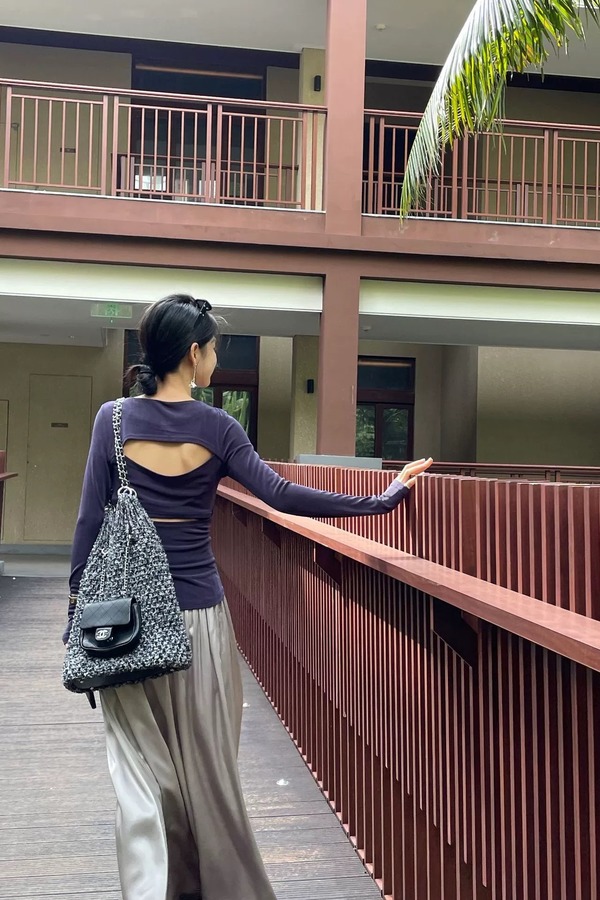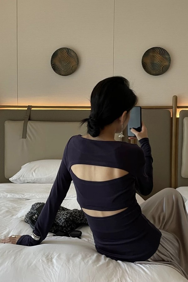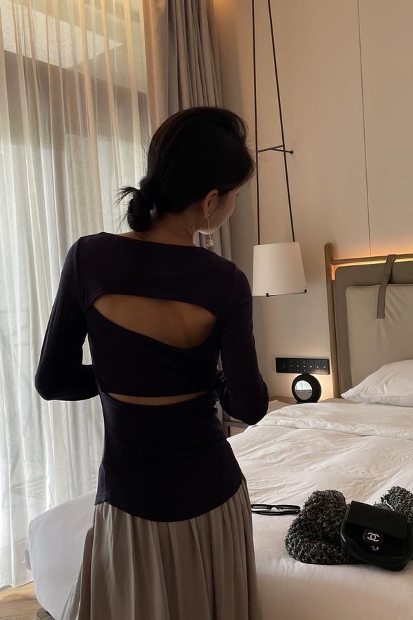 SIA SAYLOR 藏蓝色圆领后背镂空针织上衣 20714