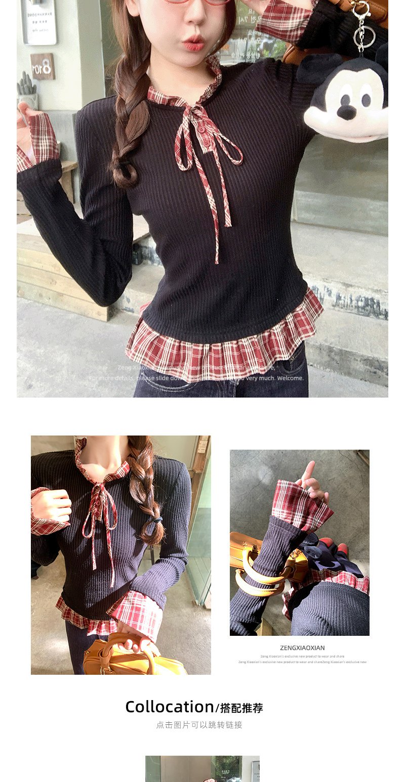<曾小咸推荐>现货秒杀 !微信超特价!韩系假两件格子t恤 日常149.99 立减80 秒杀69.99!!