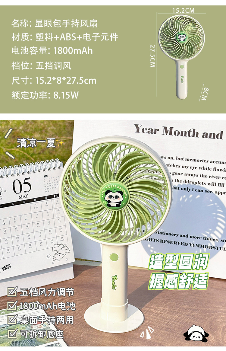 【可爱熊猫风扇合集❄️】萌趣熊猫风扇上线!手持桌面两用,3档风力随心调,出街居家都超赞💨✨
