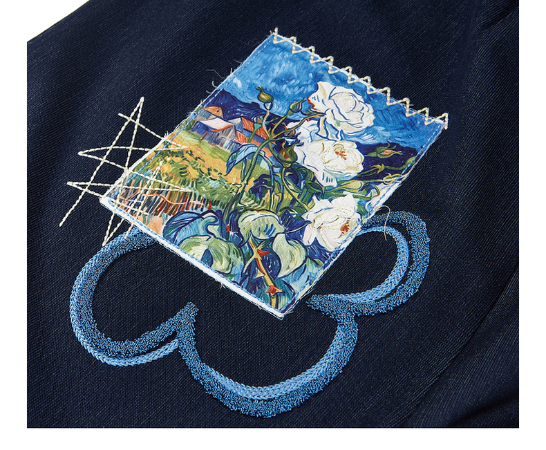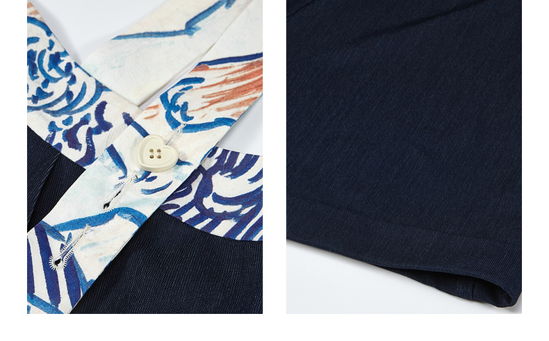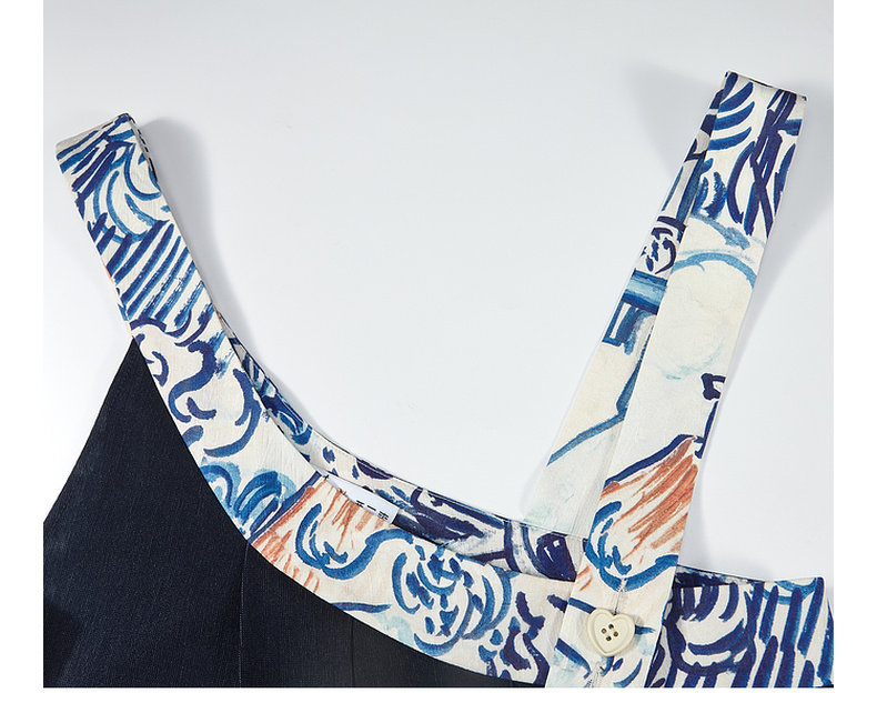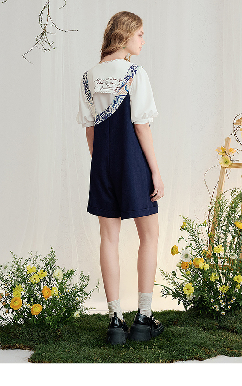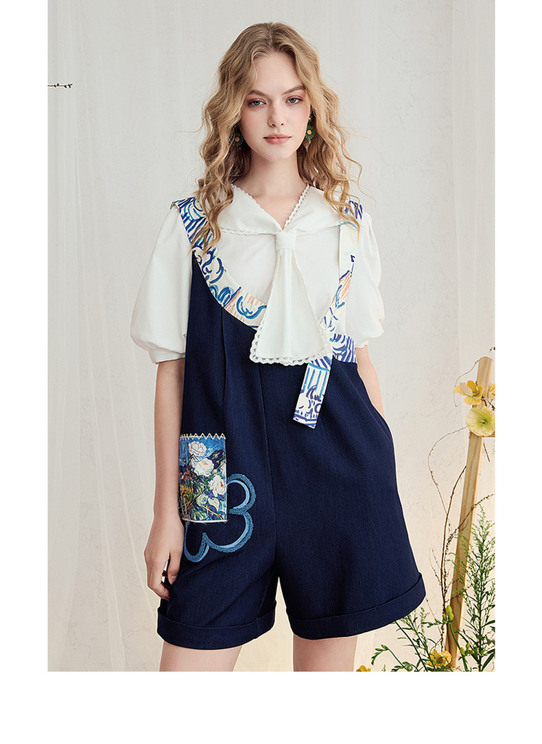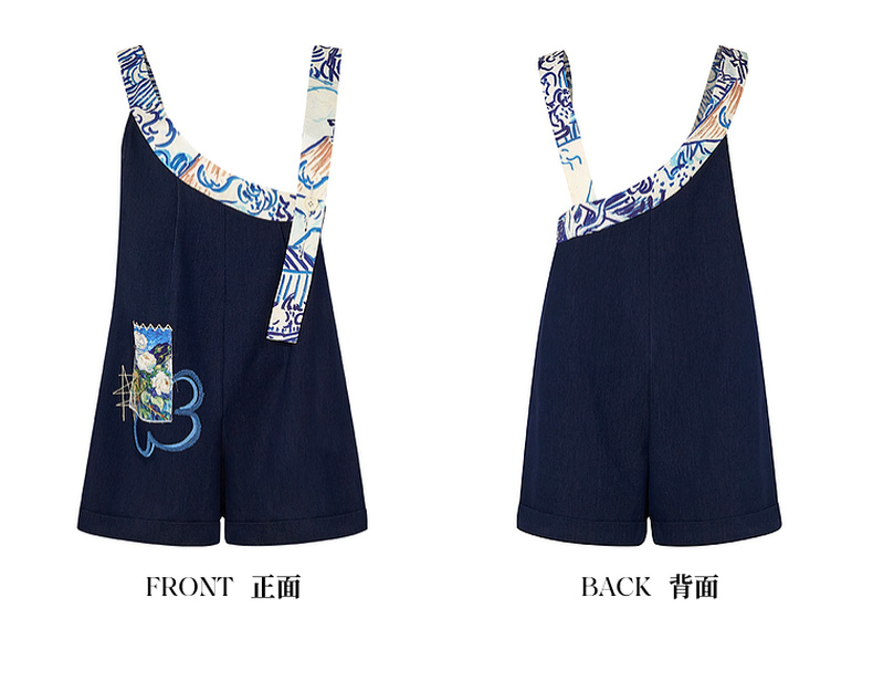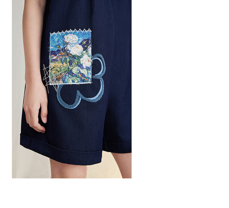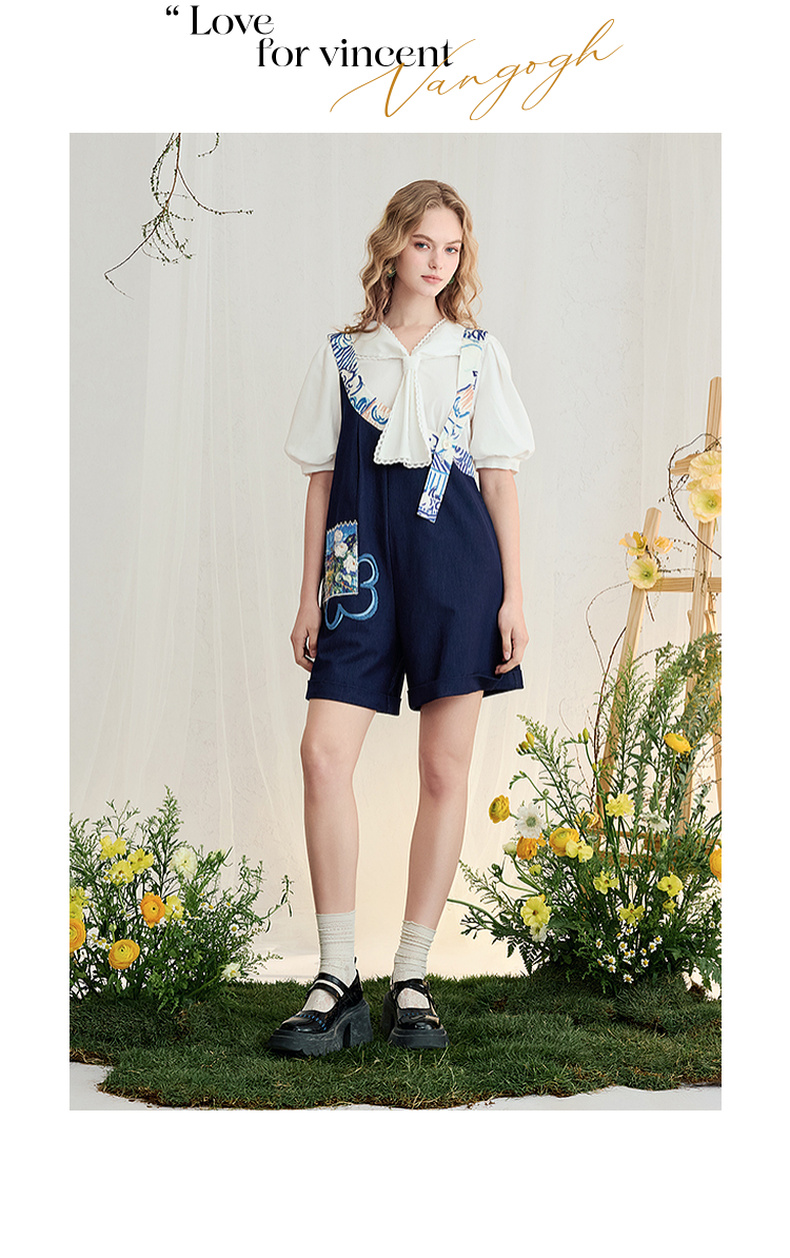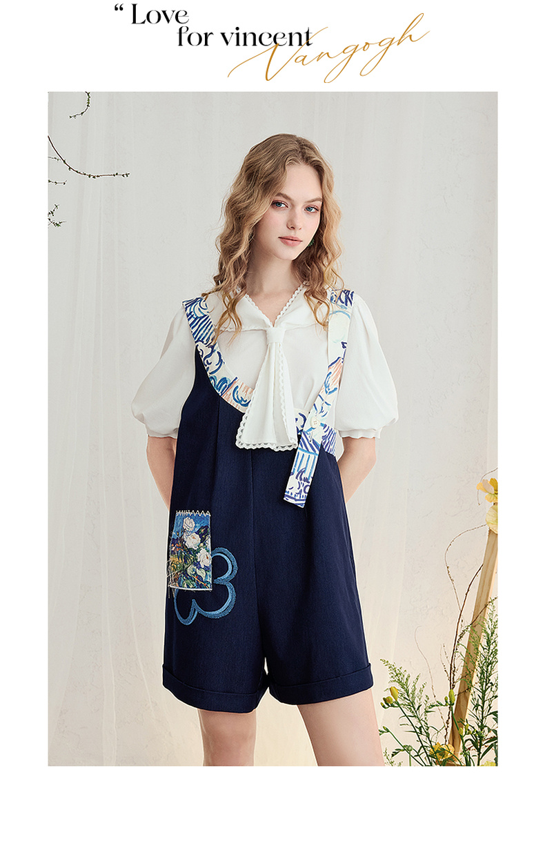 两三事梵高文艺星野画隅2025夏新款印花贴布绣不对称背带裤女宽松