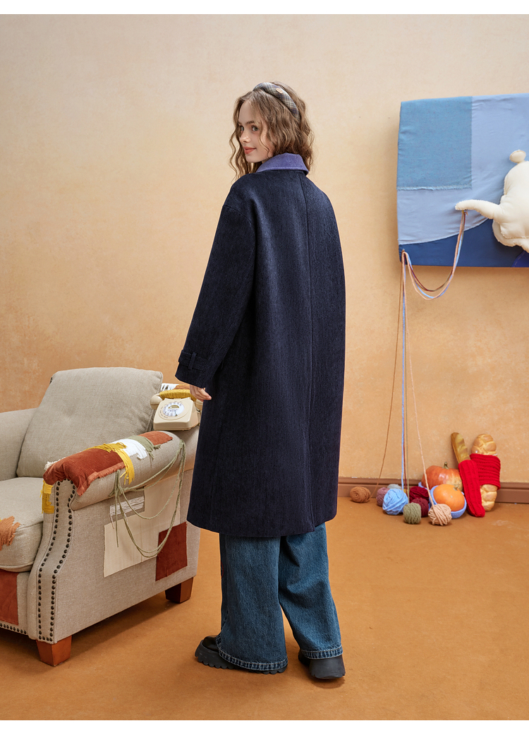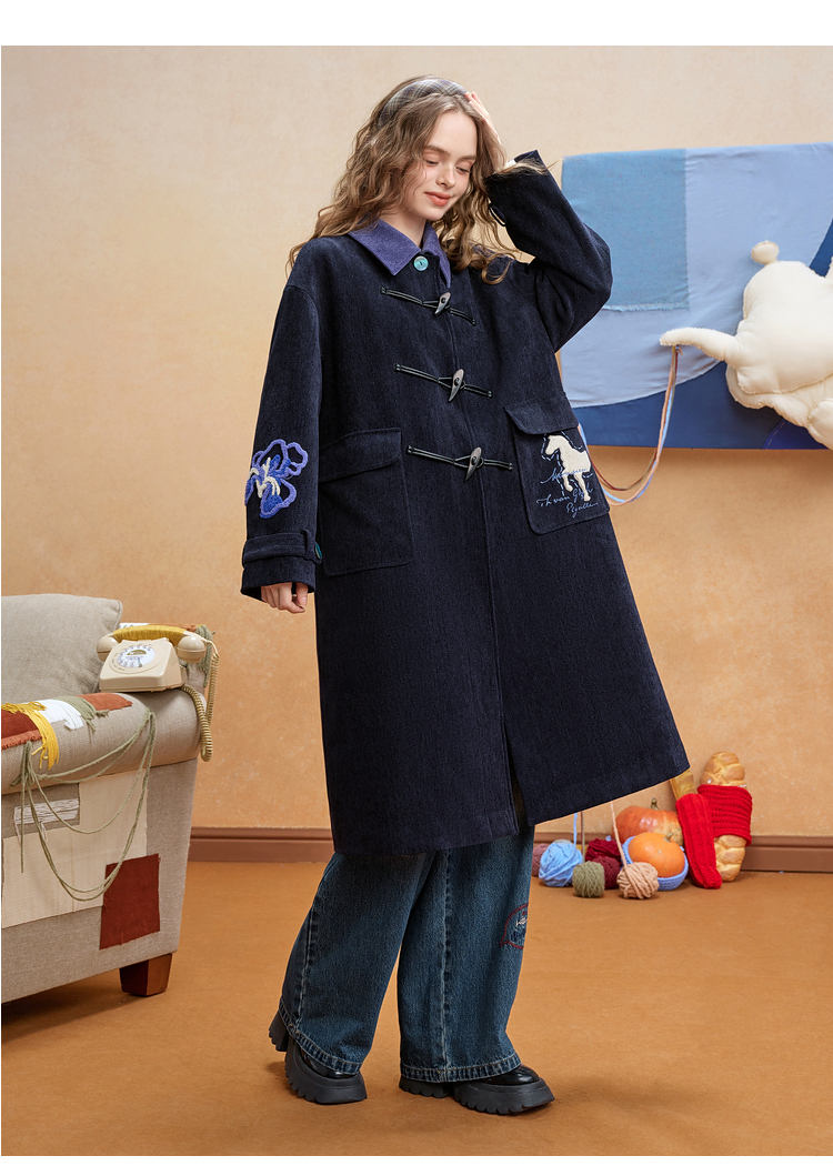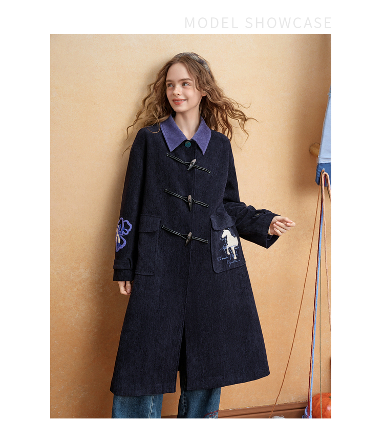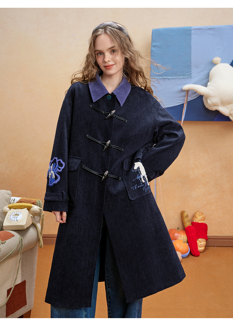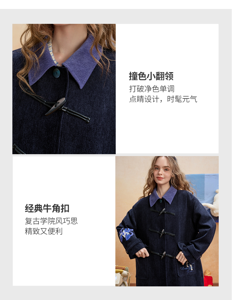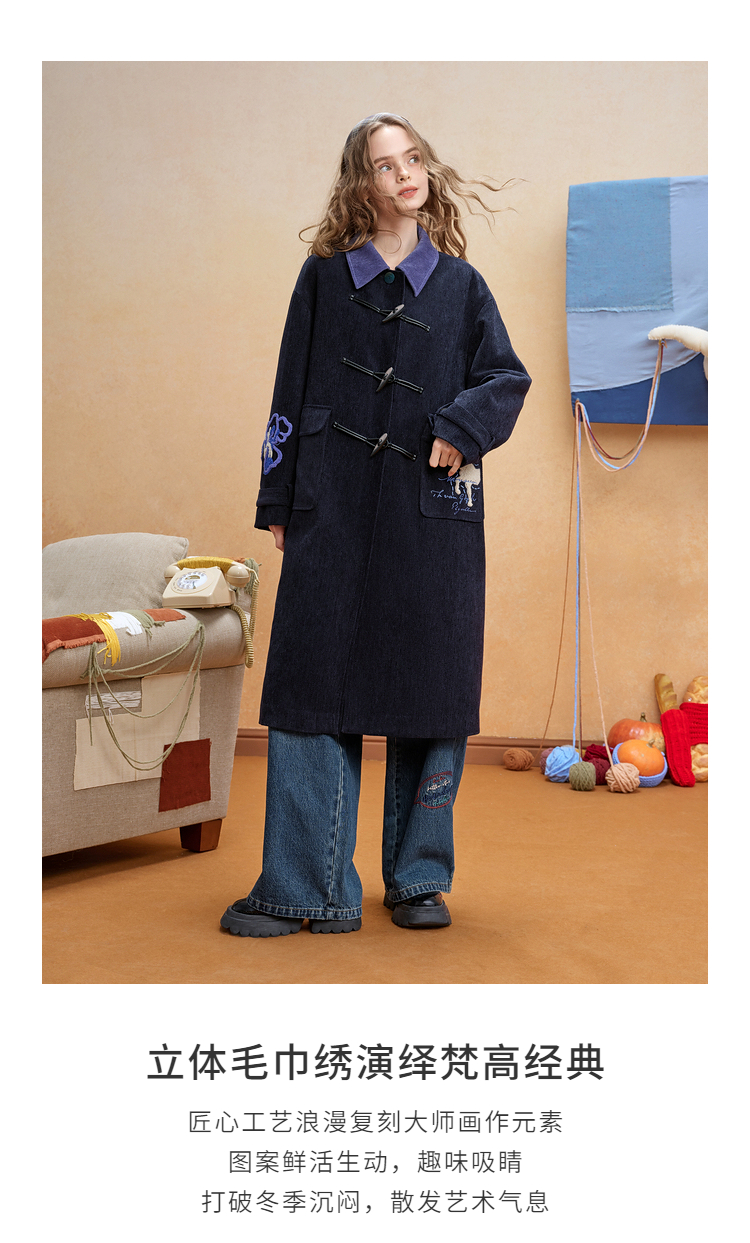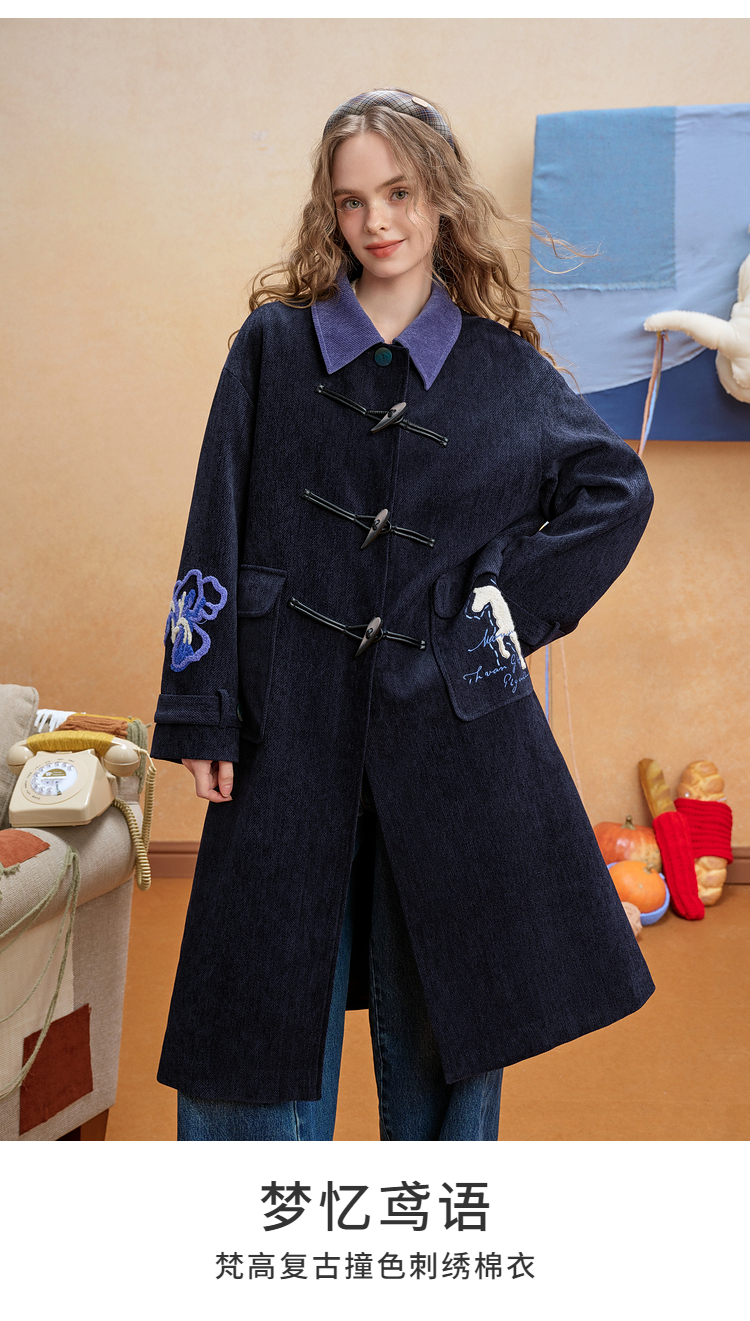 两三事 梦忆鸢语 2025冬季新款文艺风毛巾绣翻领牛角扣棉服外套