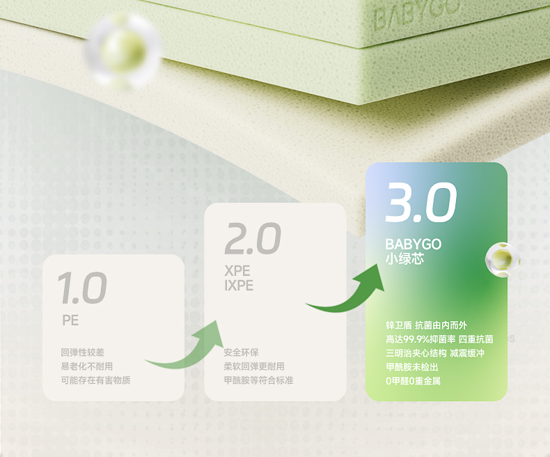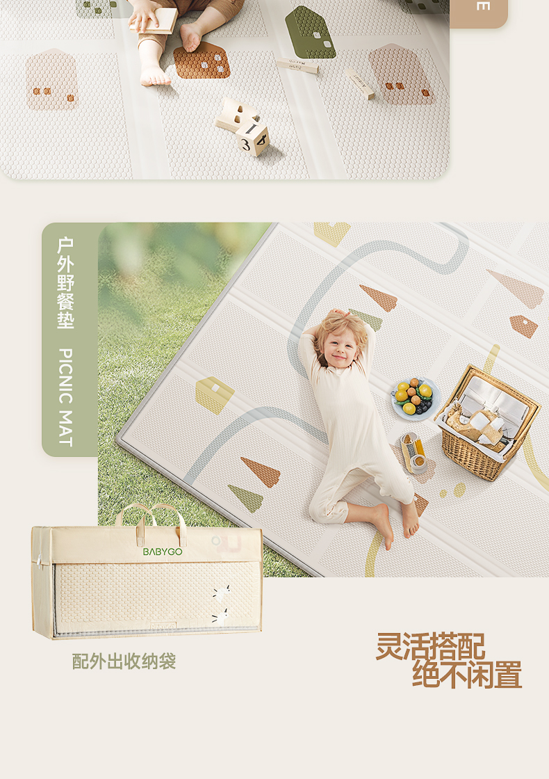【BG】BABYGO 爬爬垫XPE折叠垫小绿芯抗菌减震儿童爬爬垫