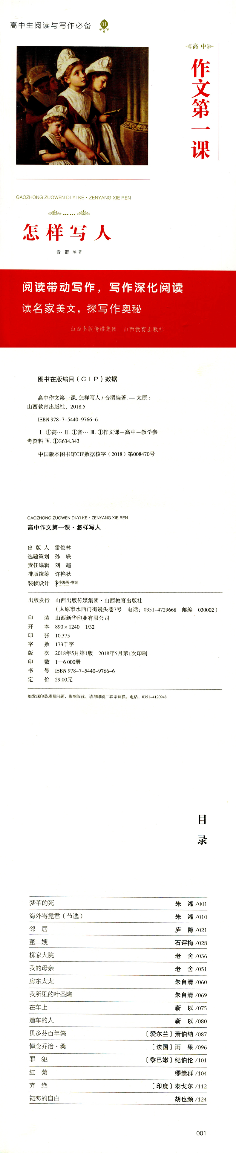 正版 高中作文第一课 怎样写人 高中生阅读与写作 知识与技能 教学参考 名家美文