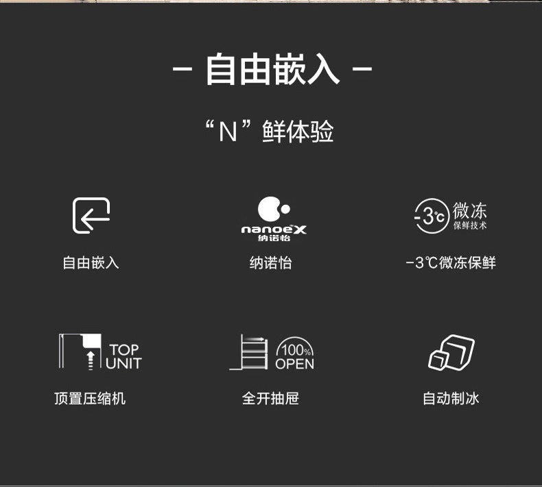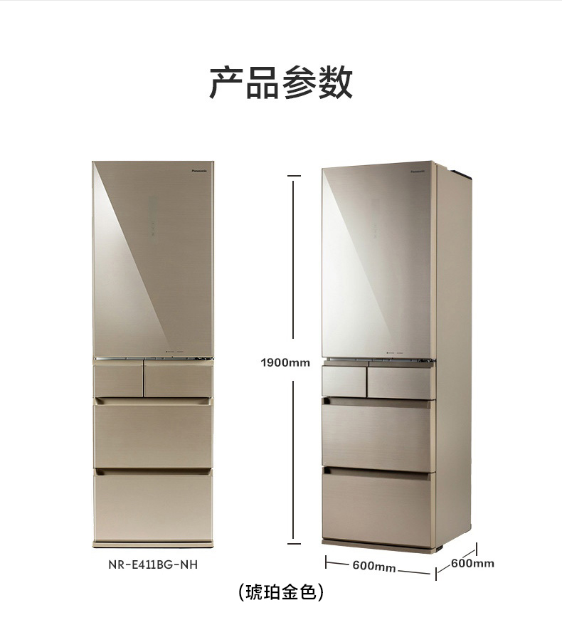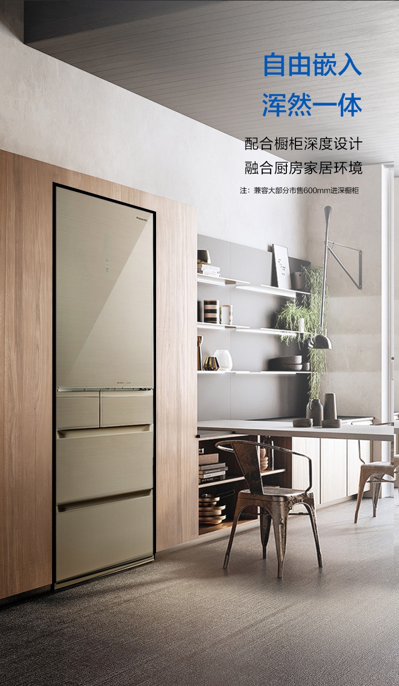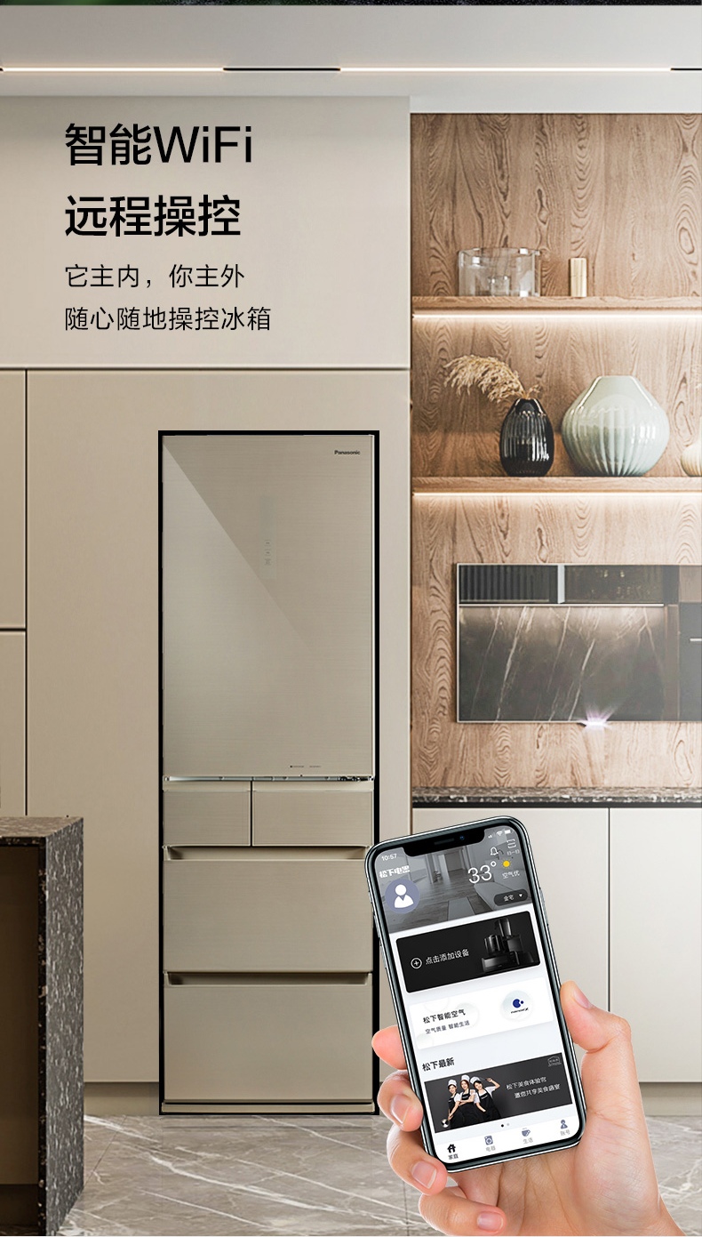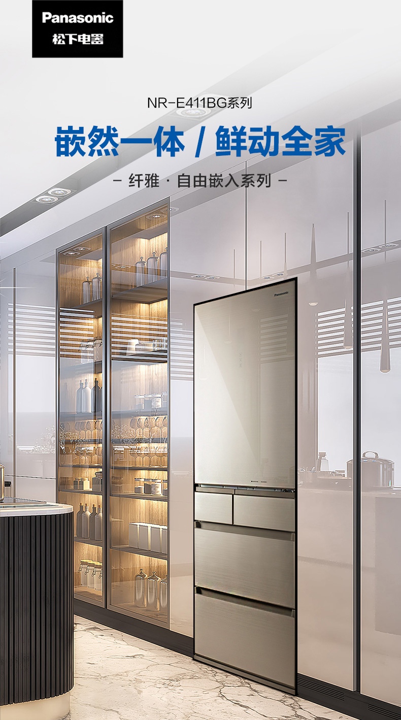 松下(Panasonic)线下同款 380升多门纳诺怡X除菌净味超薄60cm自由嵌入式APP智控自动制冰NR-E411BG-NH
