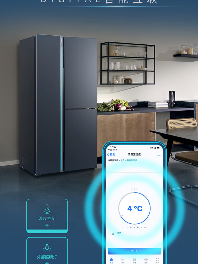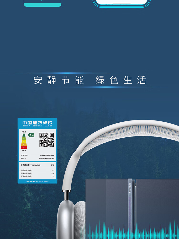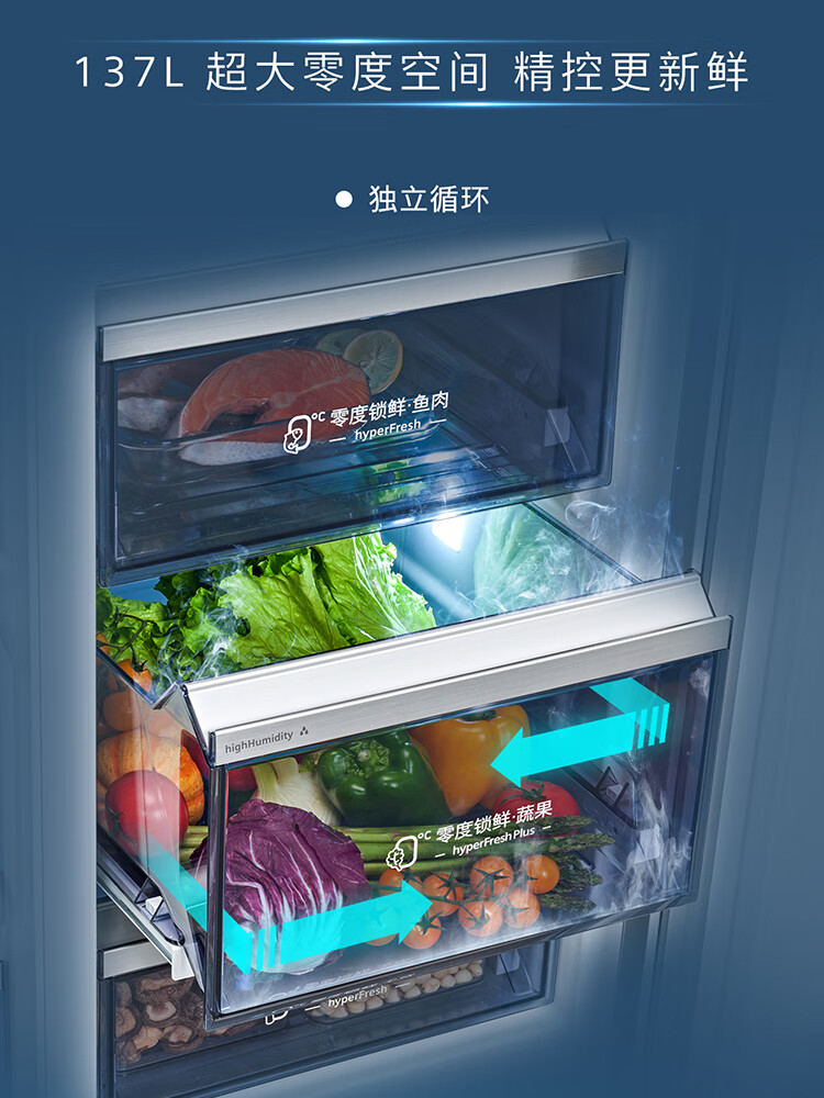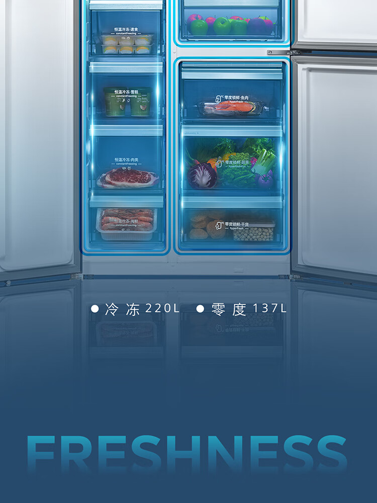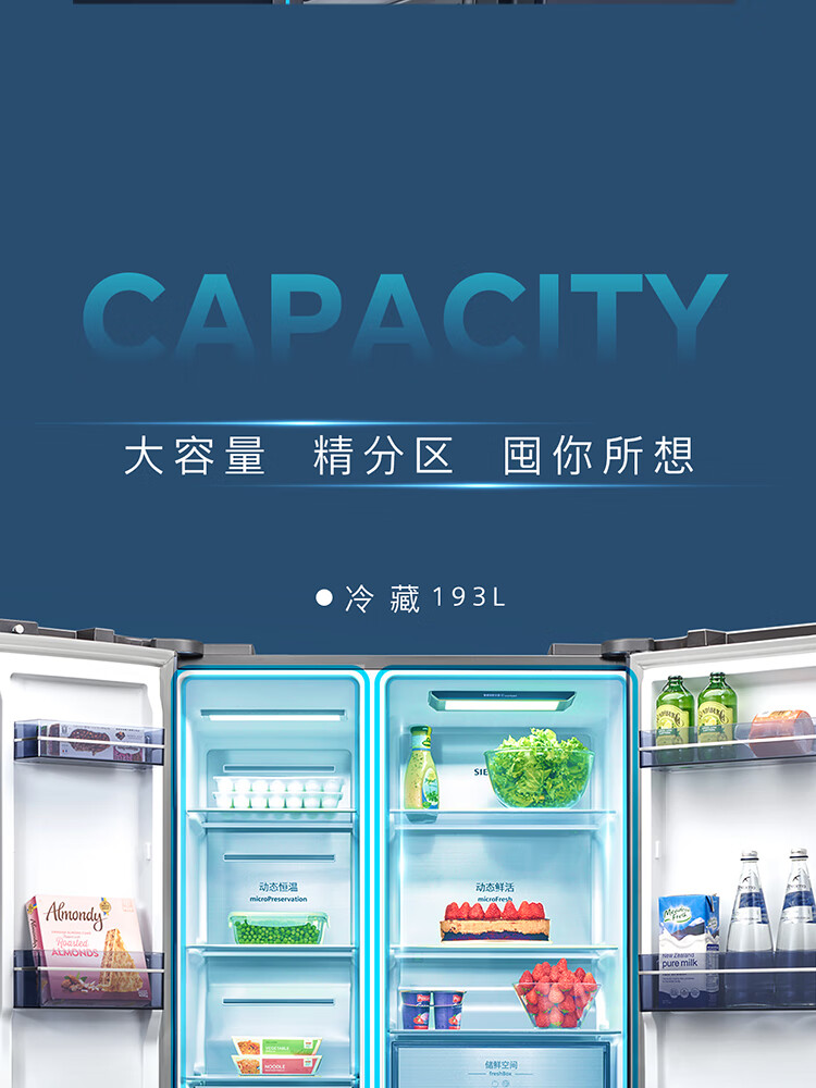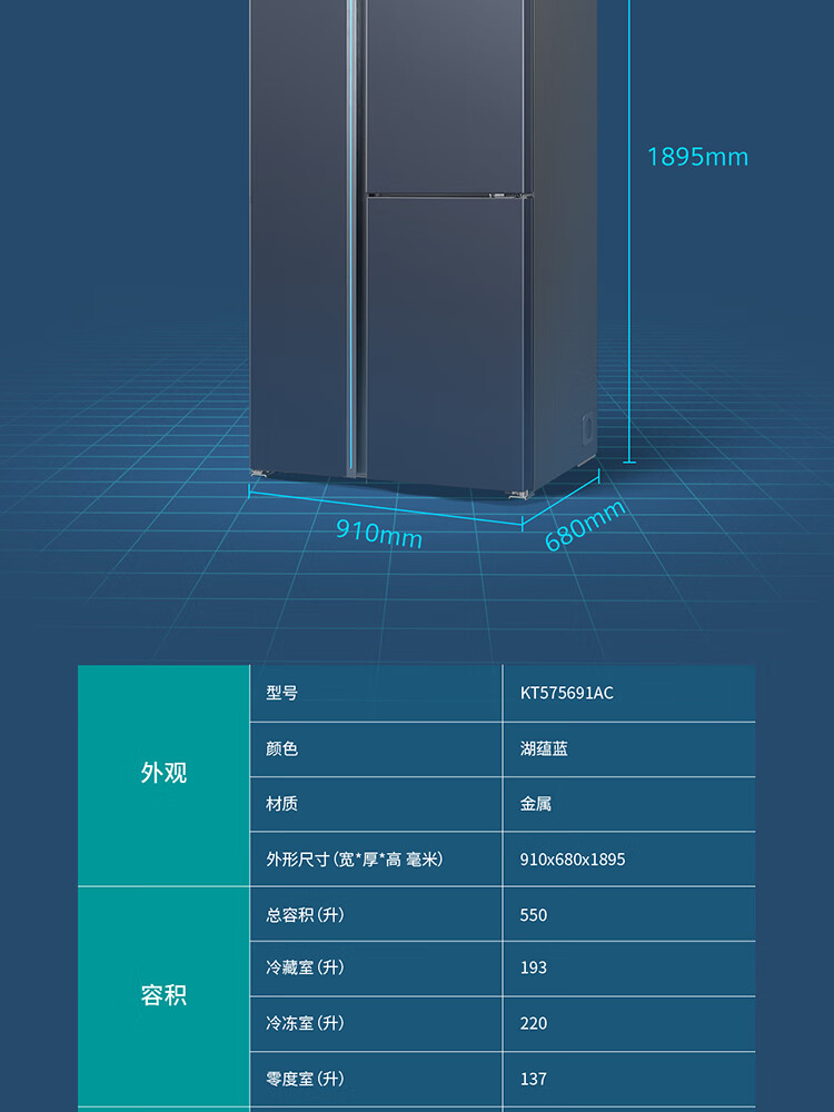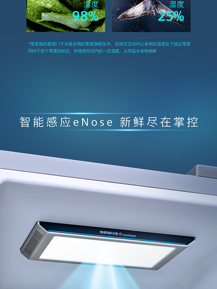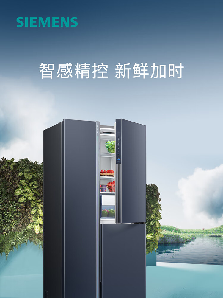 西门子(SIEMENS)超氧零度保鲜对开三门多门家用冰箱550L 智能e-Nose除菌净味 双循环风冷无霜 KT575691AC 【湖蕴蓝】