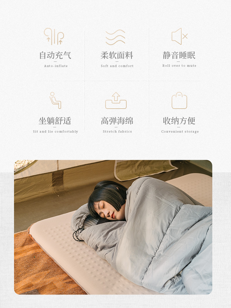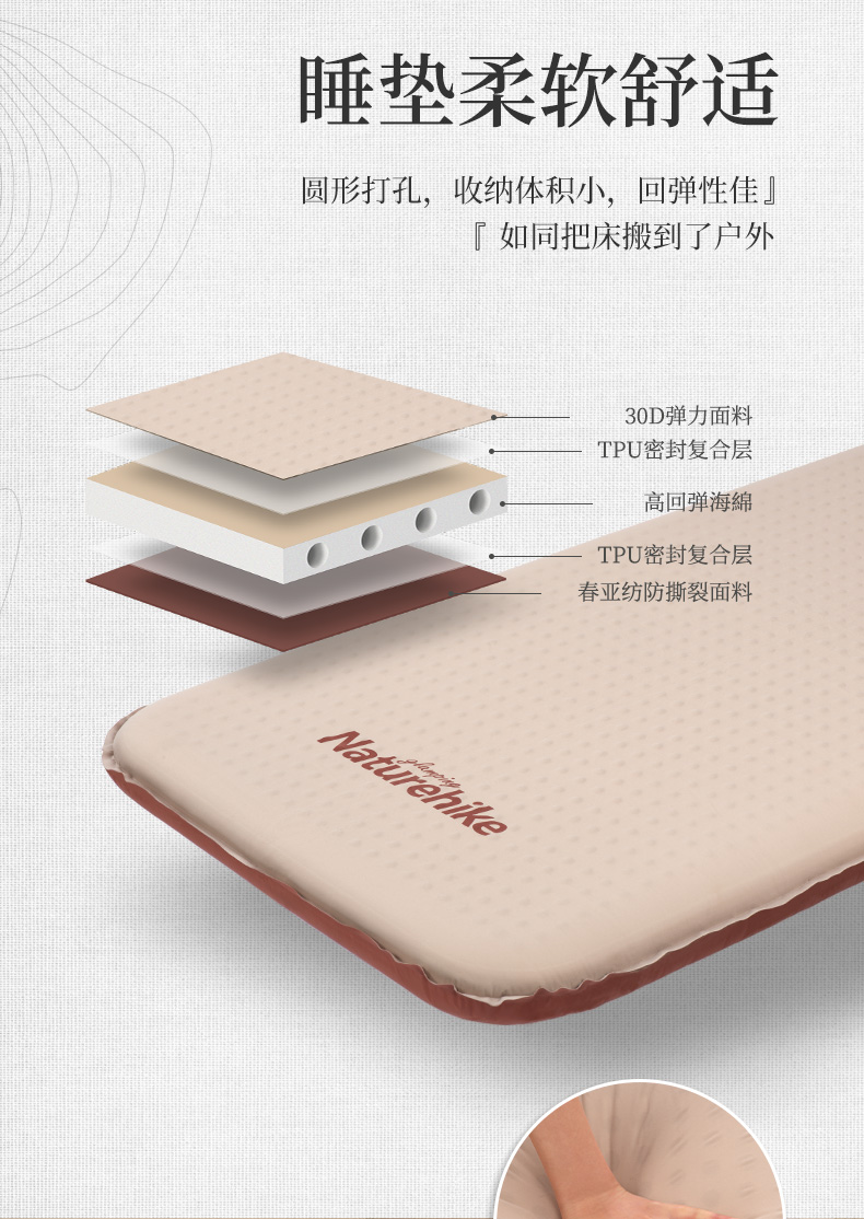 【已下架】预售 | Naturehike挪客 单人薄款弹力布自动充气垫户外帐篷睡垫防潮地垫露营床垫[福利品]
