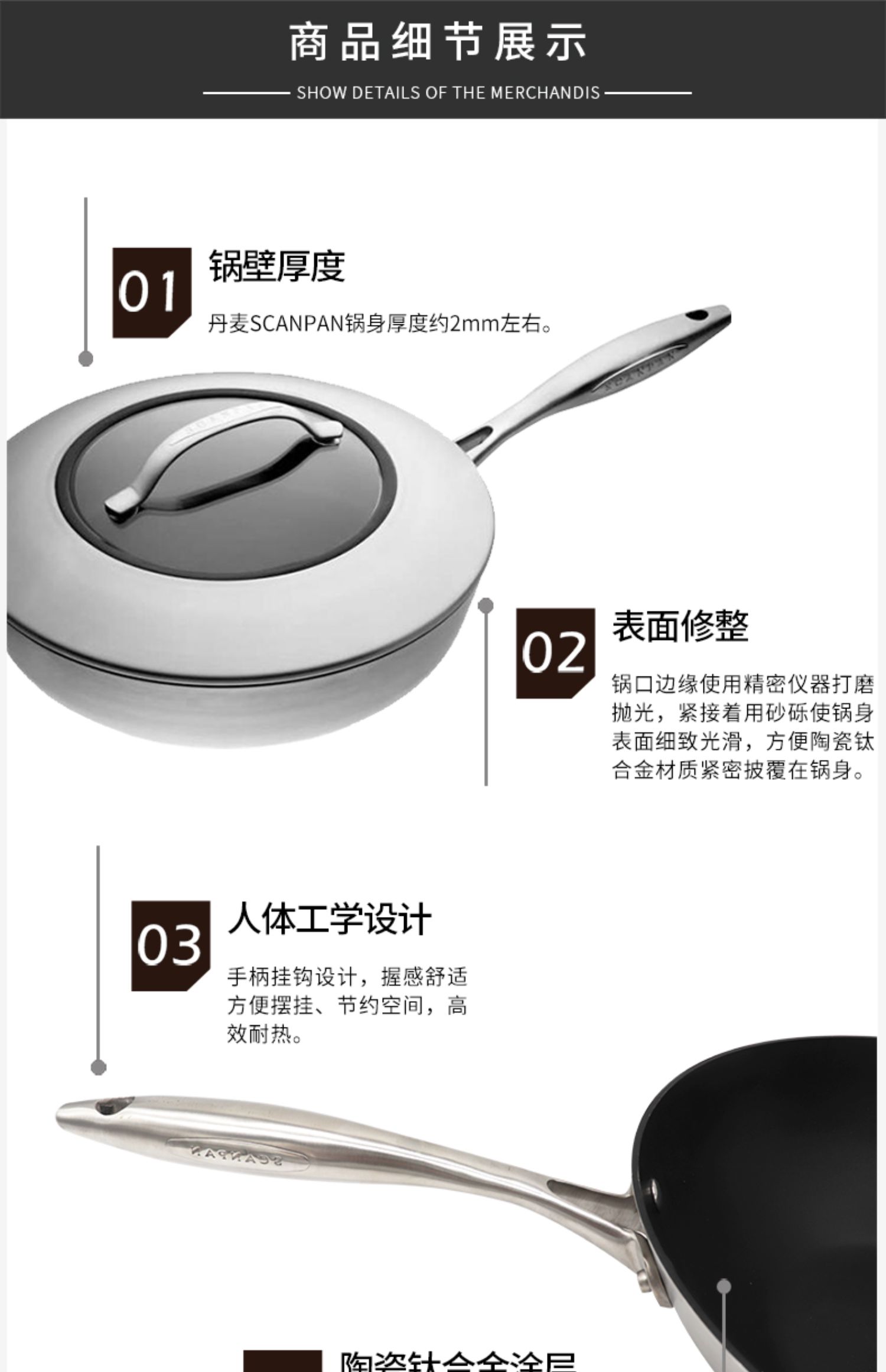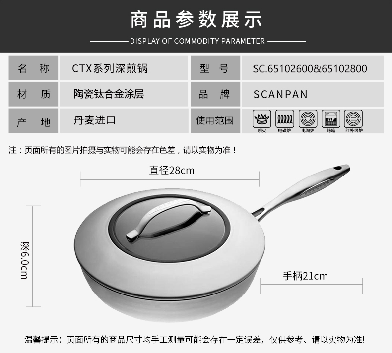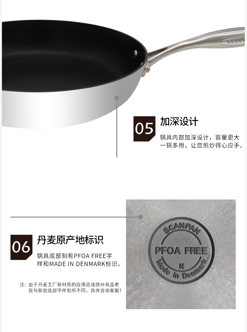 丹麦原装进口SCANPAN不粘锅不锈钢CTX系列煎锅电磁炉燃气通用