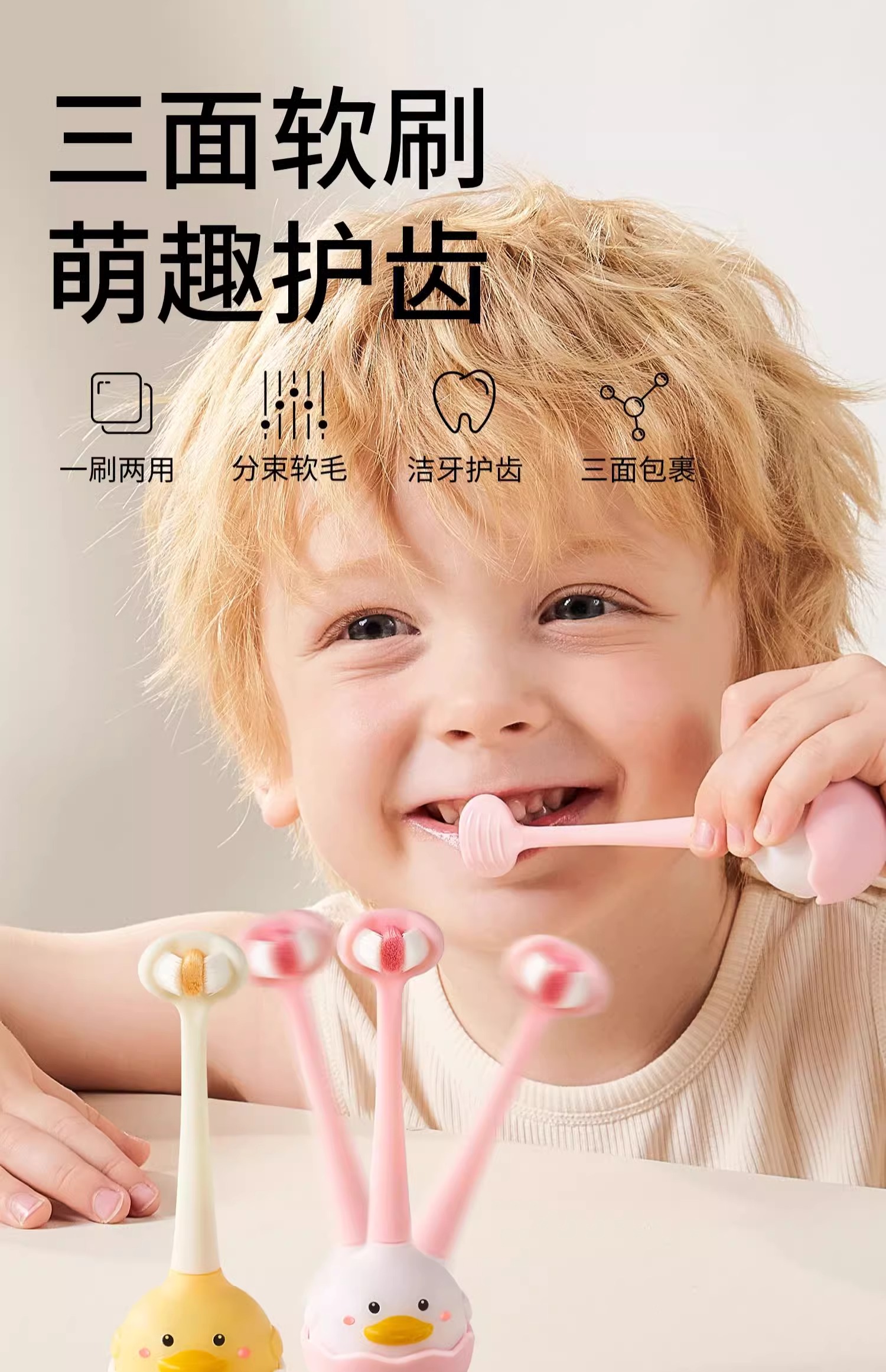 科巢儿童软毛牙刷三面宝宝0-1-2-3到6一12岁以上一牙膏婴儿u型d婴幼儿