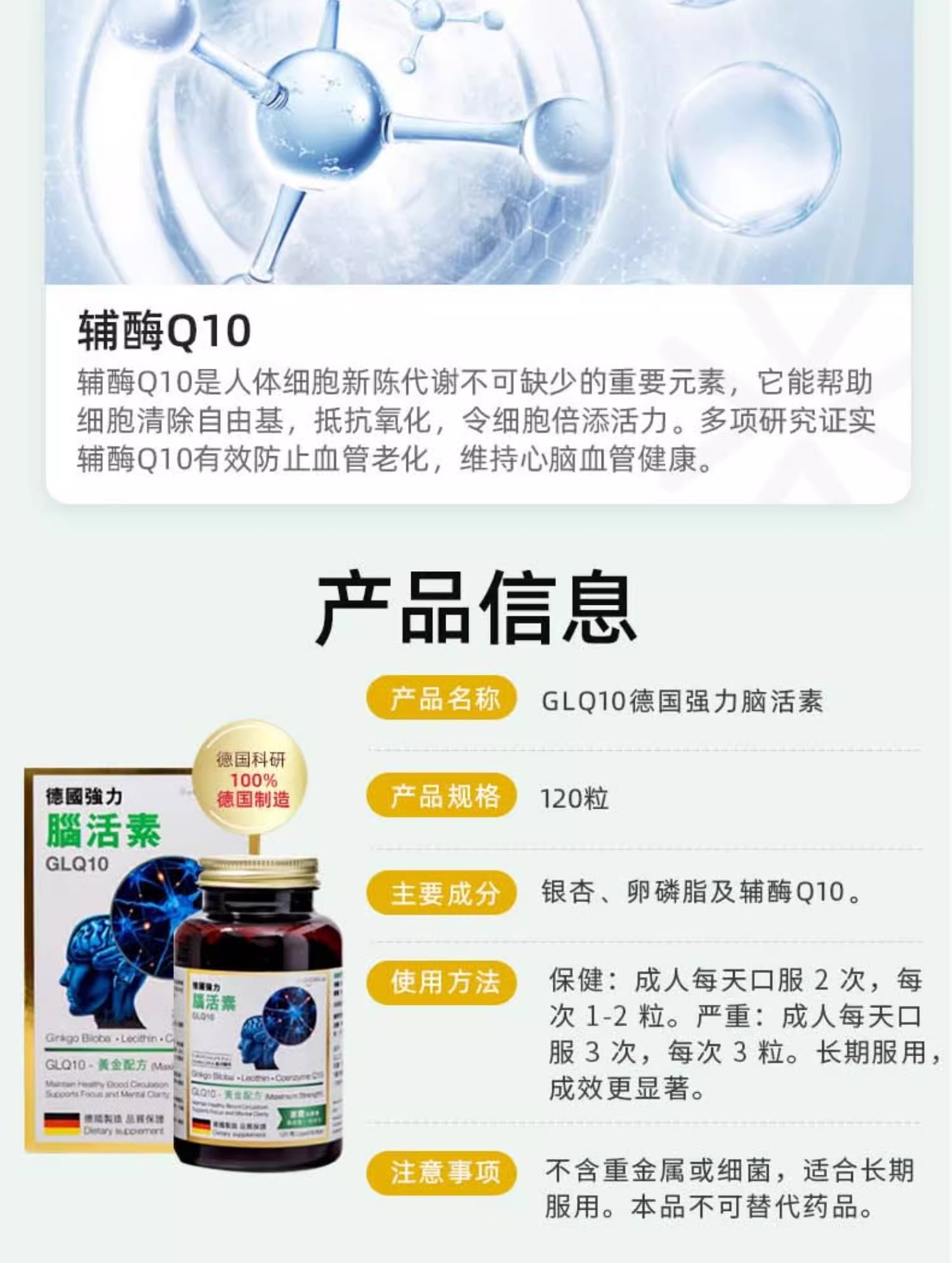 德国THE GLOBALAB GLQ10 脑活素 120粒