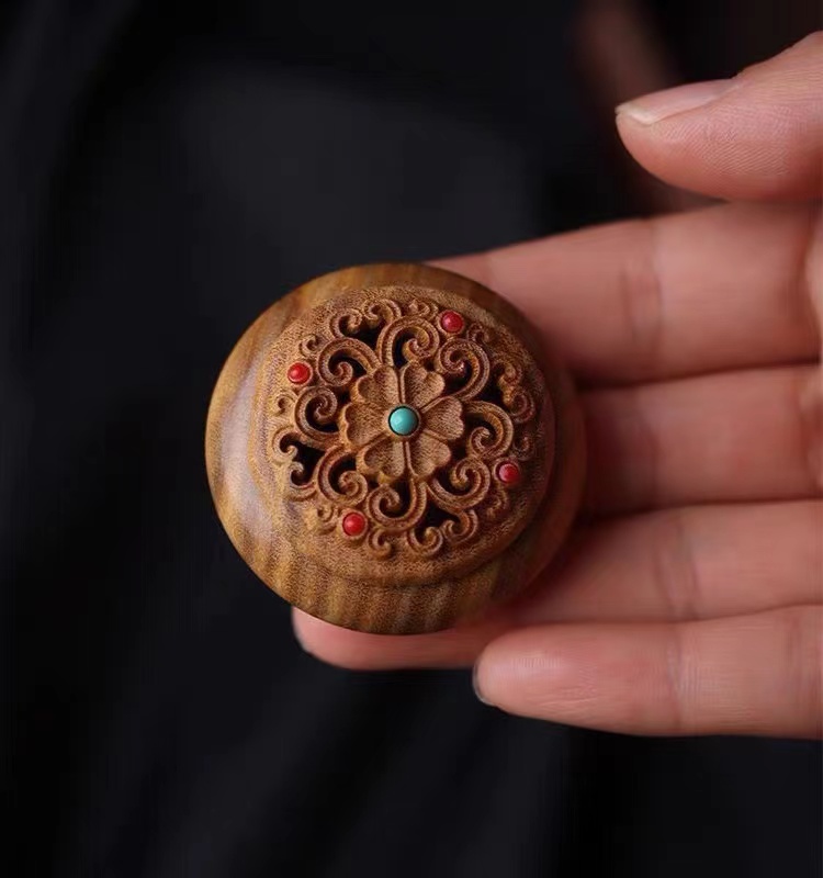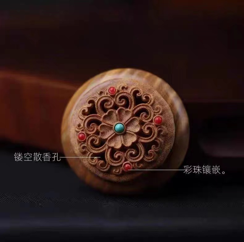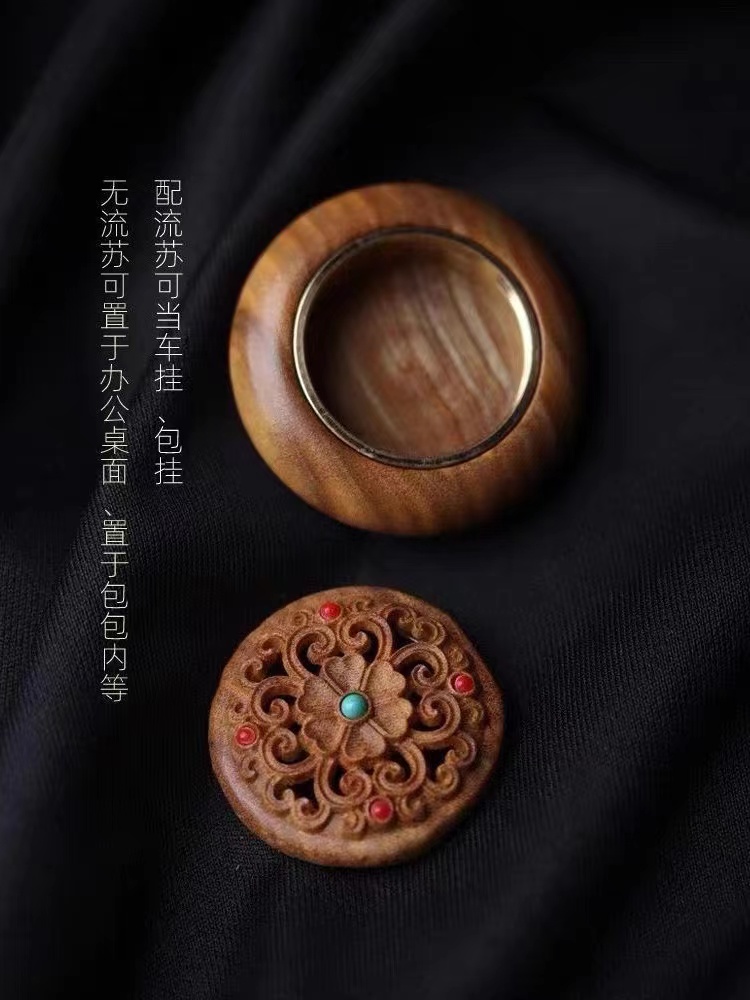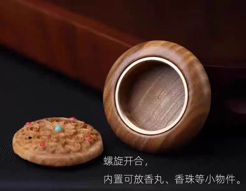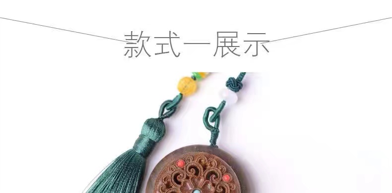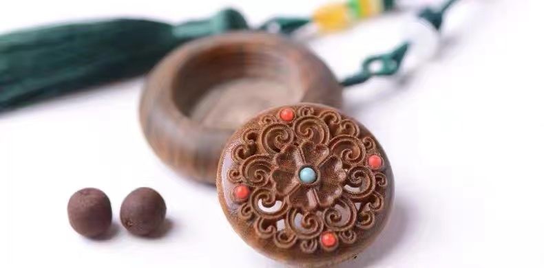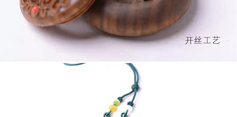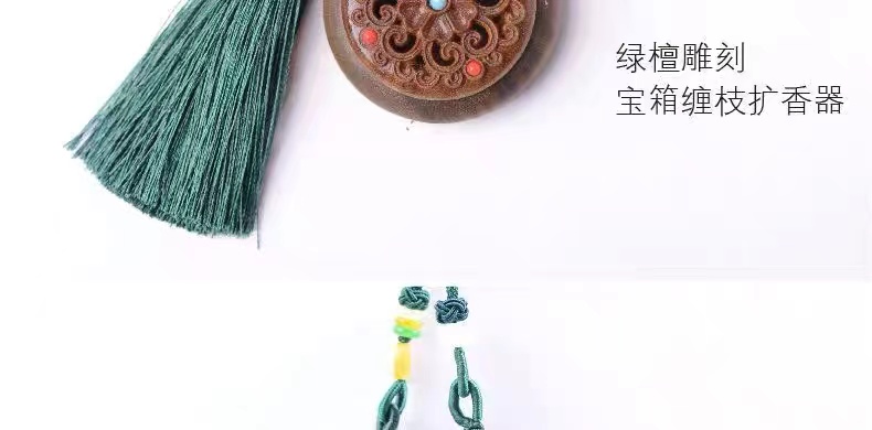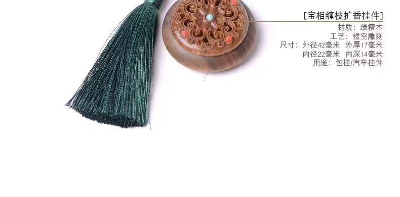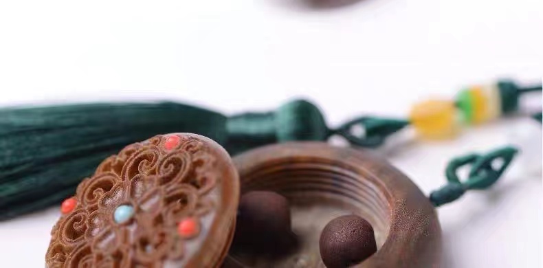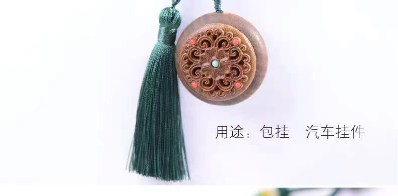 绿檀木香盒镂空雕刻流苏香囊挂件