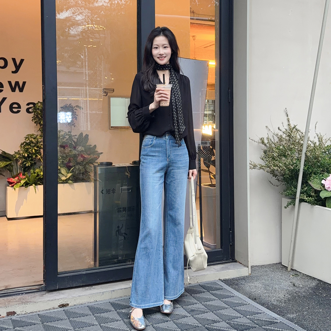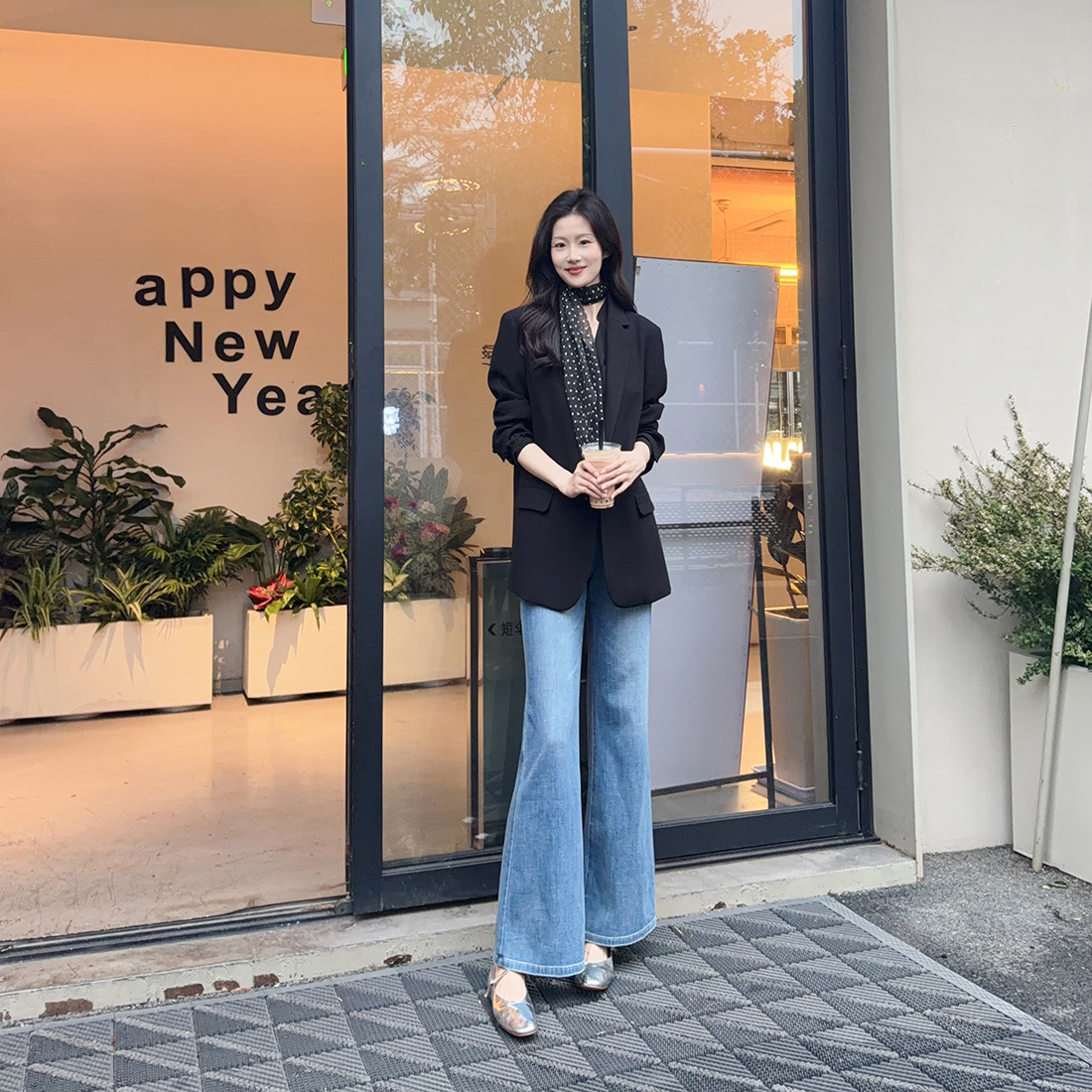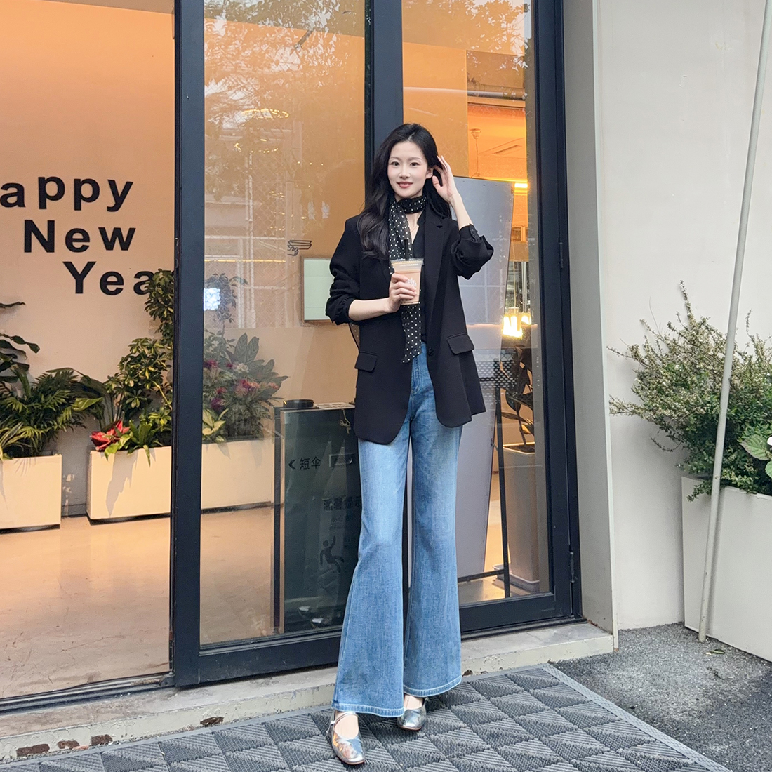 火桐hooton 海蓝港风 四面弹筒喇牛仔裤