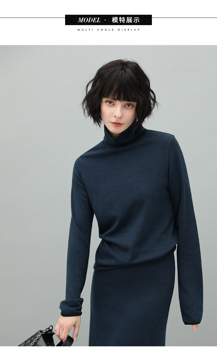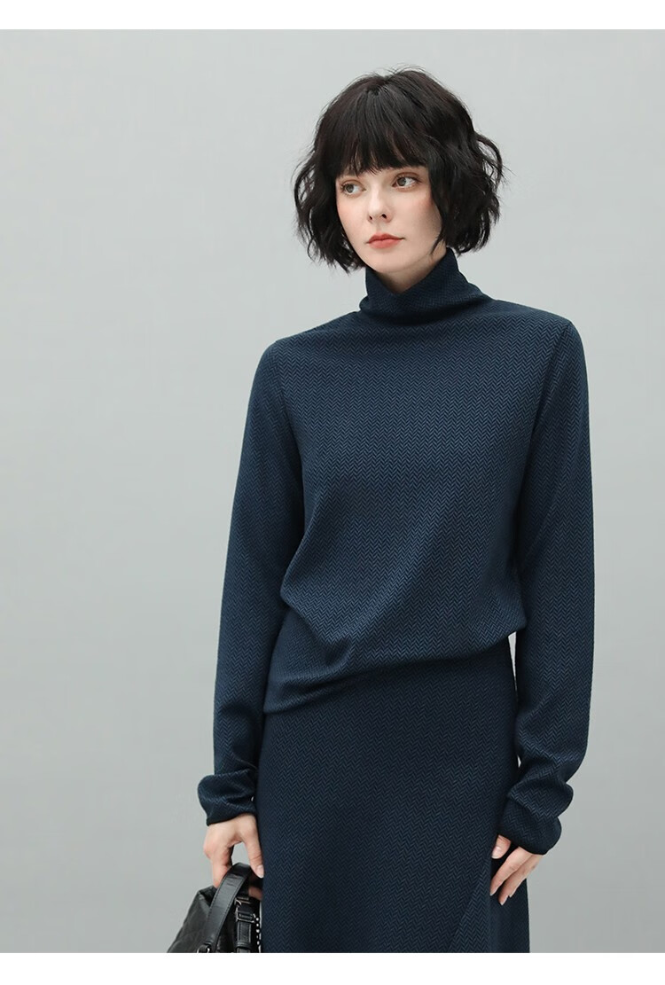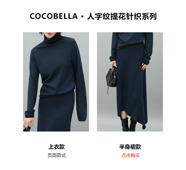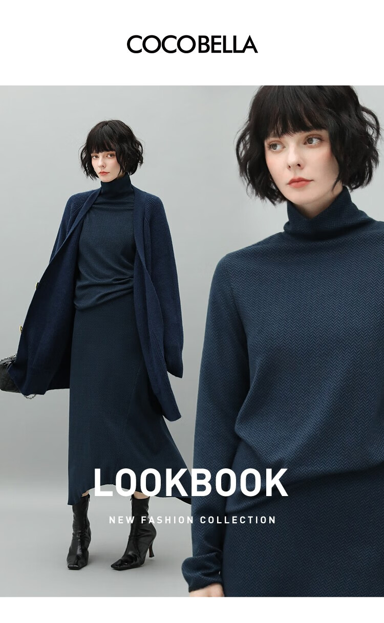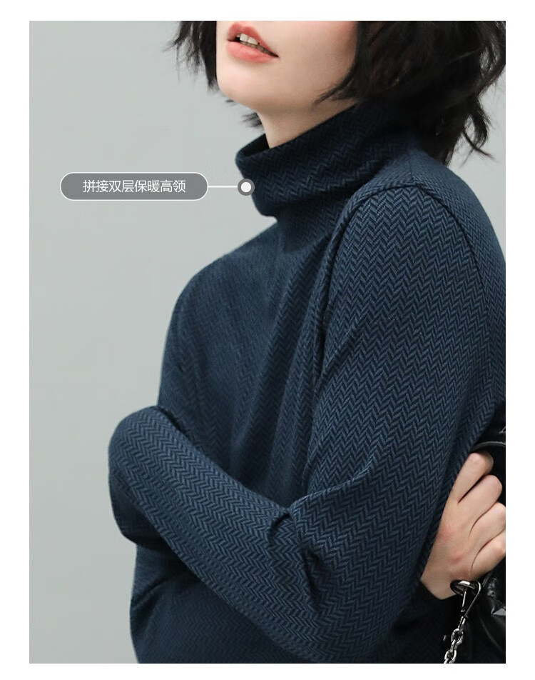 【有赞】MZ517COCOBELLA优雅人字纹高领毛衣女气质通勤堆堆领针织衫