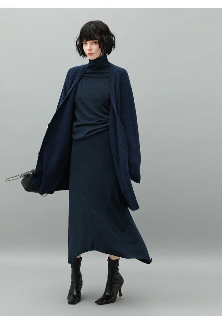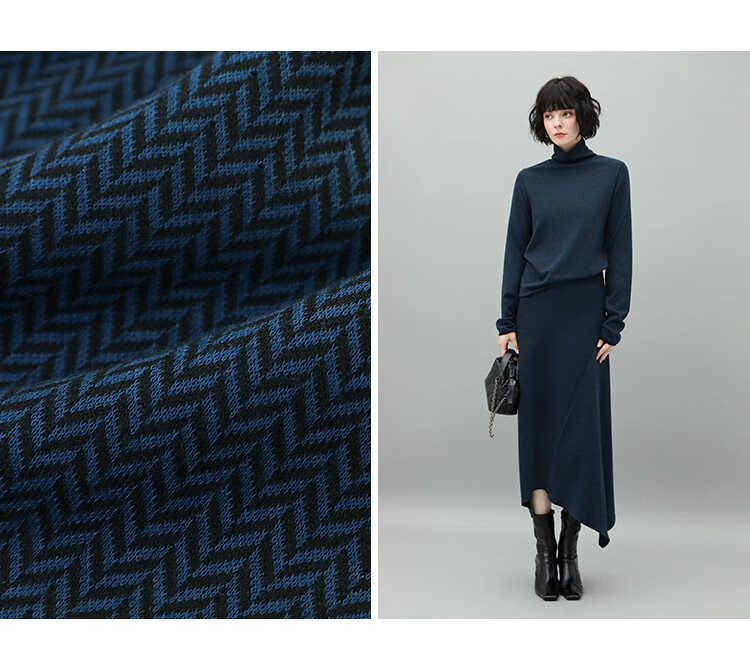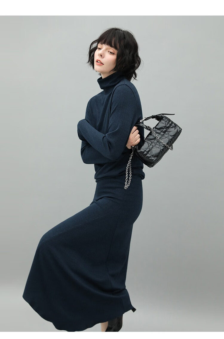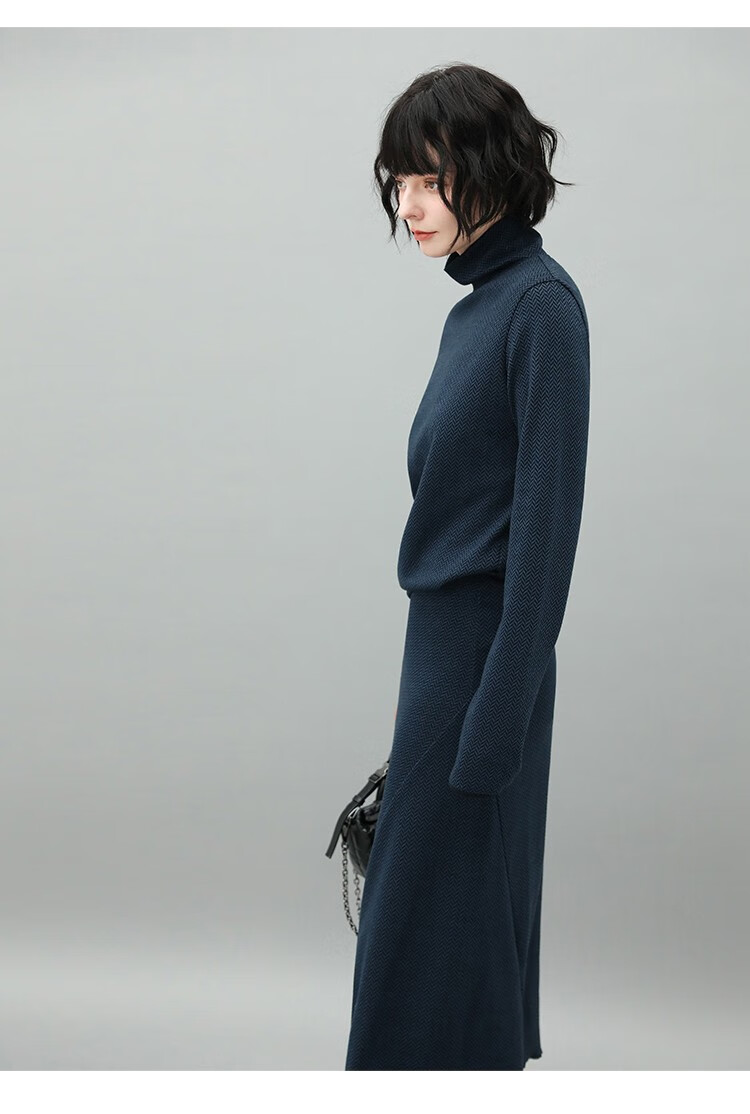 【有赞】MZ517COCOBELLA优雅人字纹高领毛衣女气质通勤堆堆领针织衫