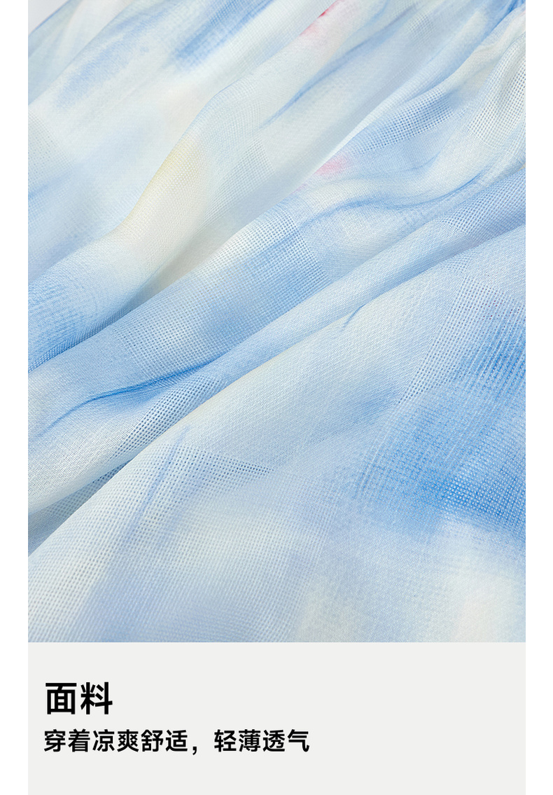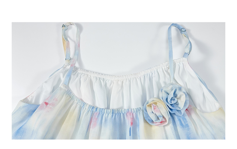 两三事 森灵绮梦 2025夏季新款小清新印花拼色绑带吊带裙连衣裙