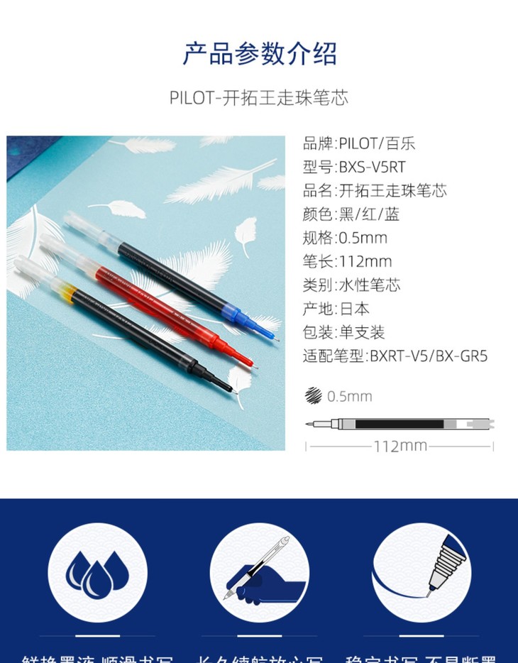 PILOT/百乐 针管式笔替芯0.5mm 笔芯学生可用BXS-V5RT