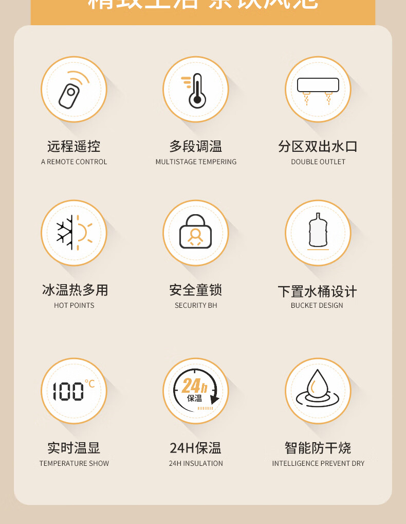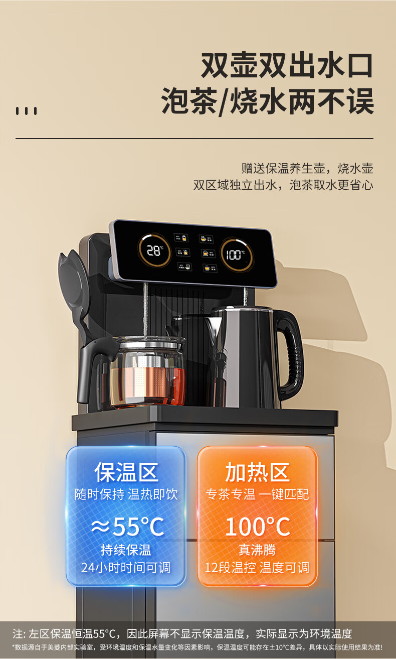 美菱(MeiLing)茶吧机家用饮水机遥控智能【双温双显双出水口】下置水桶立式泡茶机冷热款MY-C919-B 100052054978
