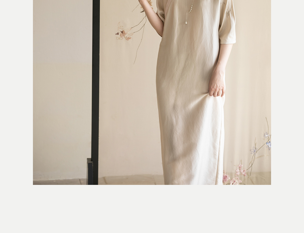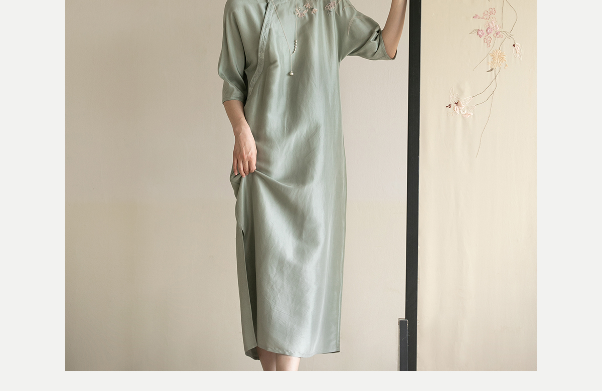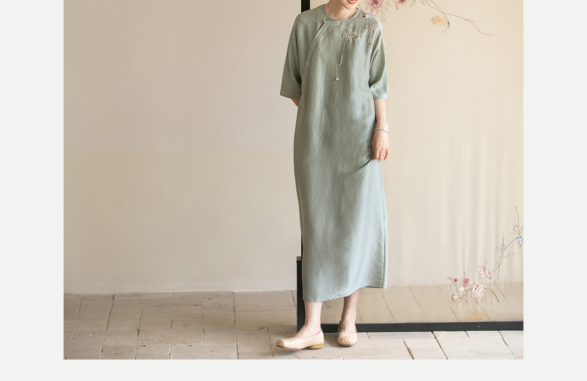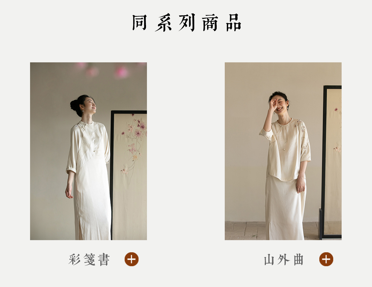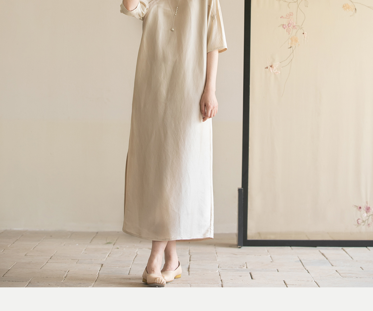 牧衣游原创 重磅双宫绸精工手绣桑蚕丝连衣裙复古中式长裙 月初斜