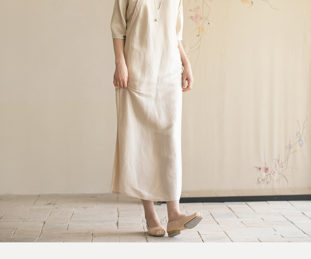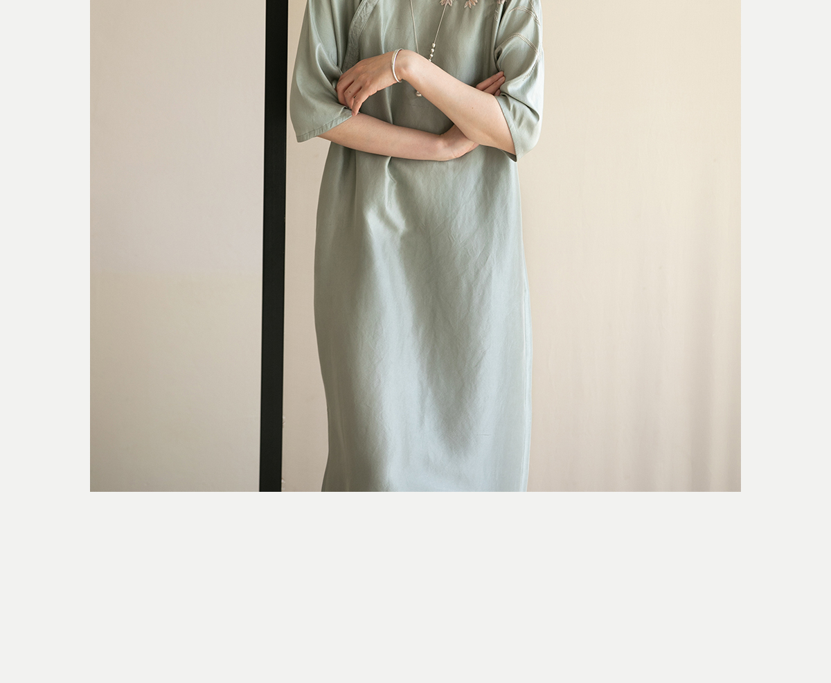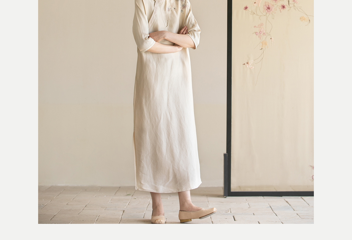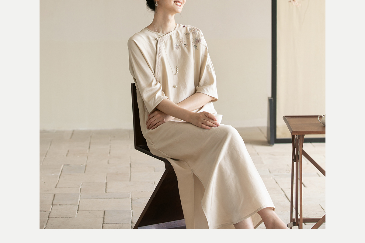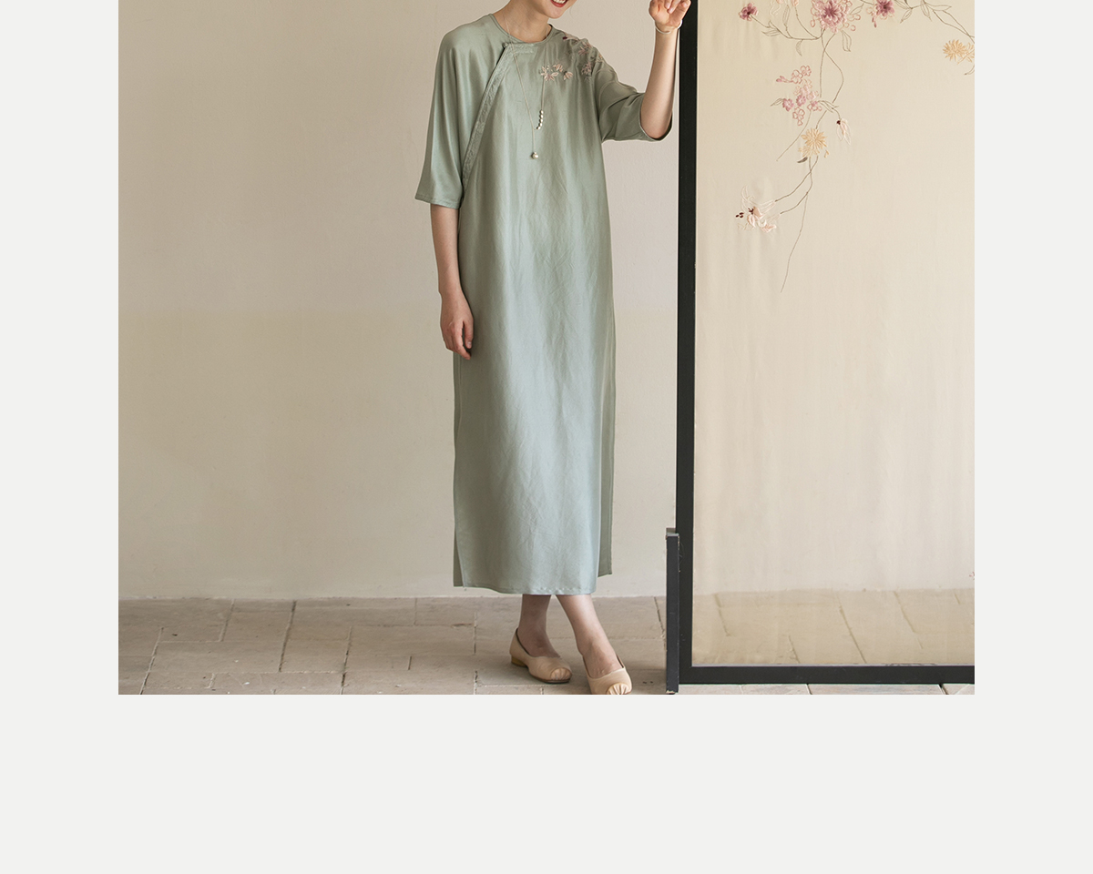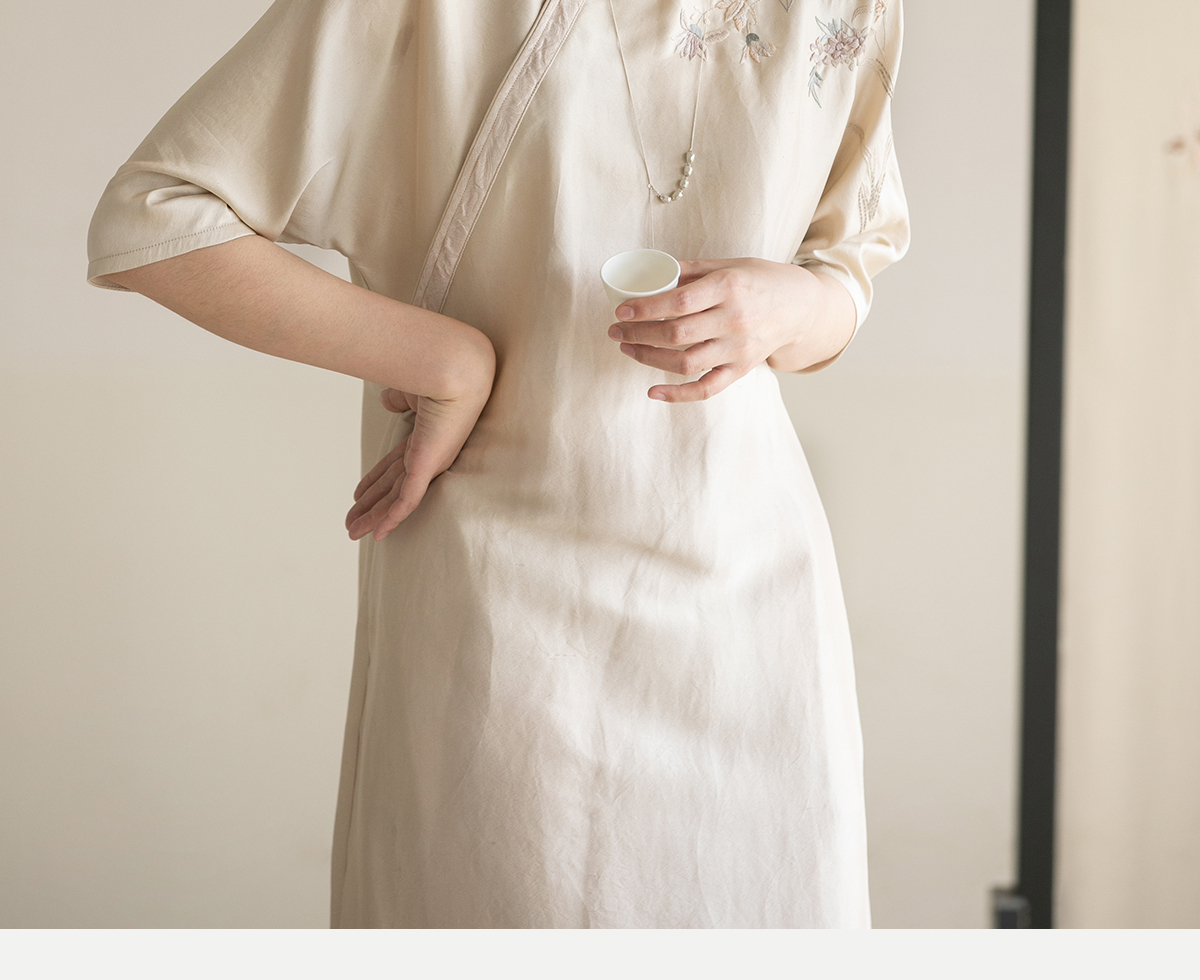 牧衣游原创 重磅双宫绸精工手绣桑蚕丝连衣裙复古中式长裙 月初斜