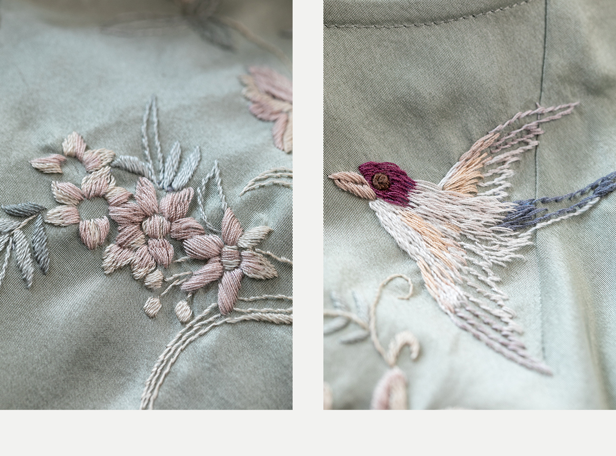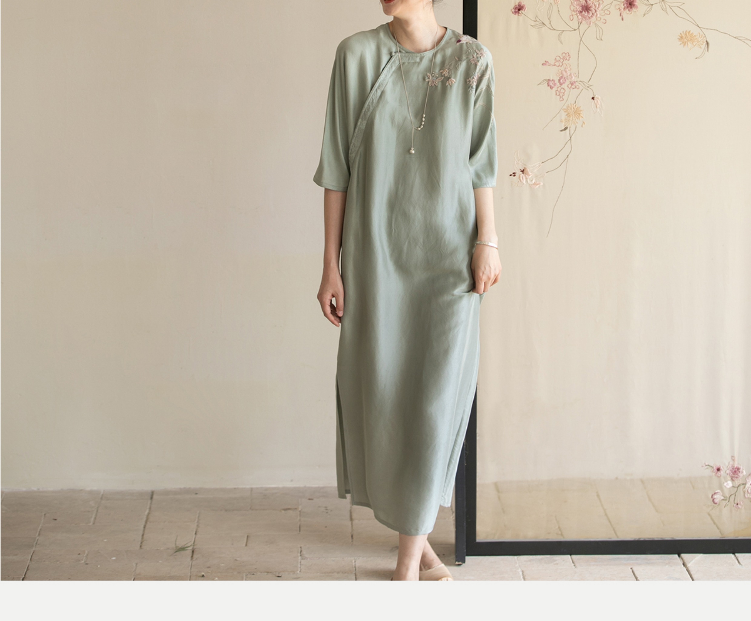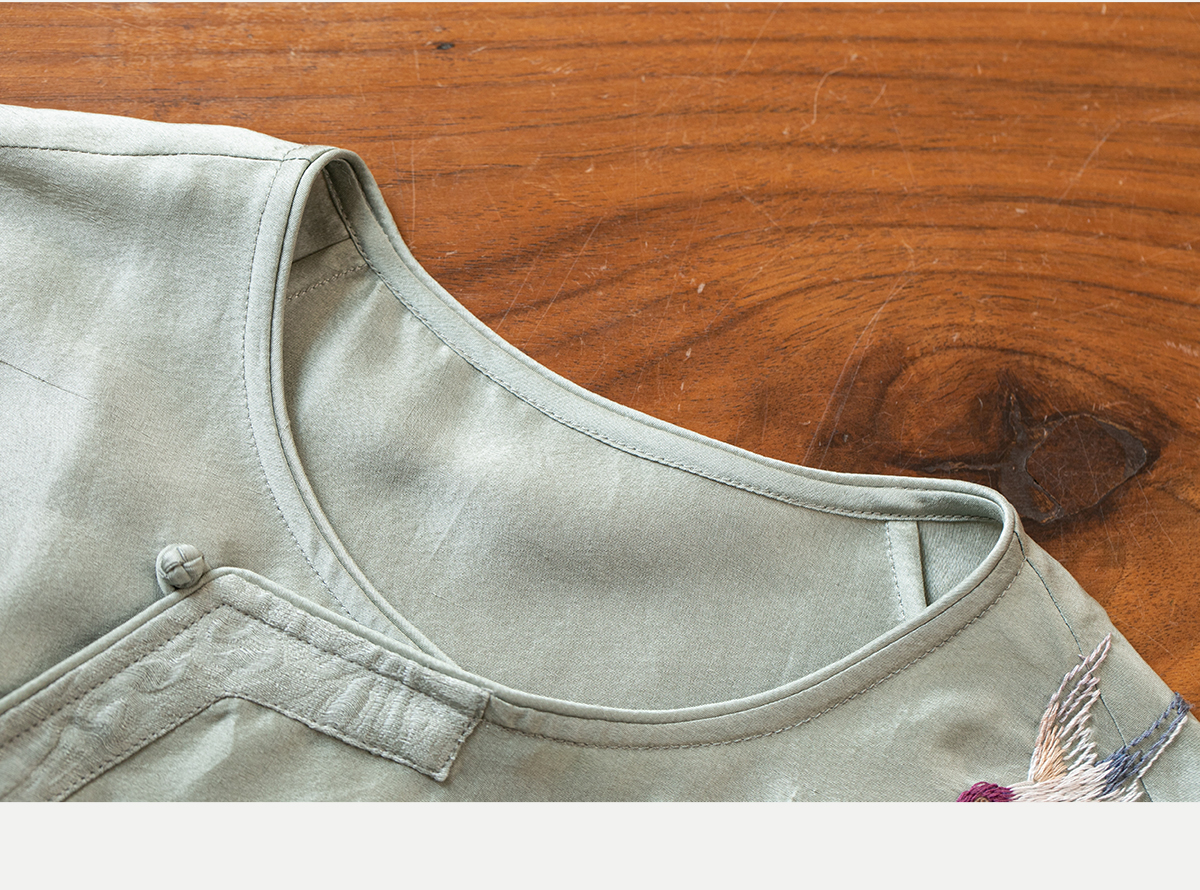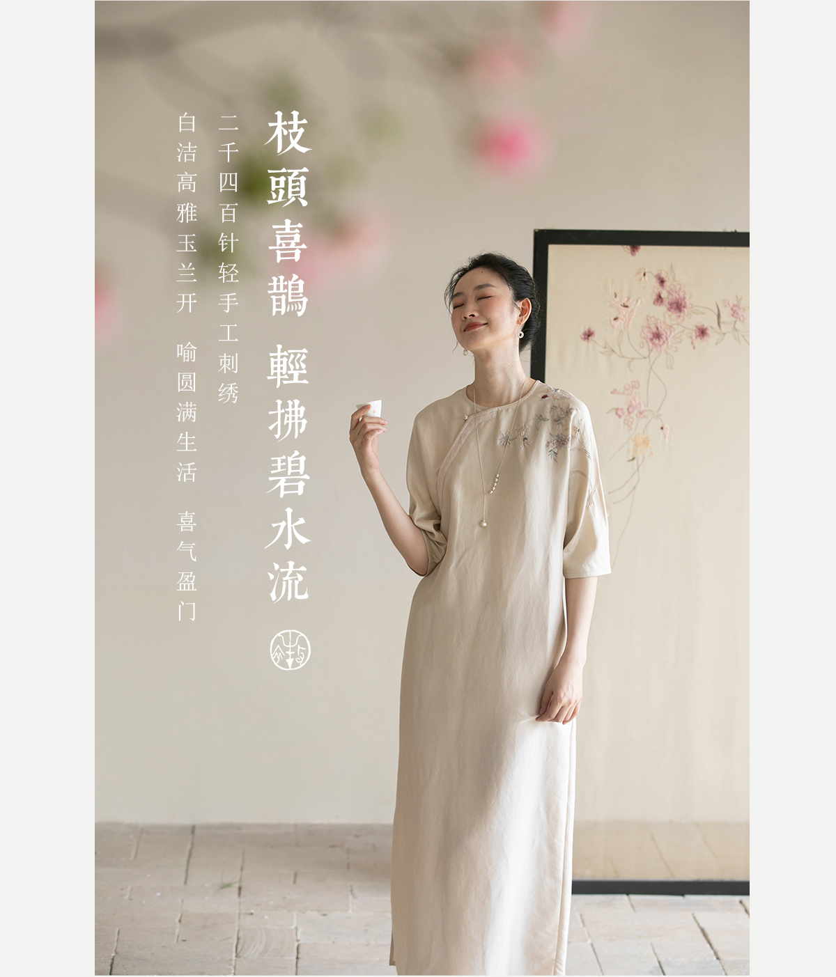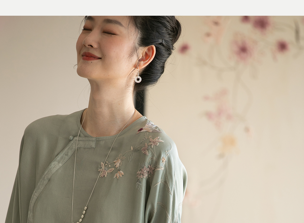牧衣游原创 重磅双宫绸精工手绣桑蚕丝连衣裙复古中式长裙 月初斜