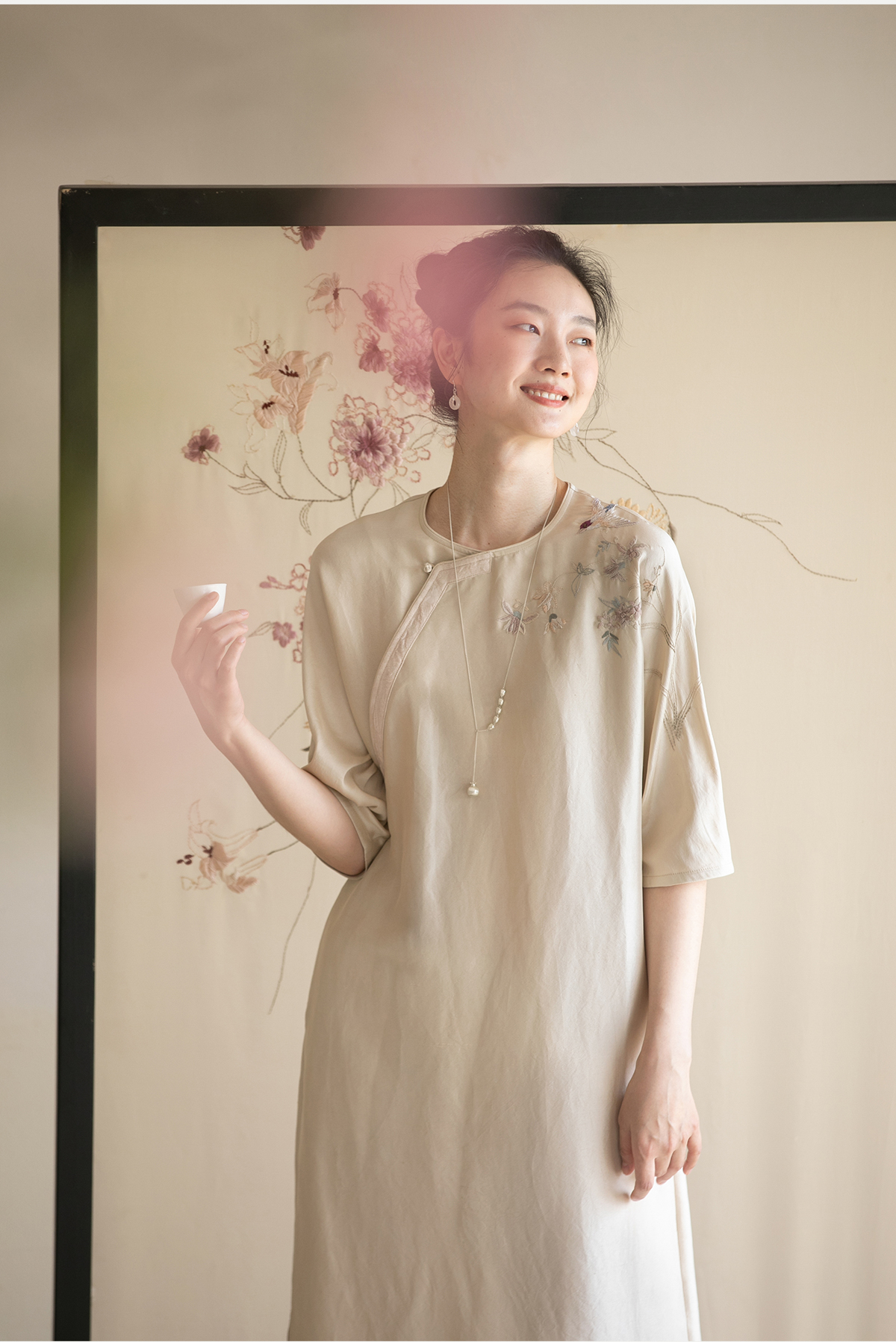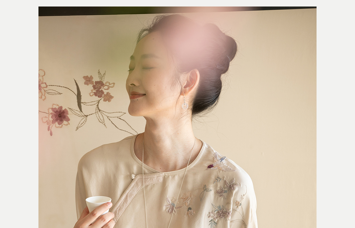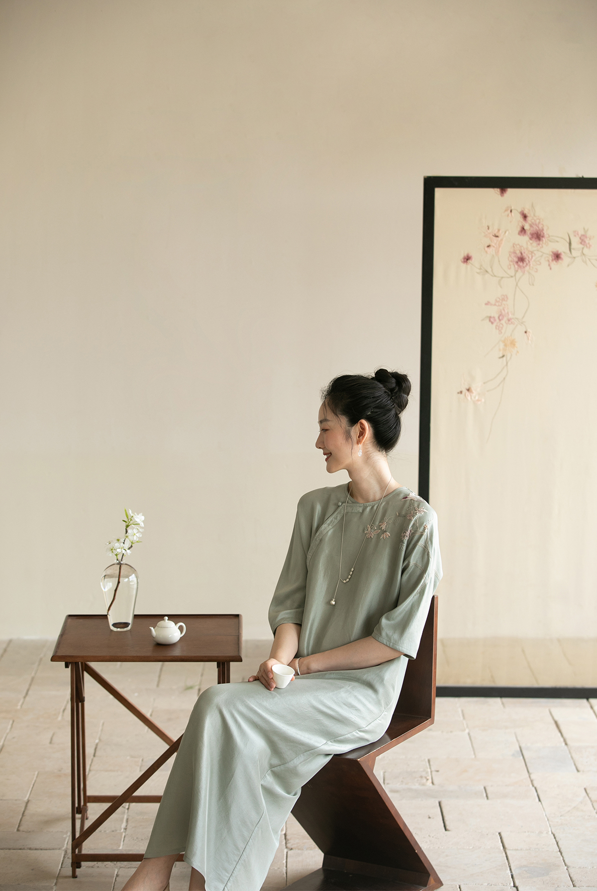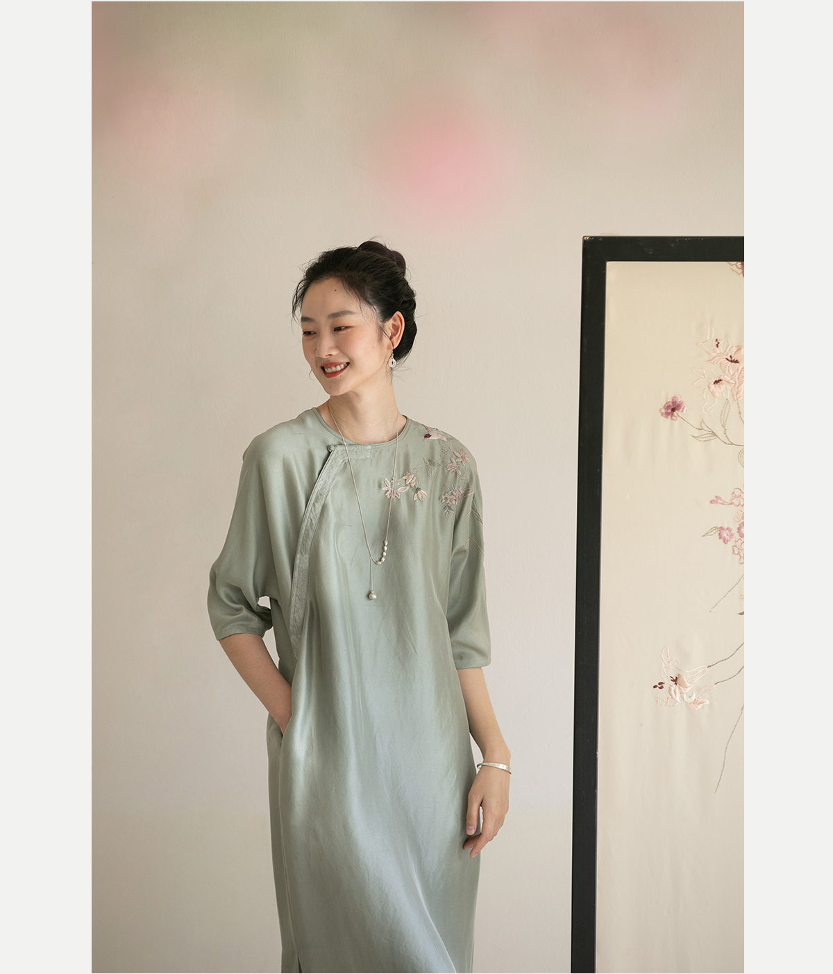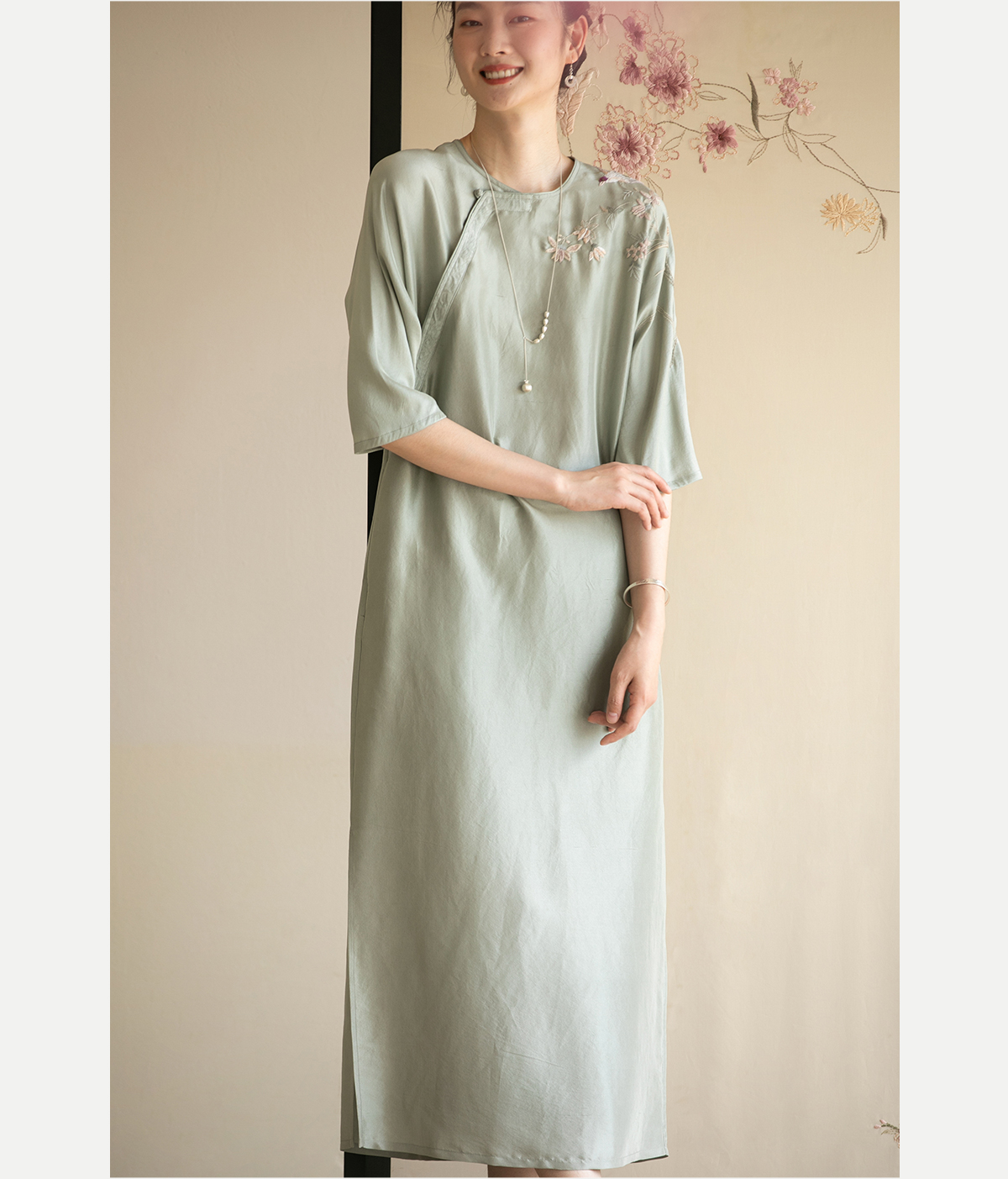 牧衣游原创 重磅双宫绸精工手绣桑蚕丝连衣裙复古中式长裙 月初斜