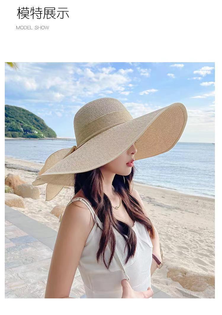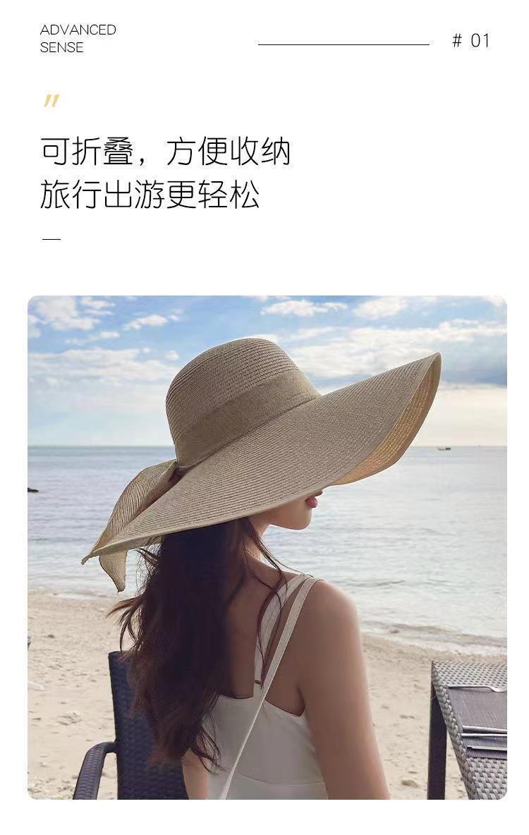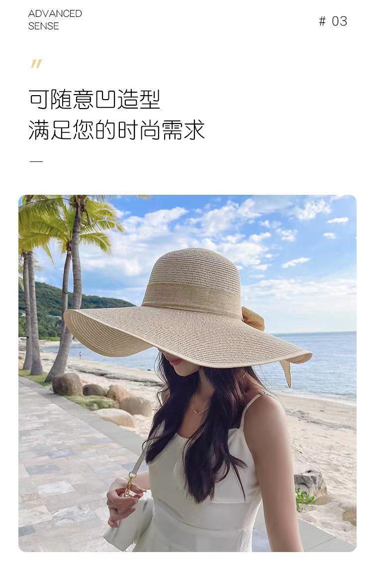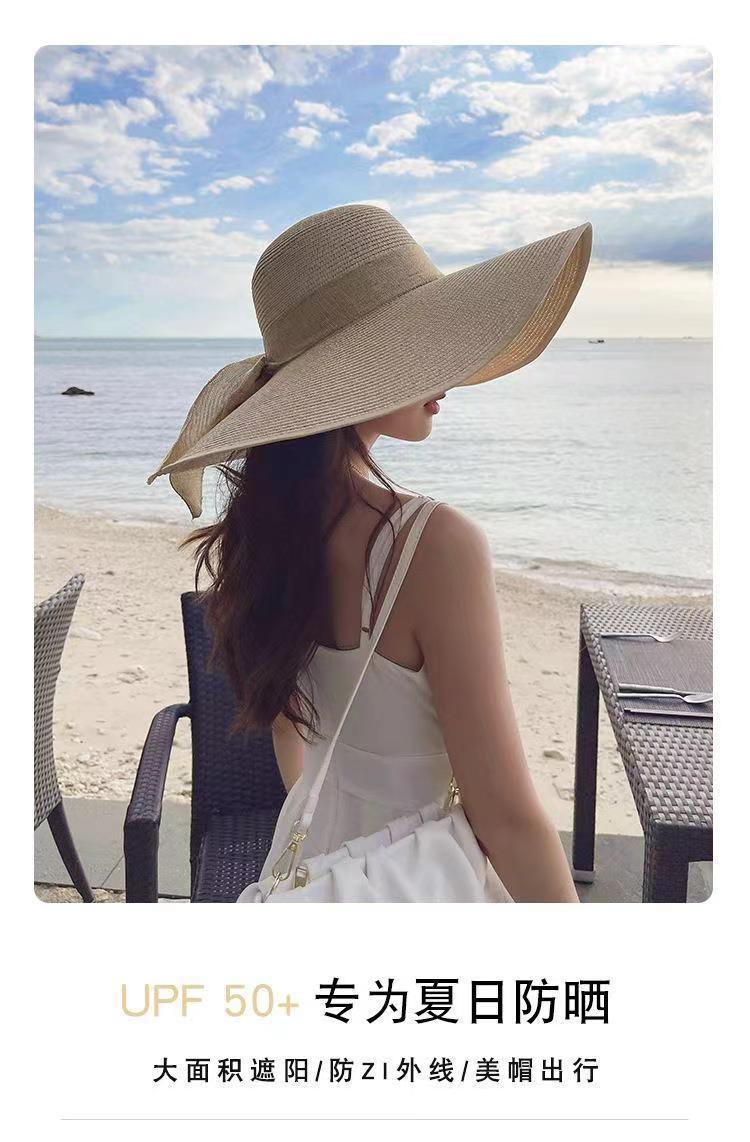 帽子女春夏新款大帽檐草帽夏季防紫外线防晒帽可折叠蝴蝶结遮阳帽
