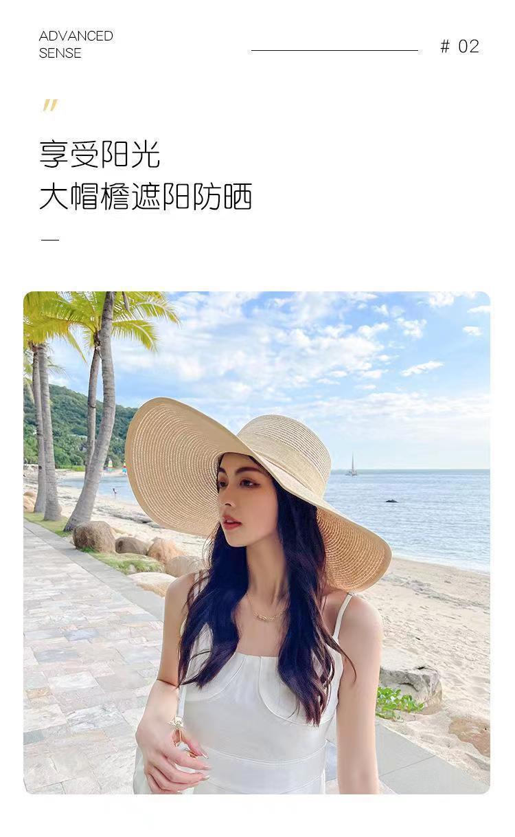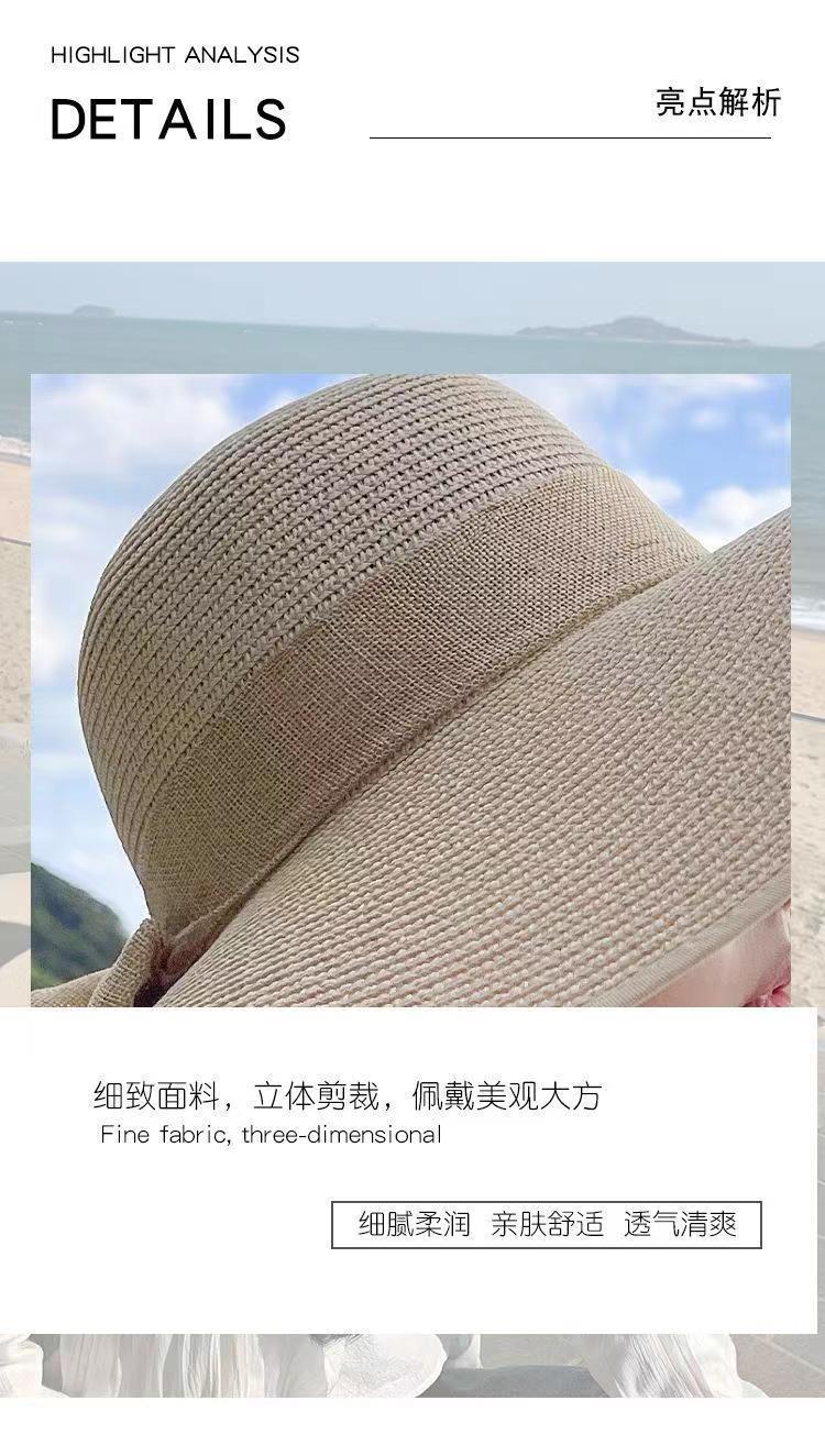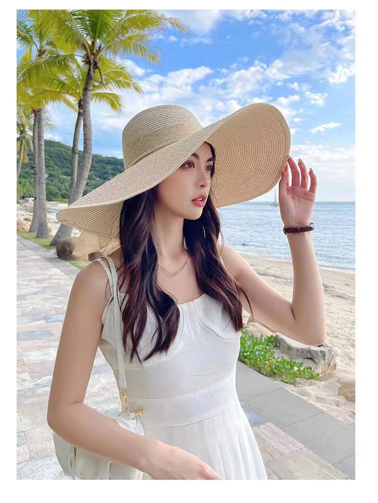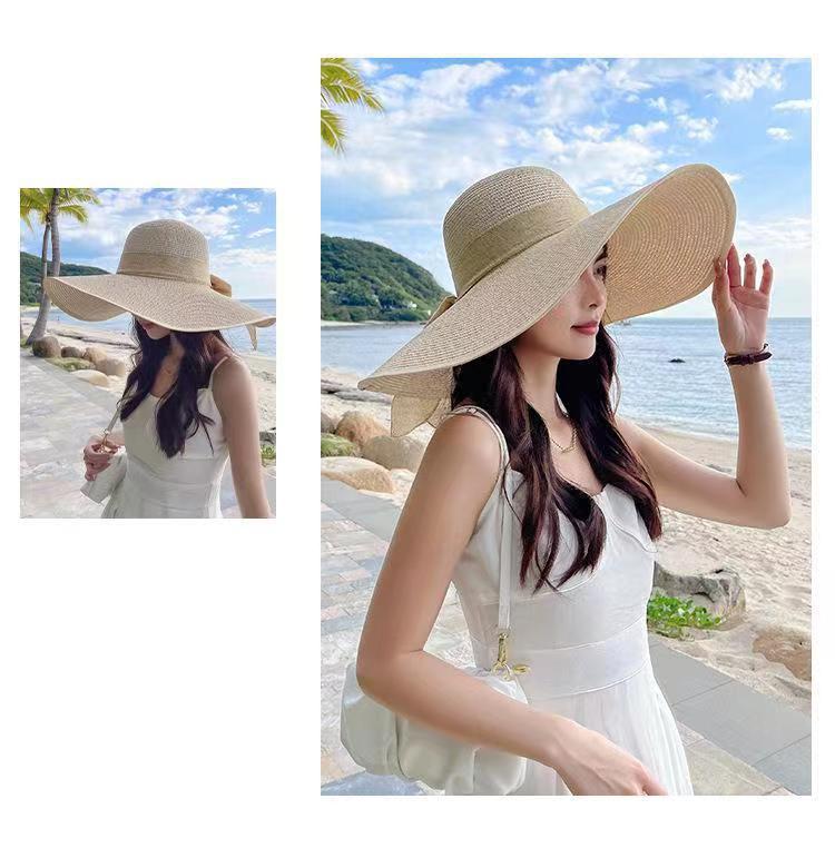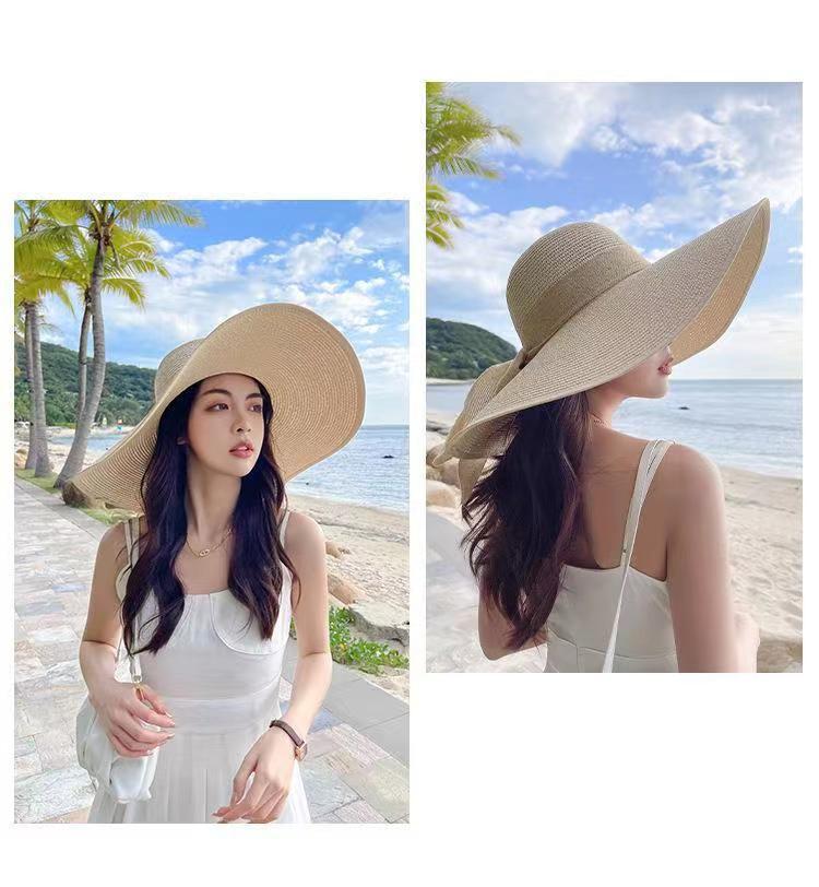帽子女春夏新款大帽檐草帽夏季防紫外线防晒帽可折叠蝴蝶结遮阳帽