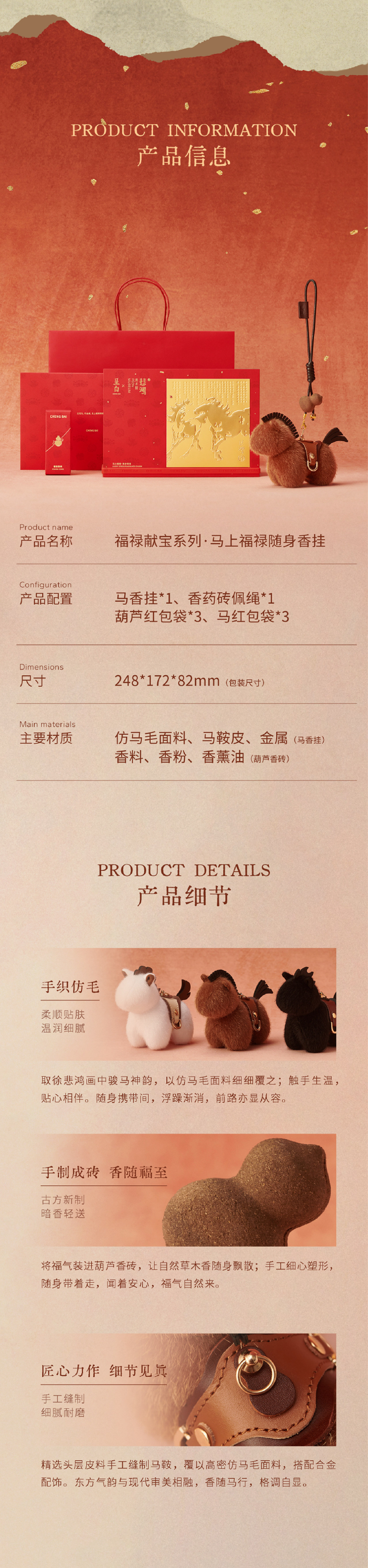 马上福禄·随身香挂礼盒,呈白×徐悲鸿美术馆联名【G】
