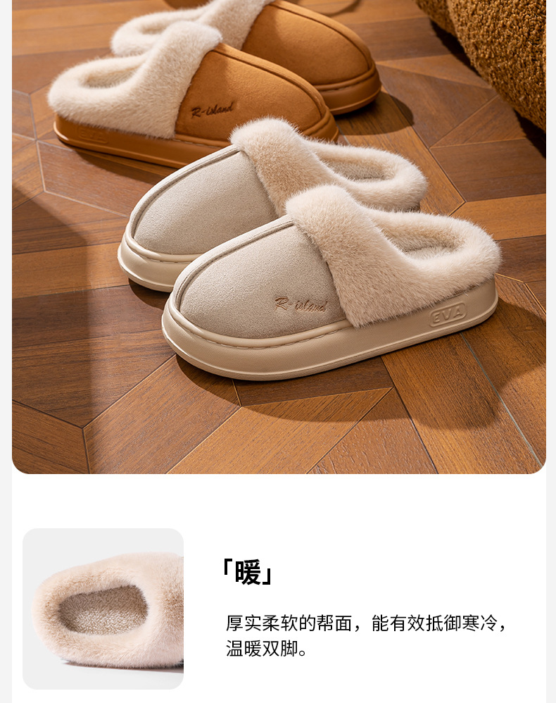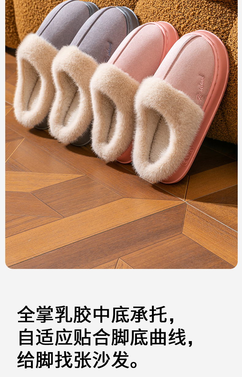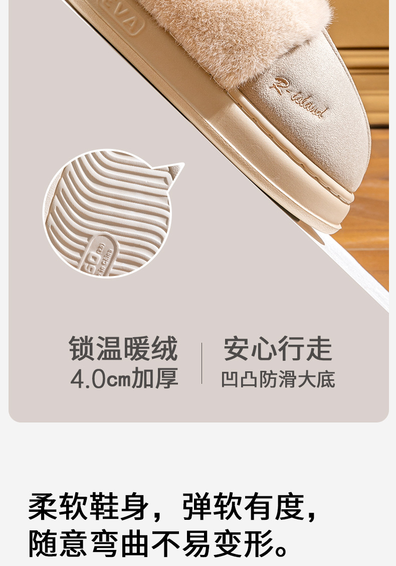 舒适毛绒棉拖鞋女2025新款室内居家外穿毛绒保暖厚底防滑棉鞋男地板托新款新品