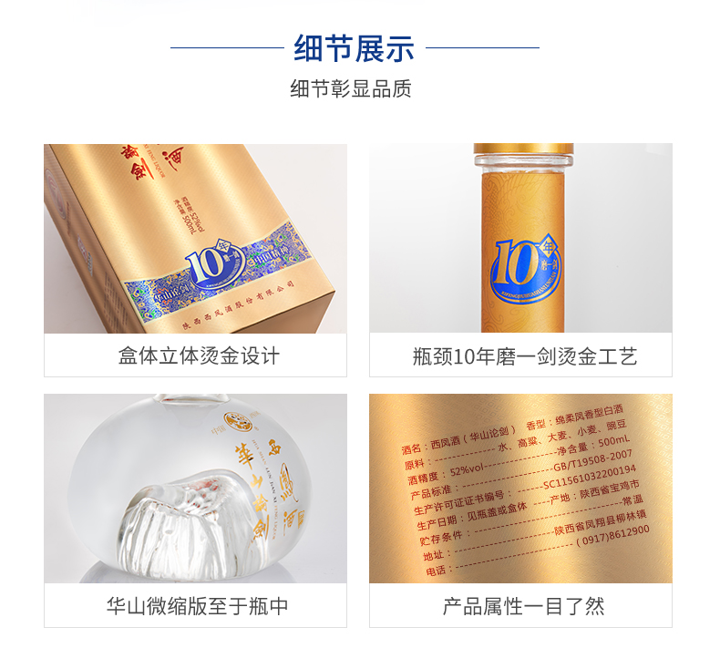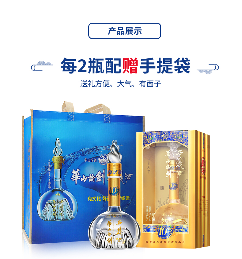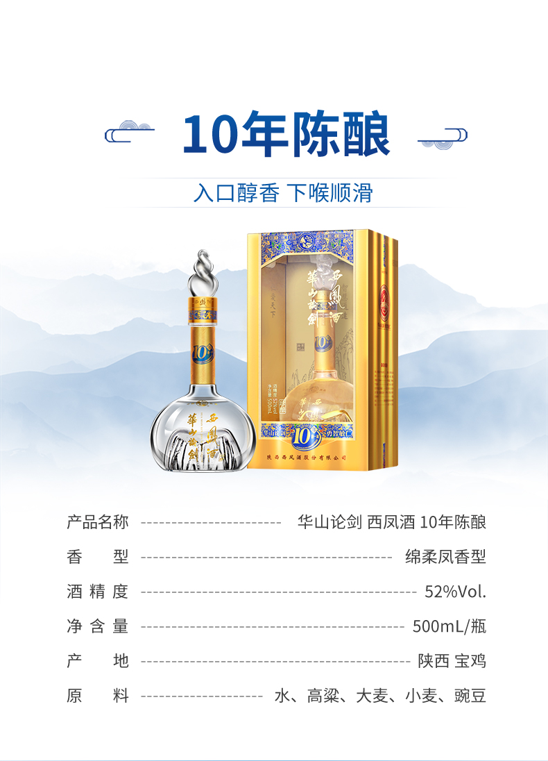 华山论剑西凤酒10年52度陈酿500ml/瓶 绵柔凤香型粮食白酒