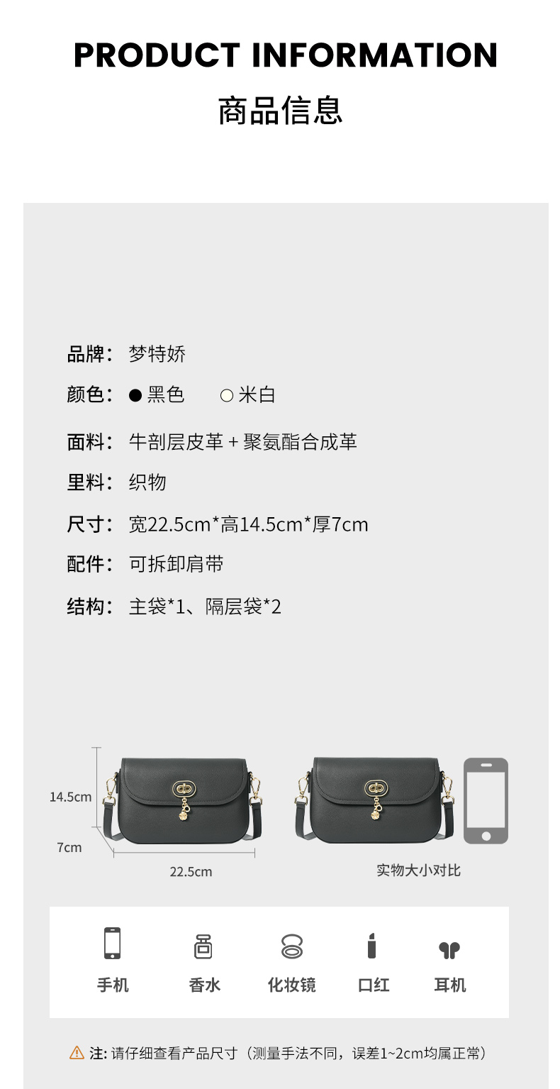 梦特娇法式时尚斜挎包通勤单肩羊皮女包