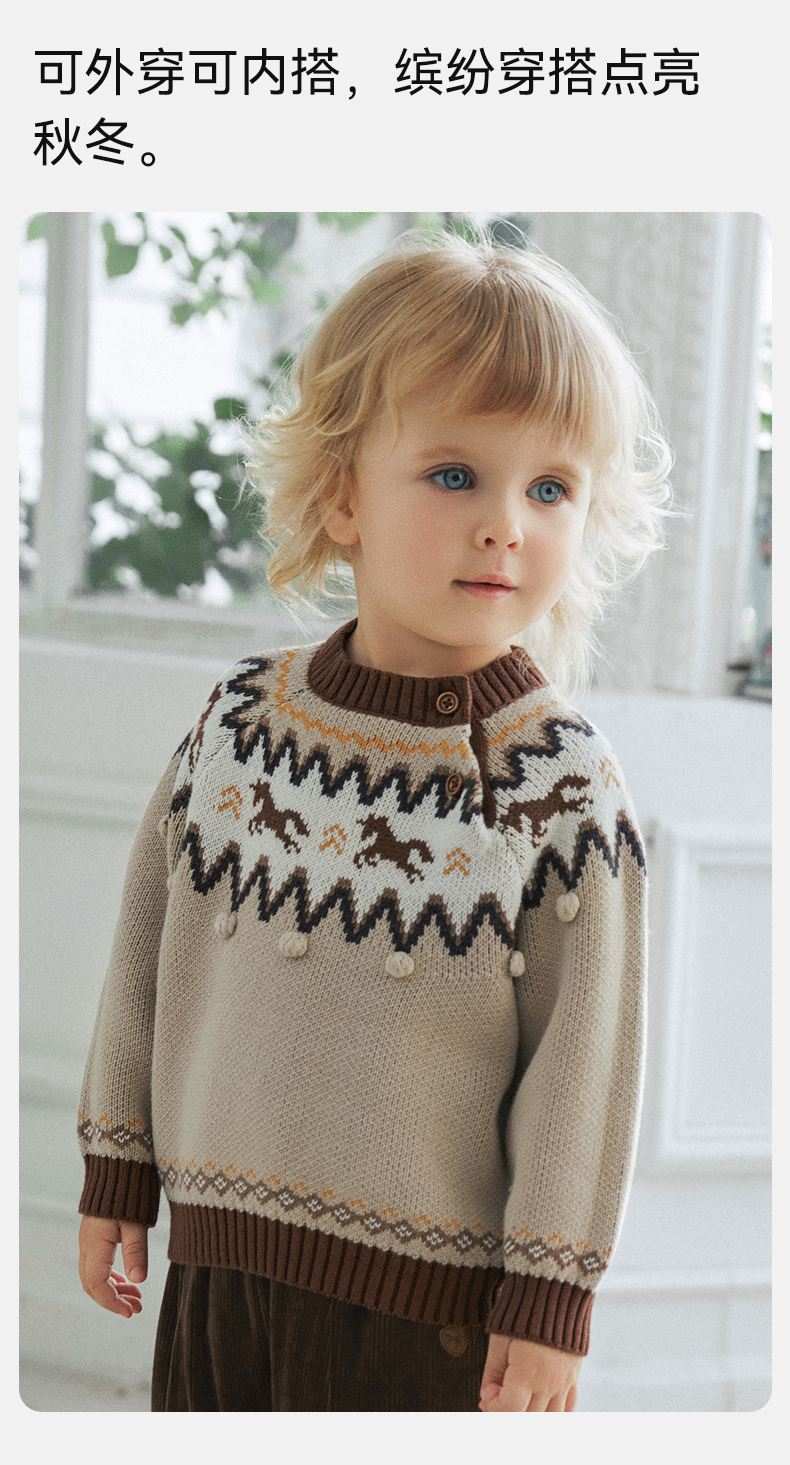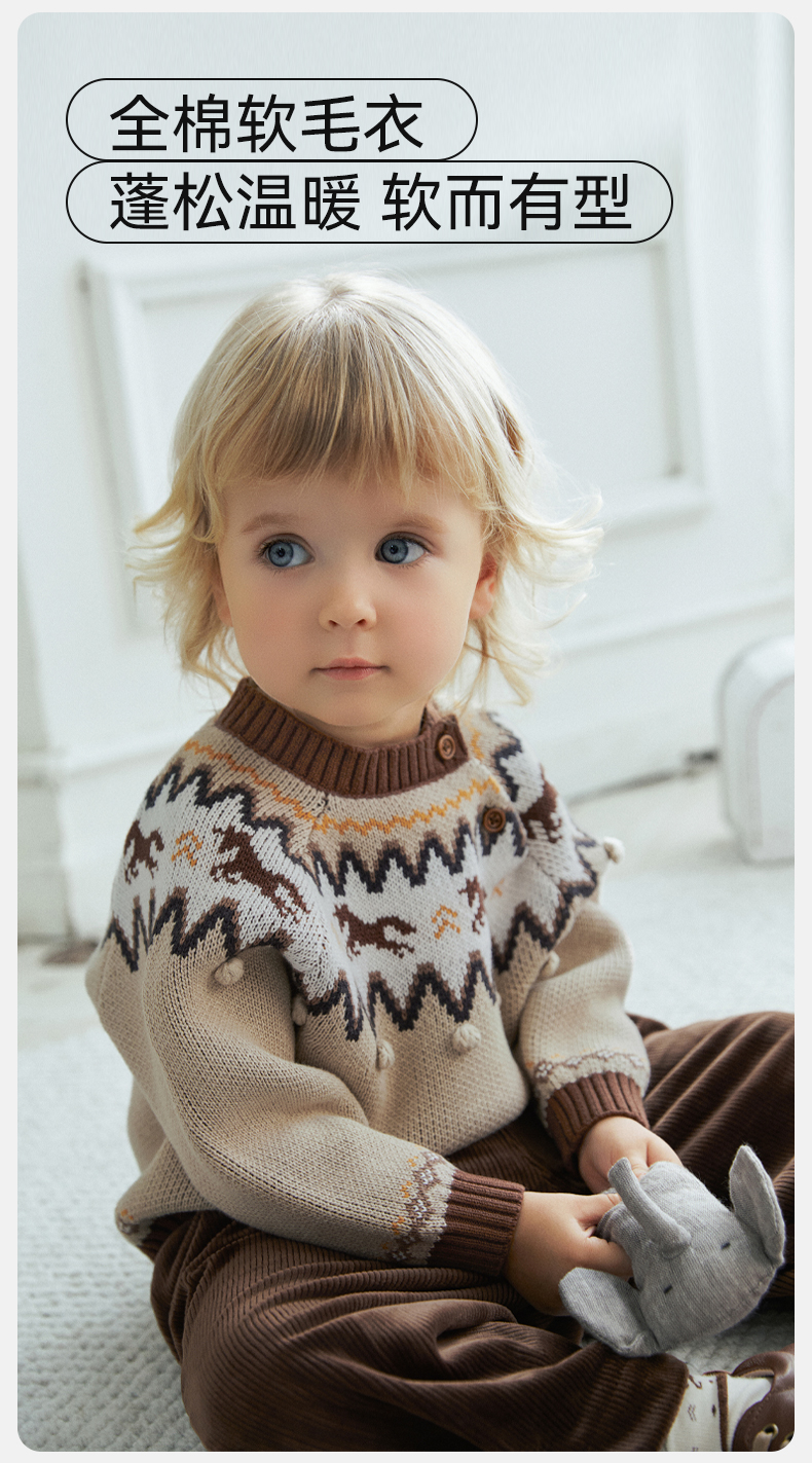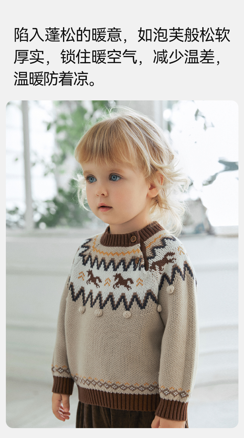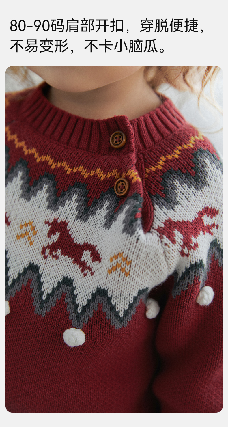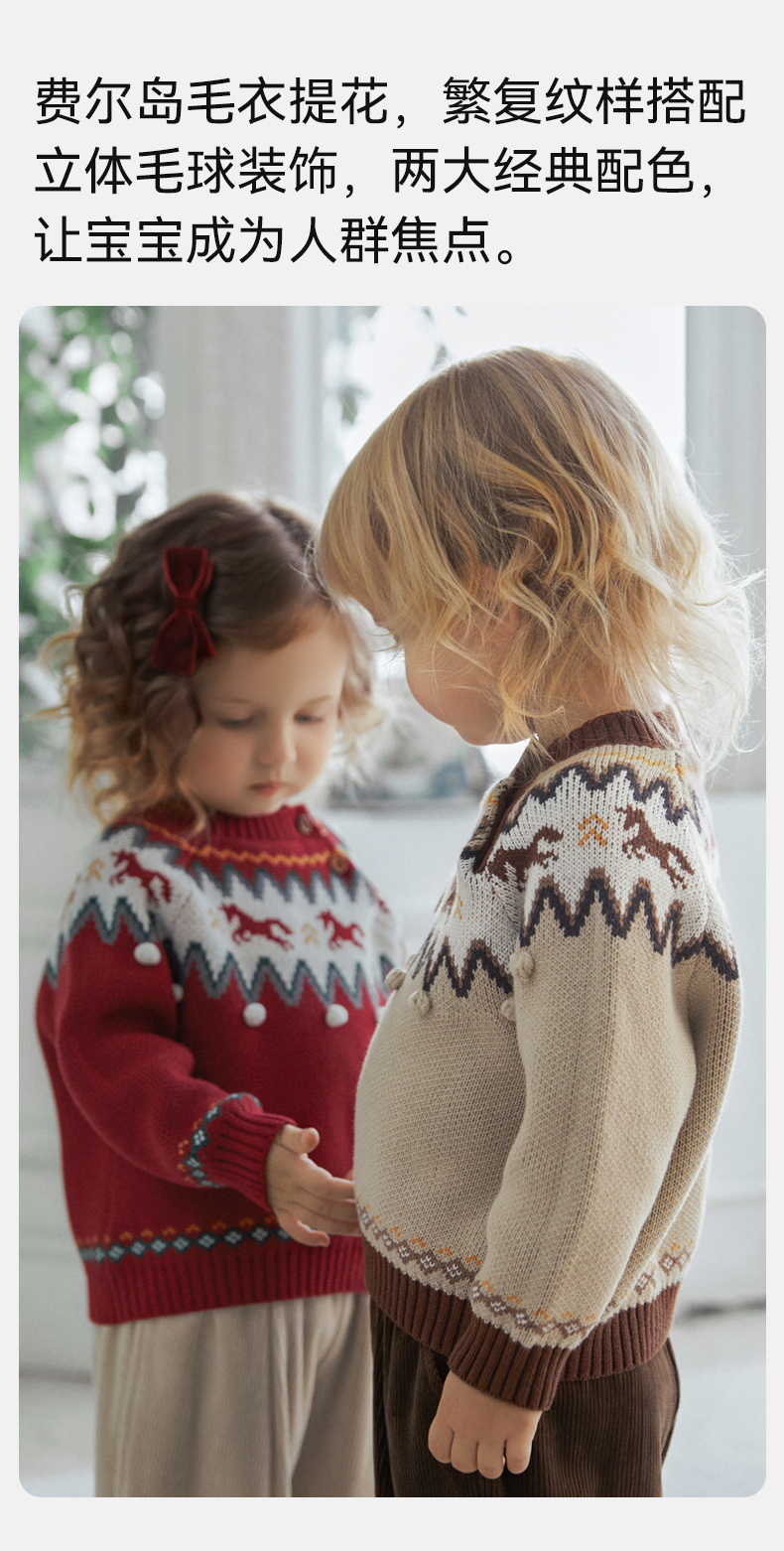 【宝宝服饰】嫚熙童装费尔岛套头毛衣秋冬保暖男女宝宝内搭针织上衣外穿套头衫