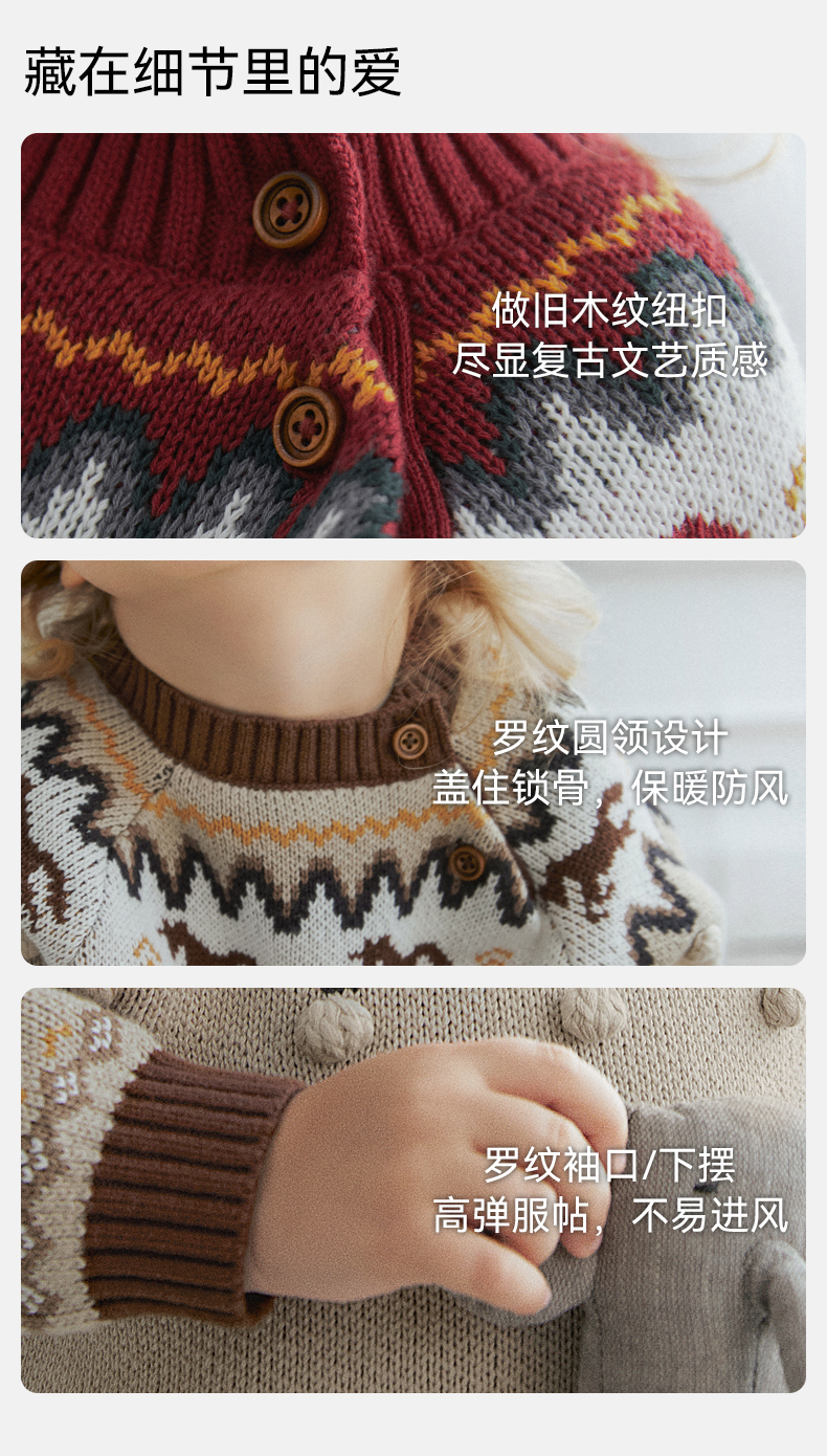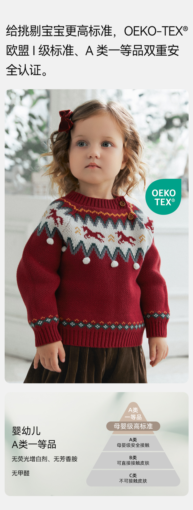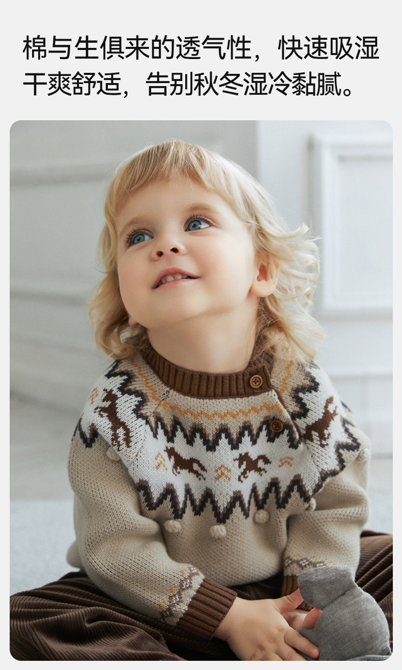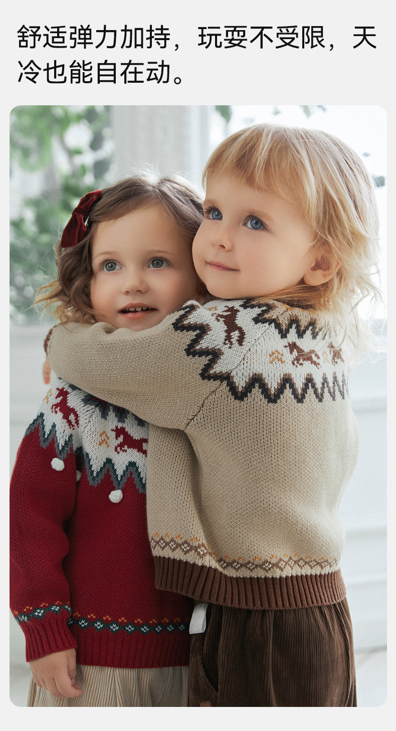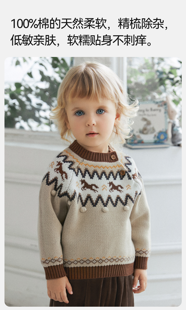 【宝宝服饰】嫚熙童装费尔岛套头毛衣秋冬保暖男女宝宝内搭针织上衣外穿套头衫